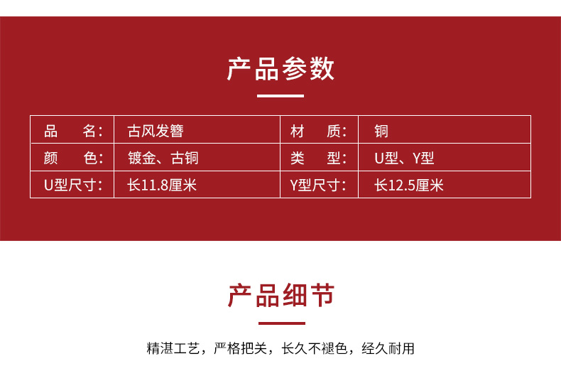 Other hairpin poles, double straight U hairpin poles, hairpin sticks, ancient style hairpins, DIY handmade materials, jewelry materials, copper hairpins, U-shaped antique bronze