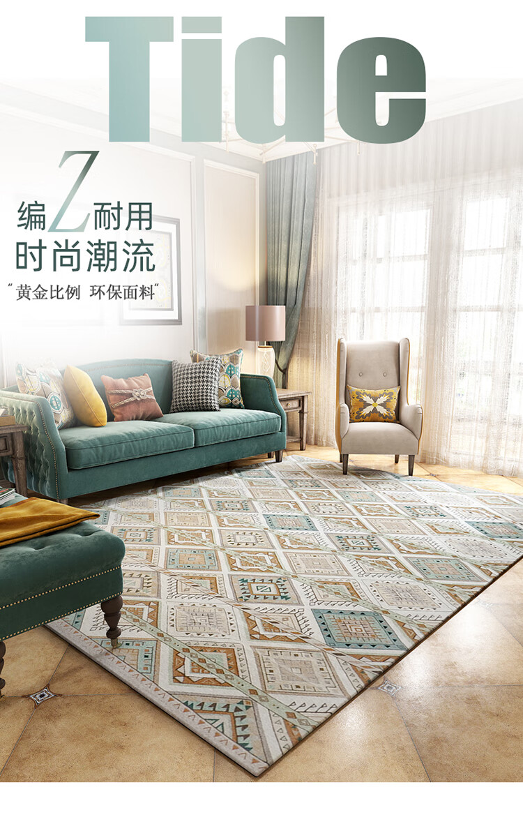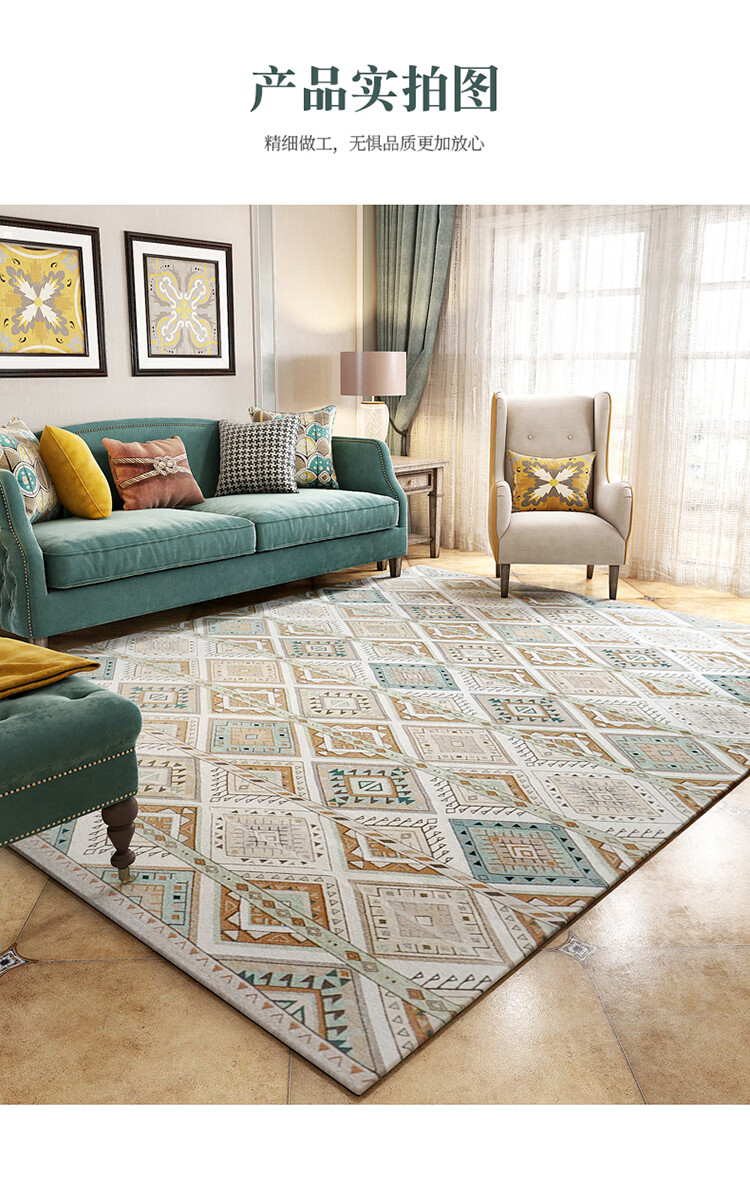 Zhonghong European and American carpet living room bedroom bedside coffee table American plaid personalized weaving machine washable home large area light luxury modern plaid 200*290CM