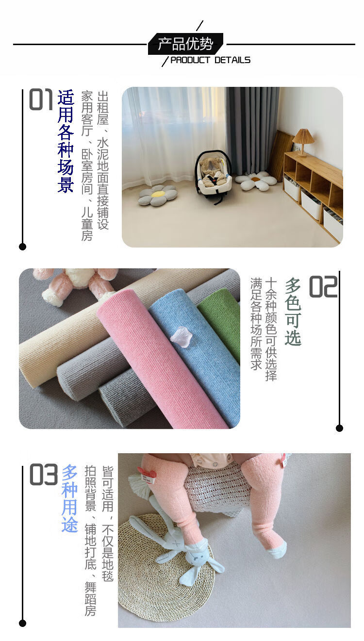 Xingwan home bedroom room living room ins style photo carpet fully covered large area rental house renovation bedside shop ash stripes (4 mm) 1.5 meters wide and 10 meters long one piece