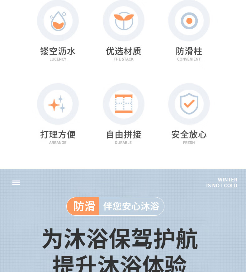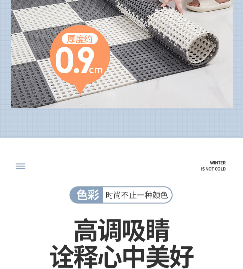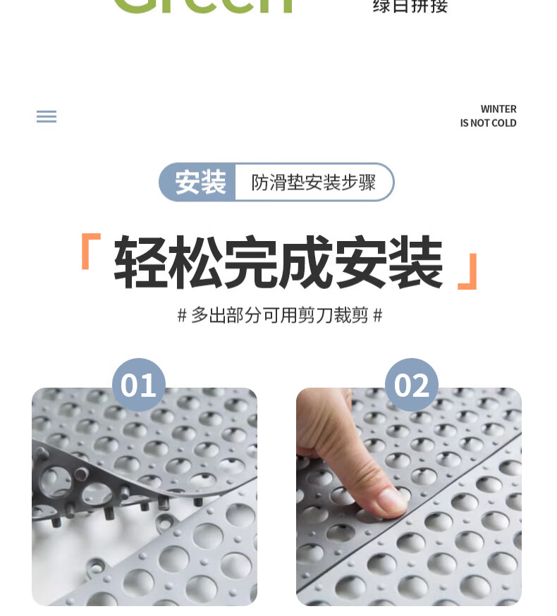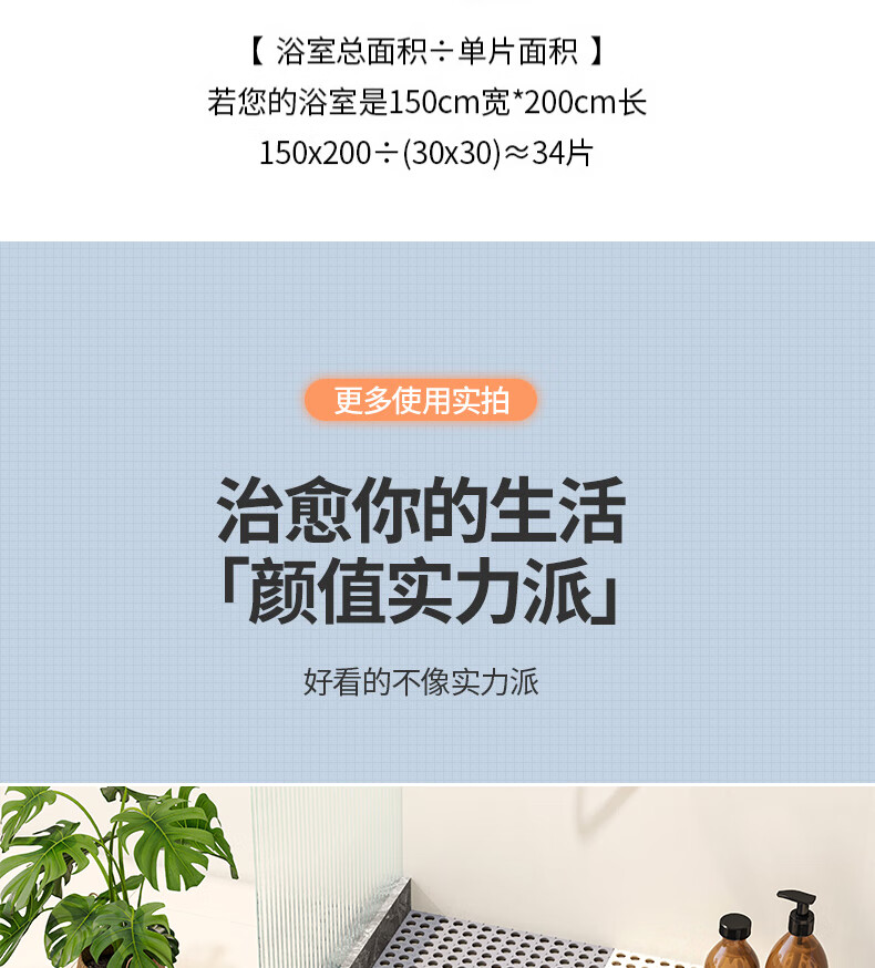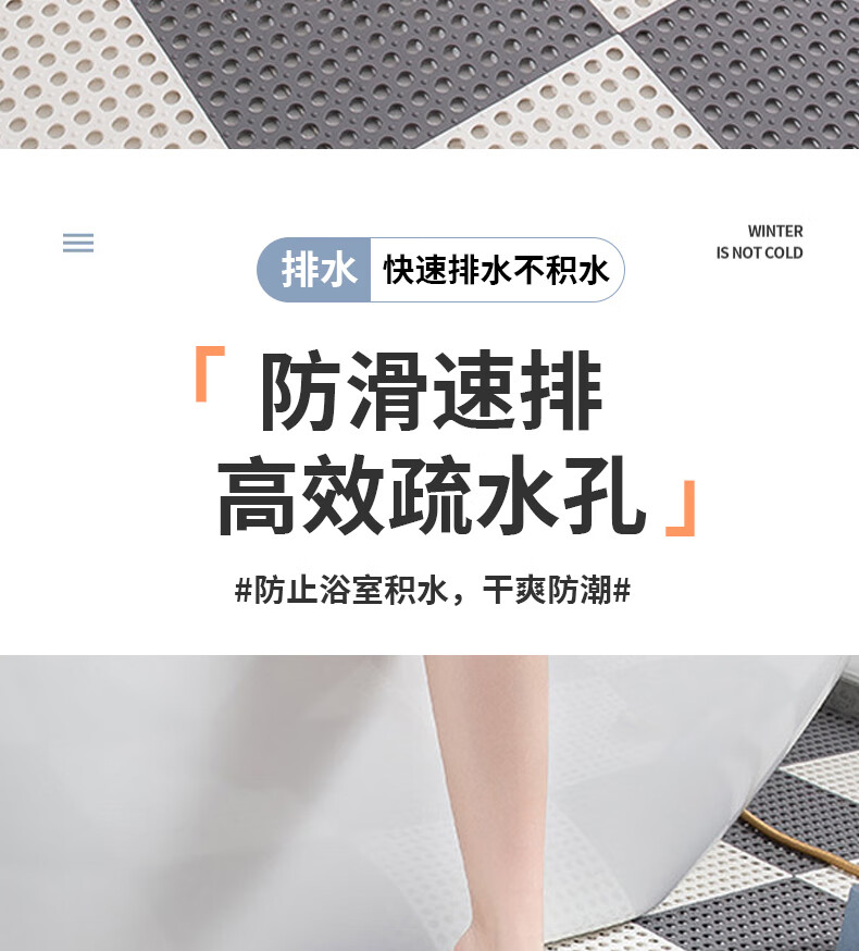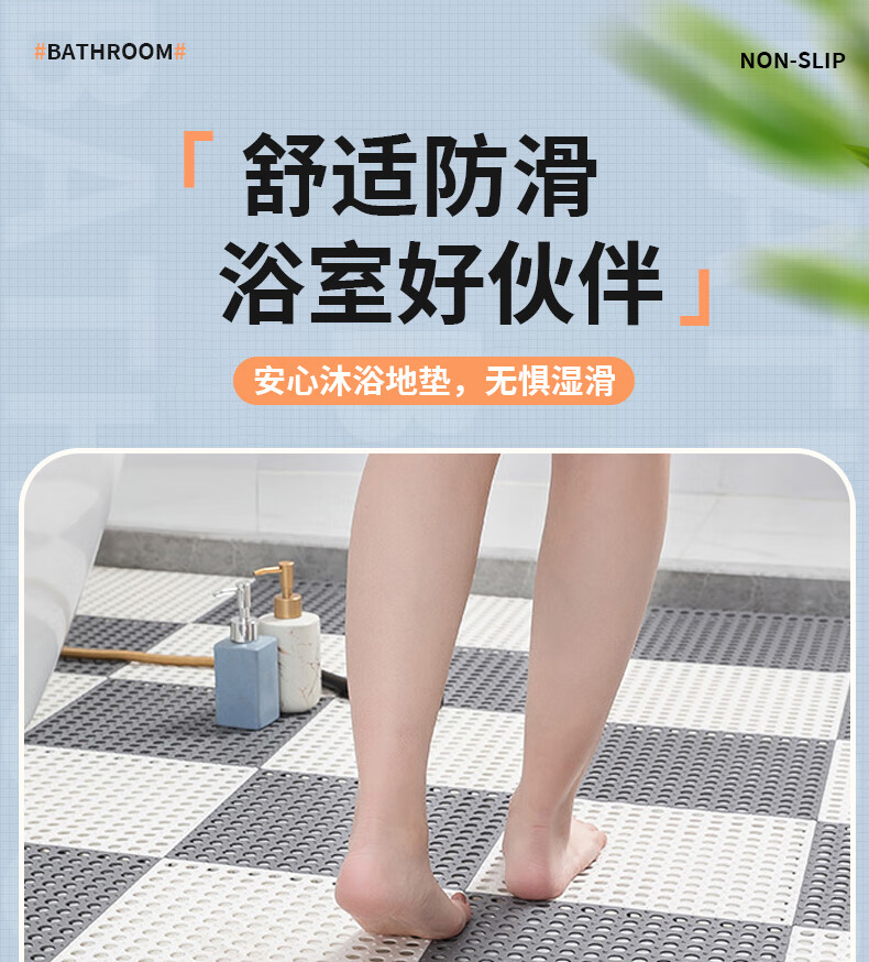 Haojinhui Bathhouse Anti-slip Mat Shower Room Bathroom Floor Mat Bath Special Splicing Mat Bathroom Entrance Toilet Toilet Gray + White Anti-slip and Anti-fall 30x30cm 24 pieces 2.1 square meters