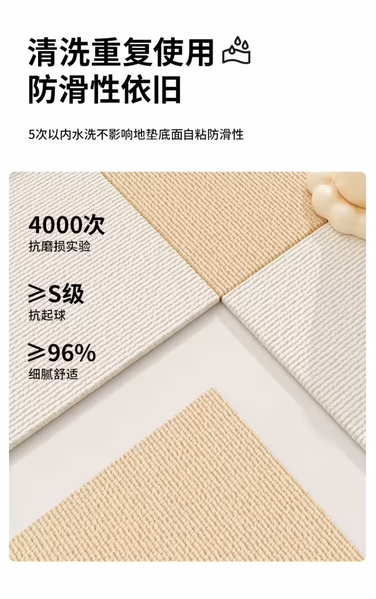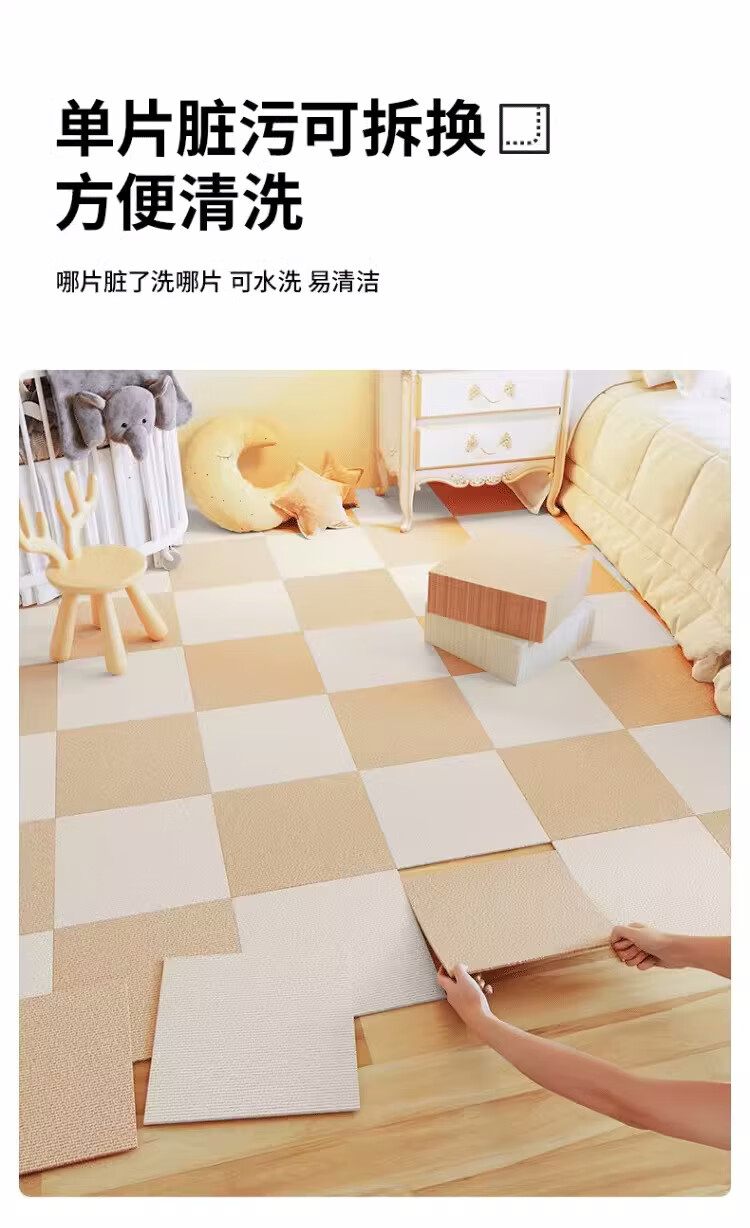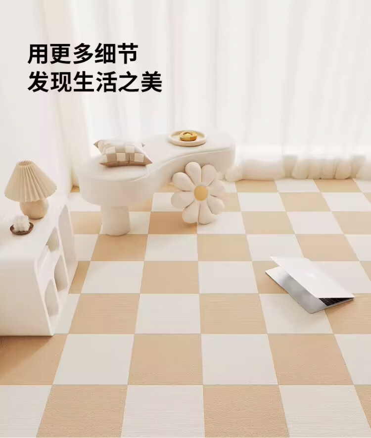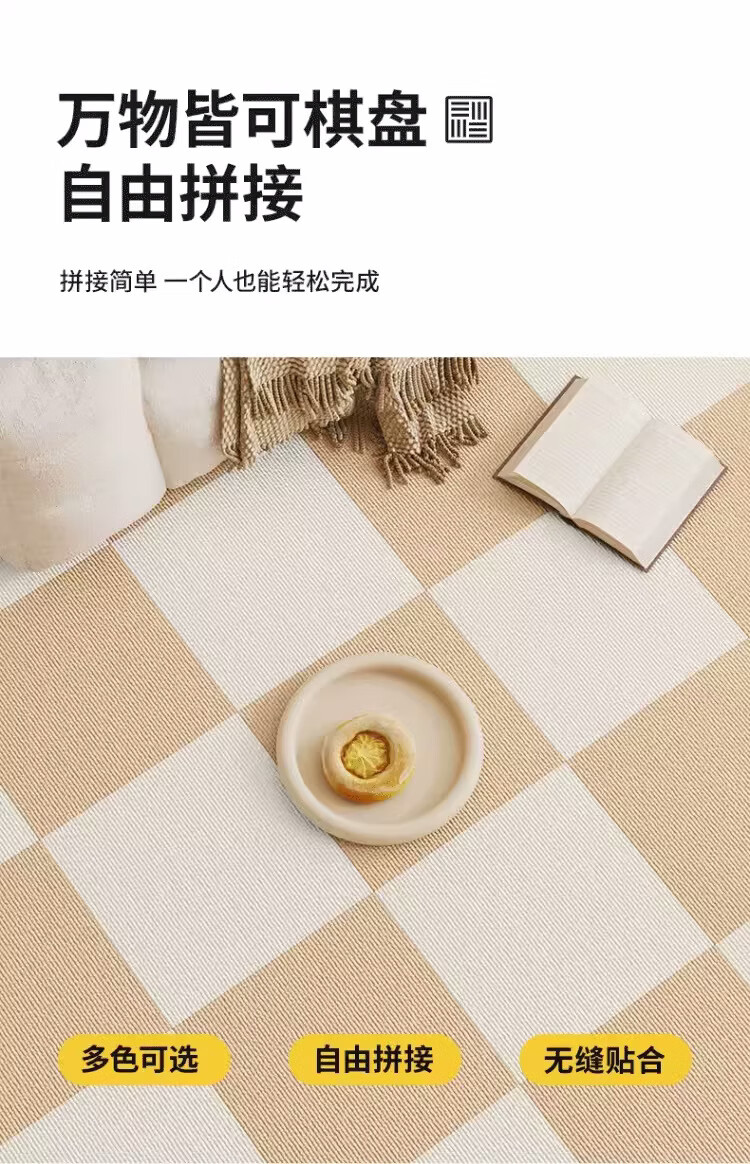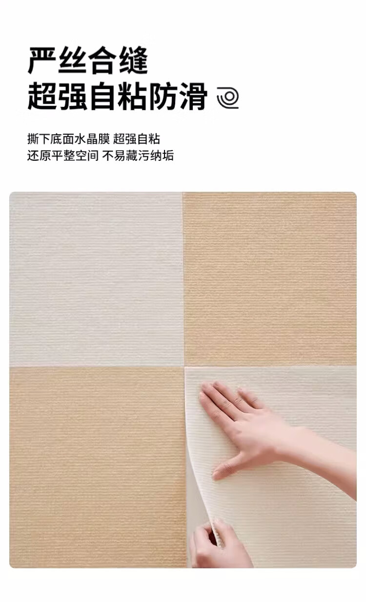 Square splicing carpet self-adhesive living room Japanese-style crawling mat simple bedroom bedside blanket easy care full mat mat off-white + dark gray 50 cm * 50 cm 8 pieces