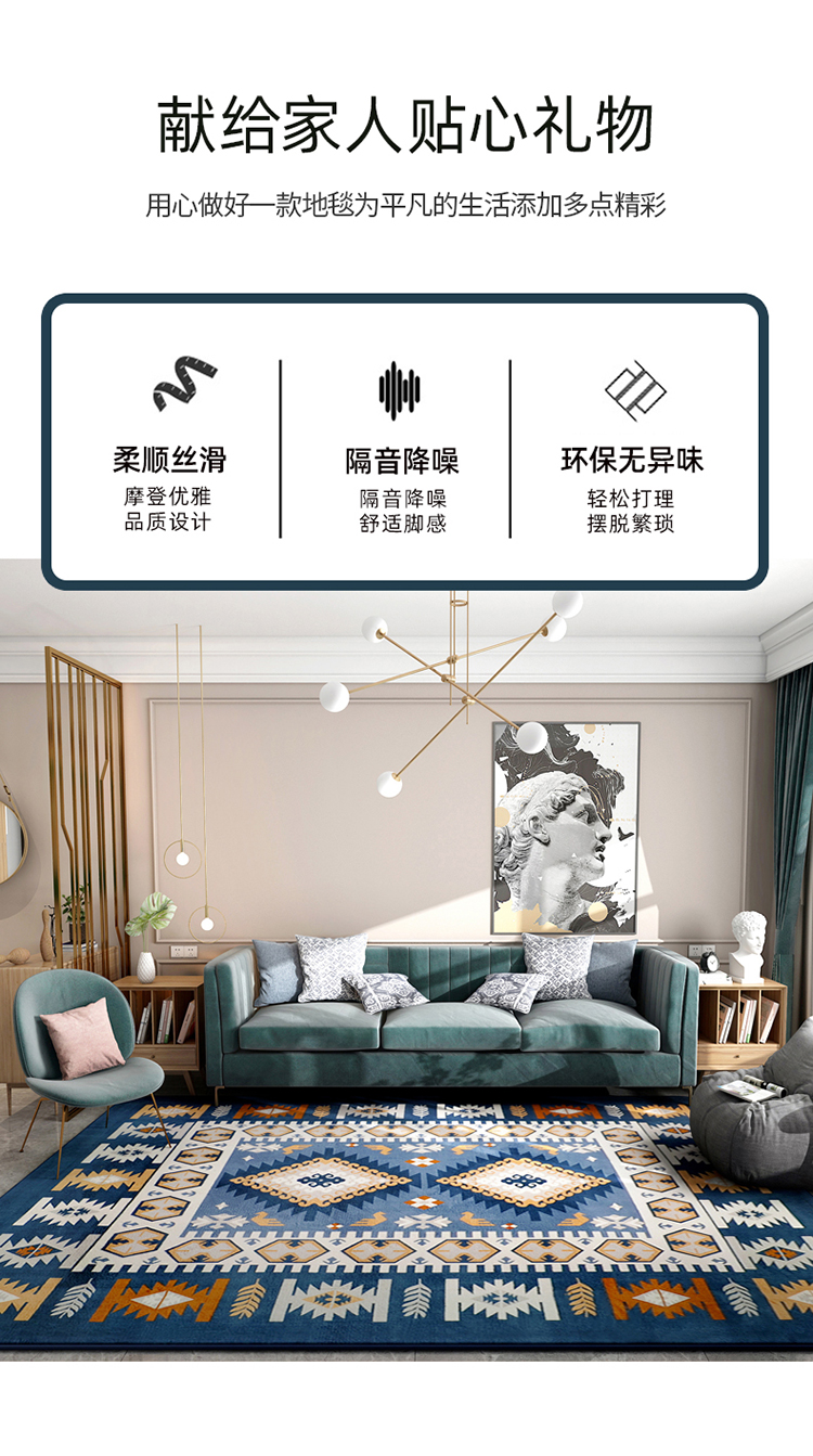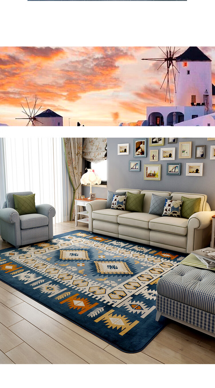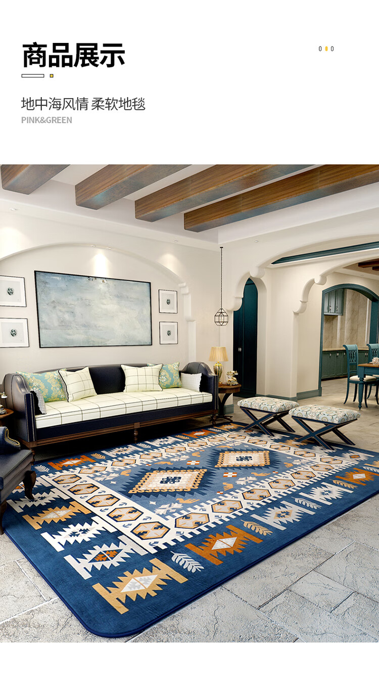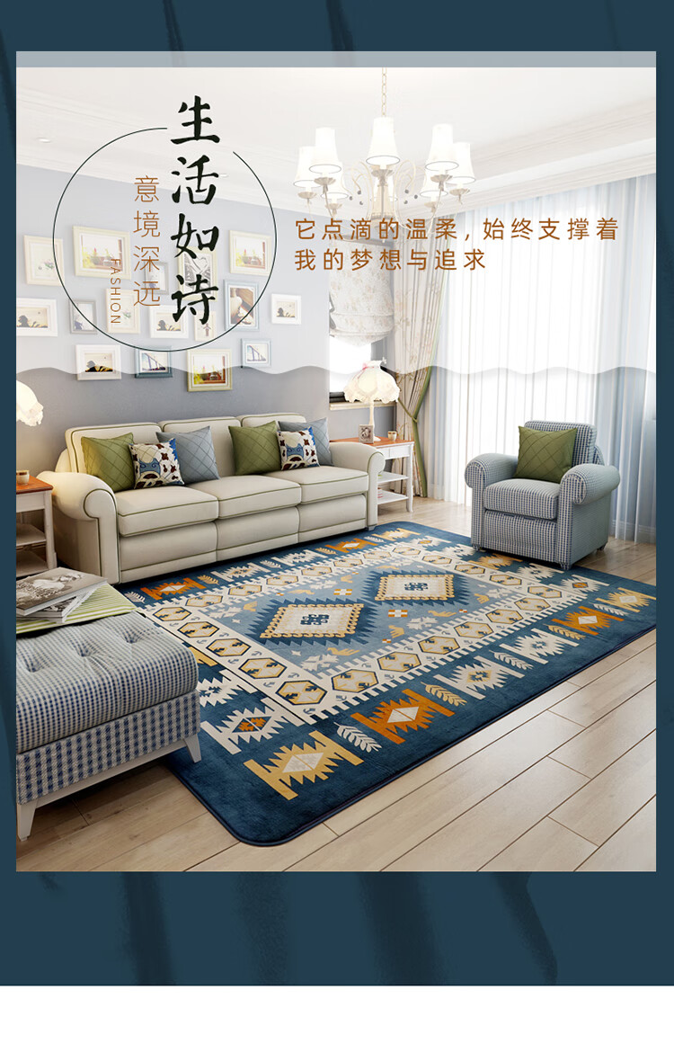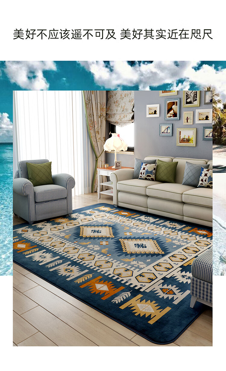 Zhonghong Mediterranean living room carpet coral velvet coffee table blanket bedside blanket bed front modern blue carpet large area bedroom home full carpet Nordic simple machine washable cat feeling blue diamond coral velvet 130*190CM