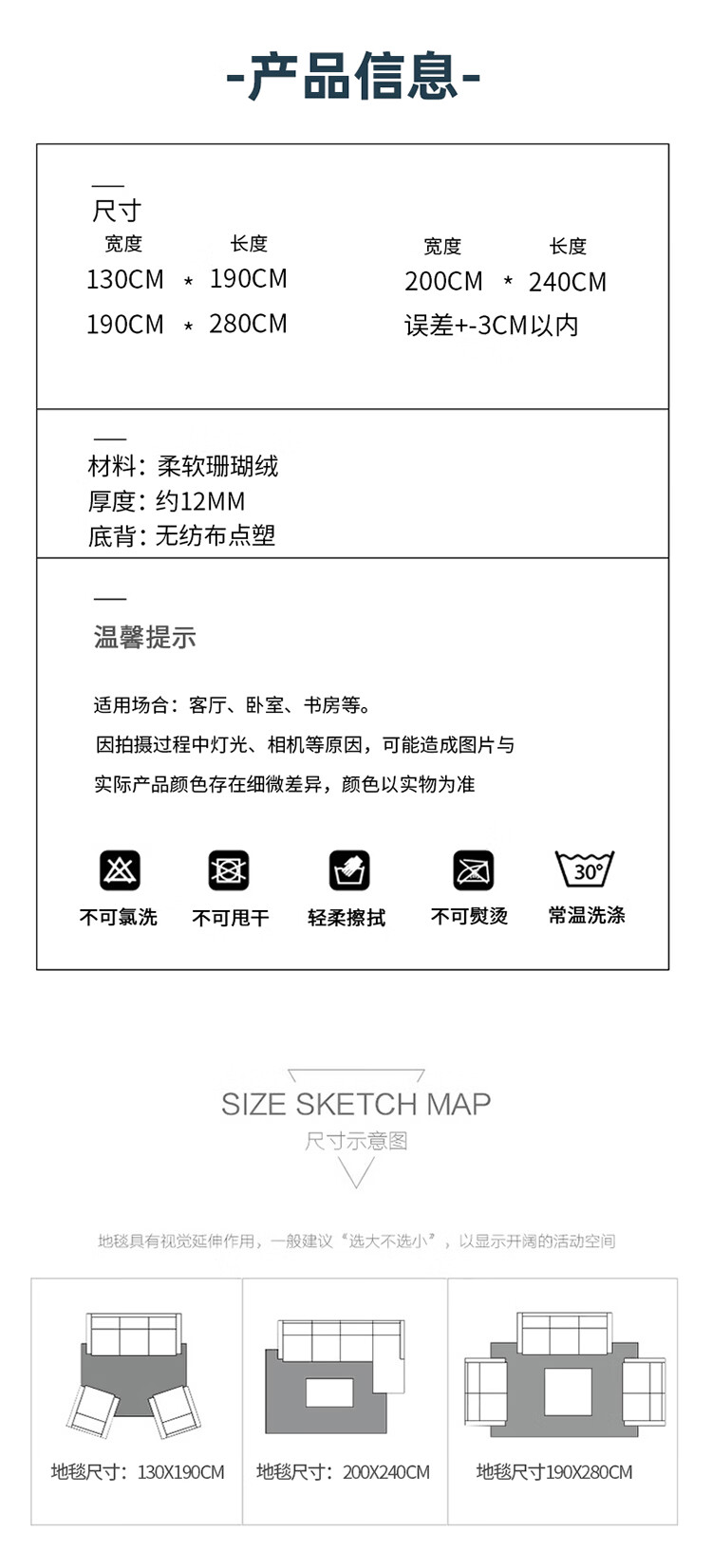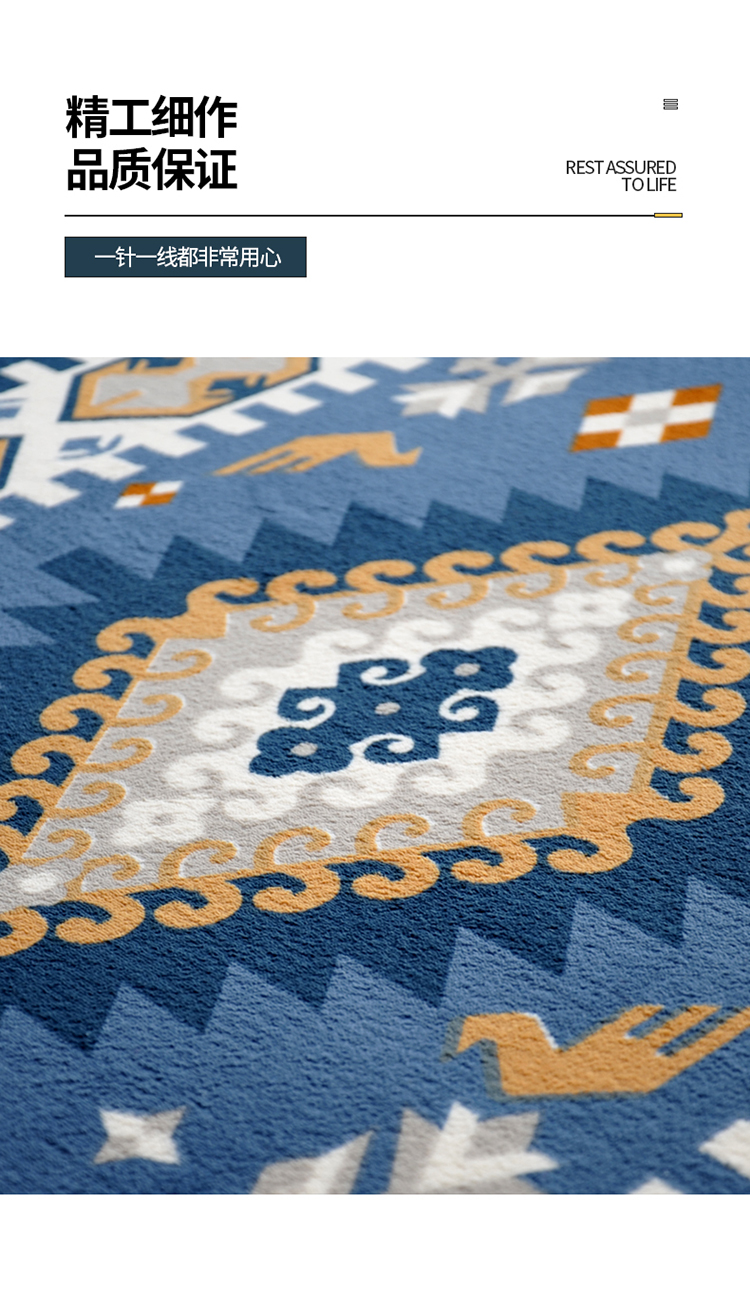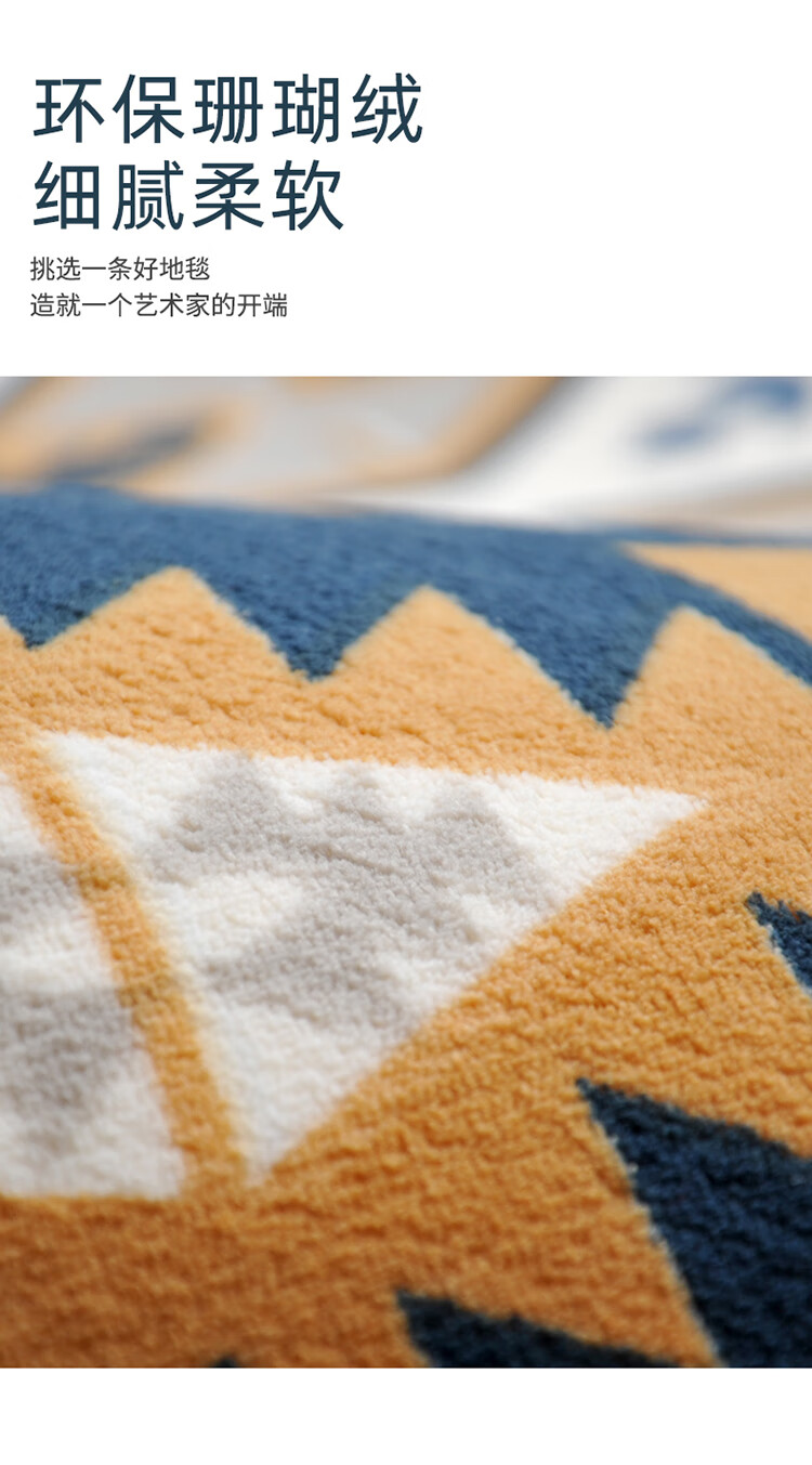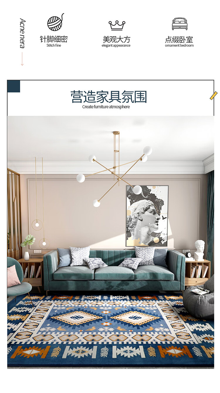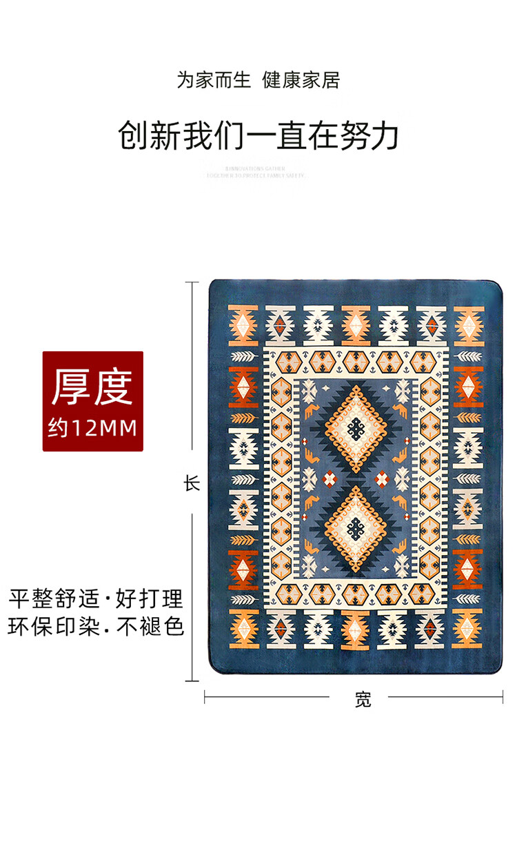 Zhonghong Mediterranean living room carpet coral velvet coffee table blanket bedside blanket bed front modern blue carpet large area bedroom home full carpet Nordic simple machine washable cat feeling blue diamond coral velvet 130*190CM