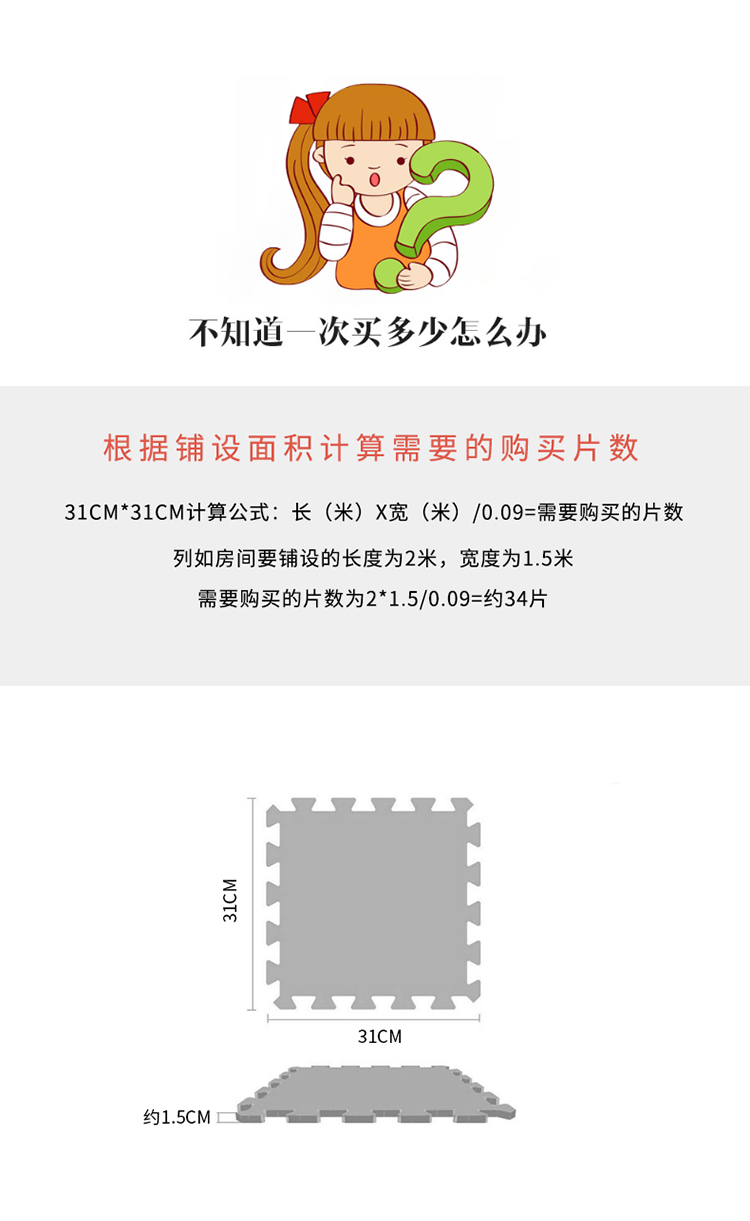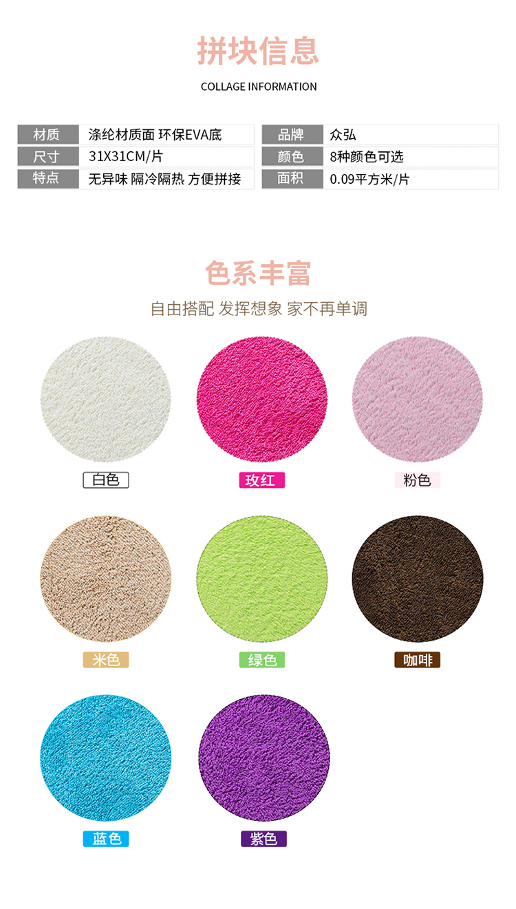 Zhonghong foam puzzle carpet covers the whole tatami bedroom, children's game blanket, suede splicing carpet, EVA can be cut and customized, princess large area, single piece, grass green, 31*31CM, small piece, single color