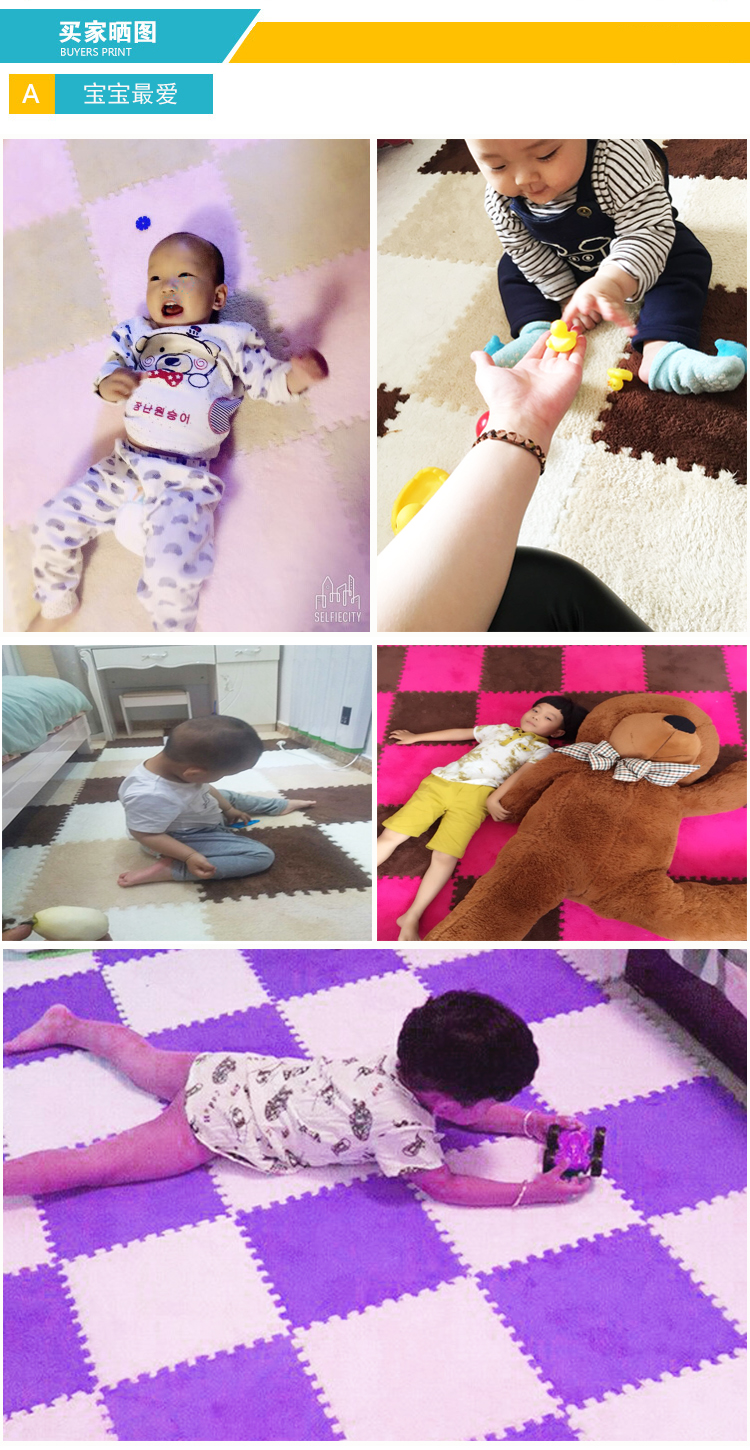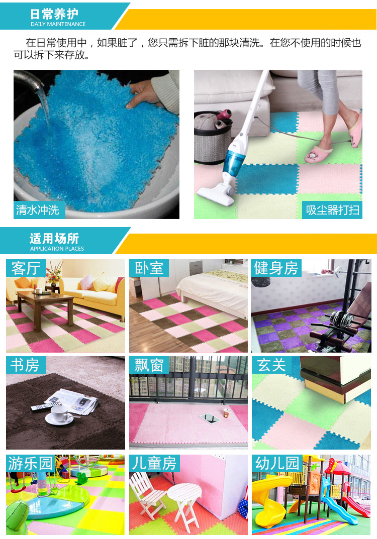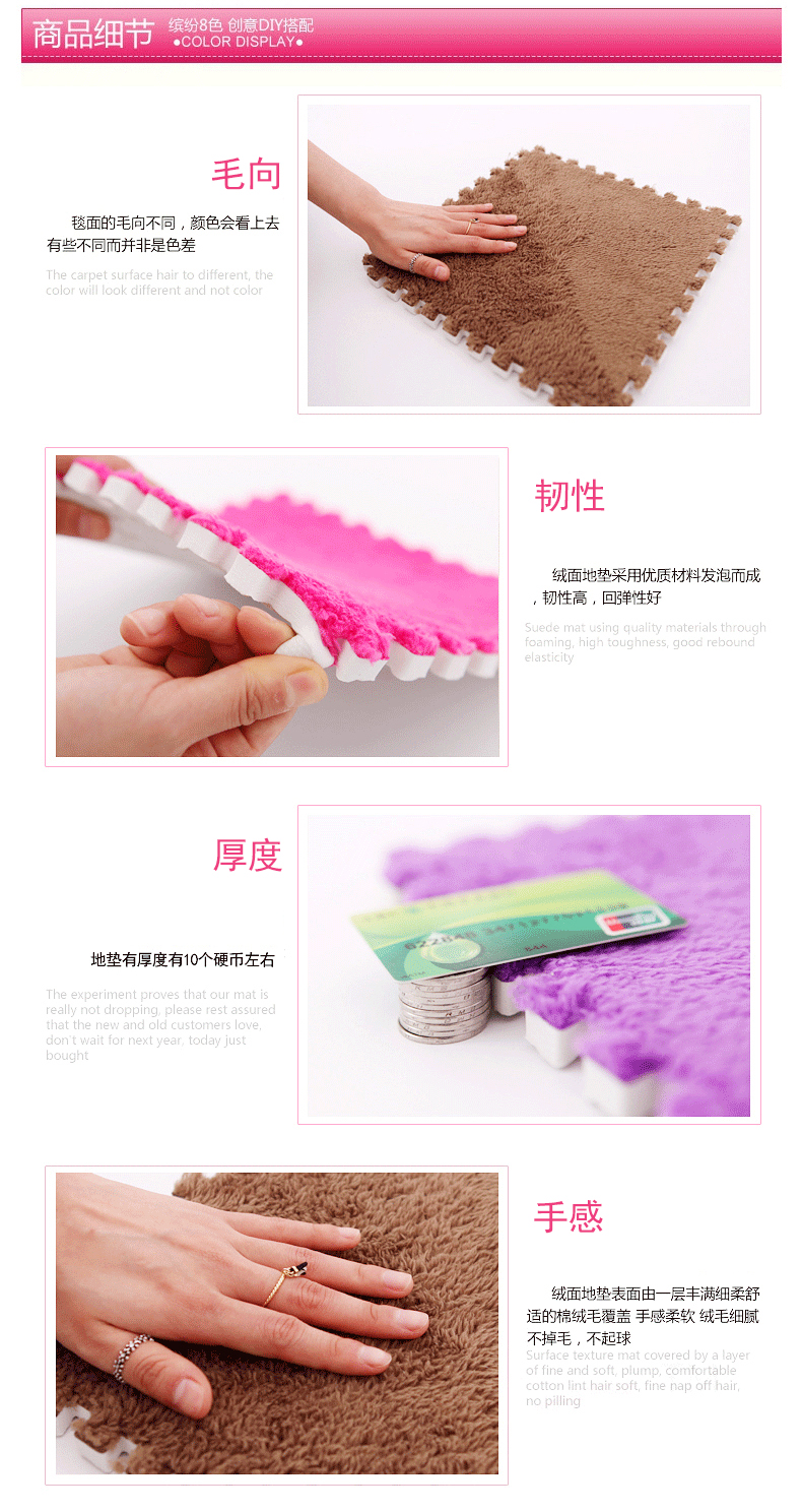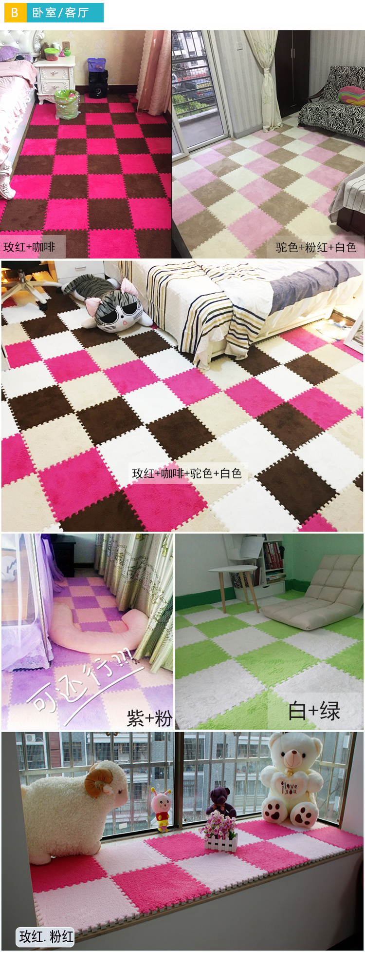 Zhengba splicing carpet suede foam puzzle carpet non-slip thickened living room foyer children's bedroom bedside splicing carpet tatami pink