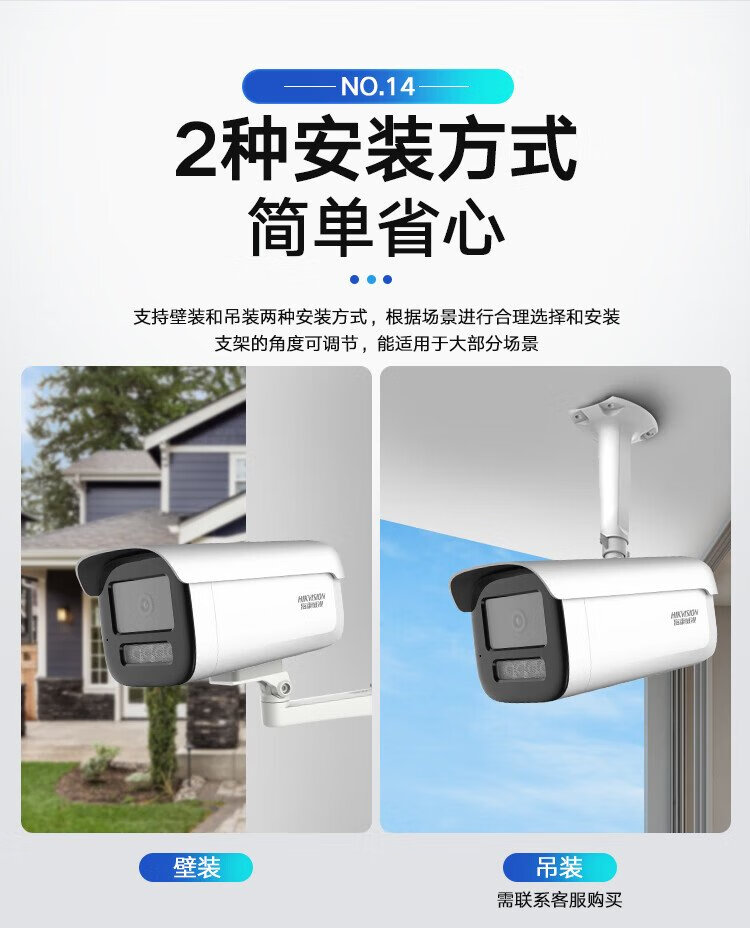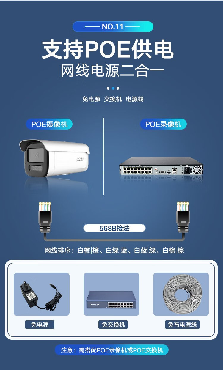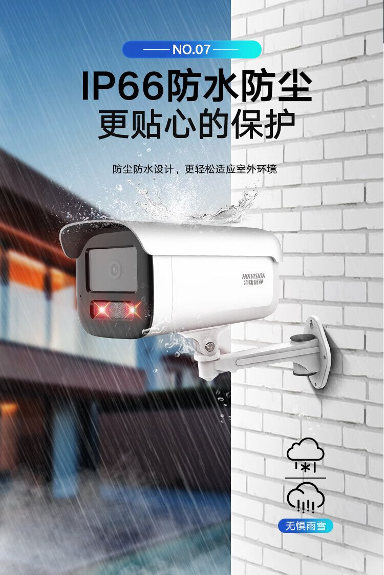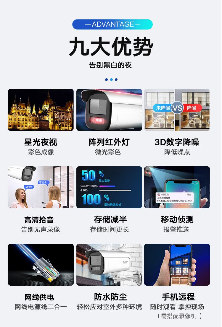 HIKVISION Hikvision monitor camera outdoor 4 million 2K high-definition starlight night vision camera recording poe network cable powered mobile phone remote 3T46WDV3-I34mm