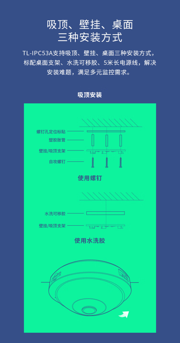 TP-LINK panoramic fish-eye smart camera home monitor 360-degree night vision indoor wireless security mobile phone remote conversational ceiling house and shop treasure IPC55A