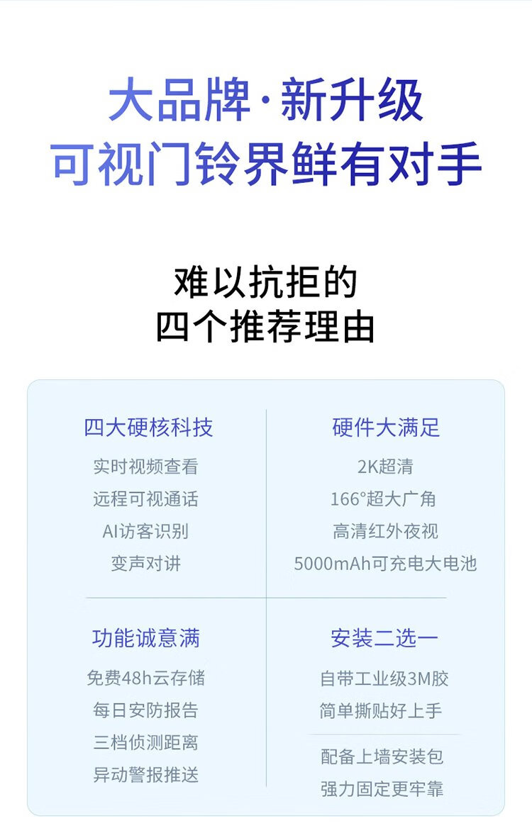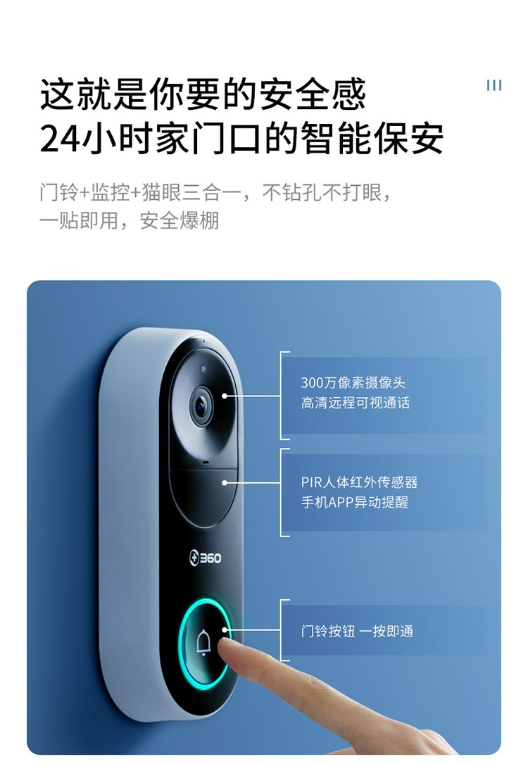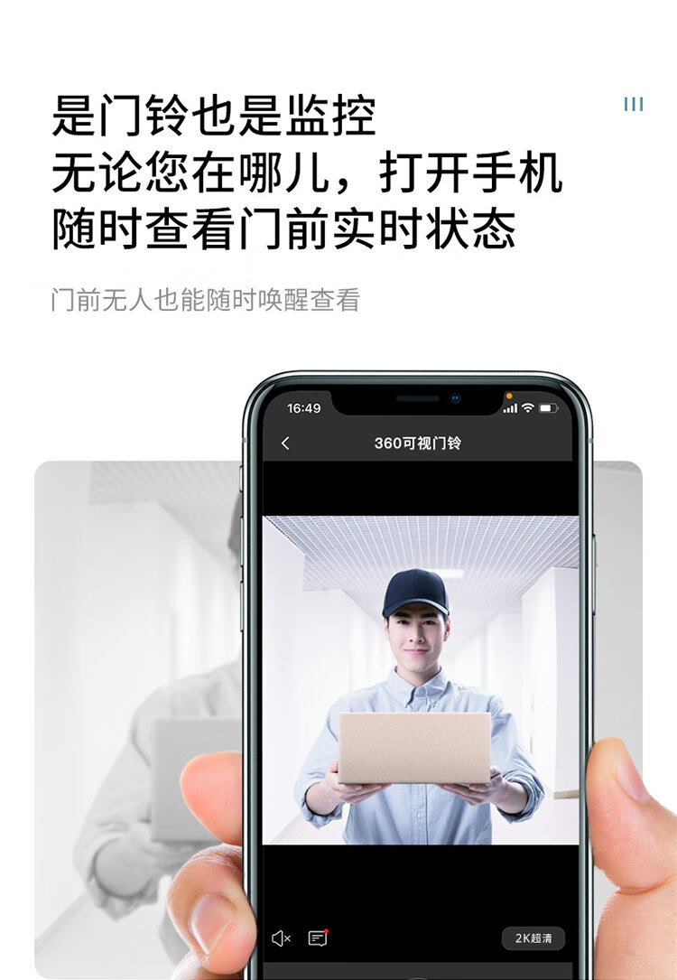 360 Video Doorbell 5Pro Camera Home Surveillance Camera Smart Camera 2K Smart Doorbell Electronic Cat Eye Wireless WiFi 300W Ultra-clear Night Vision AR1C