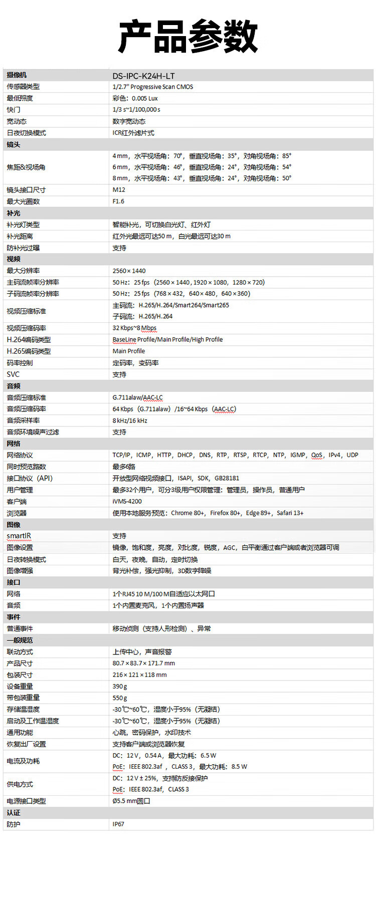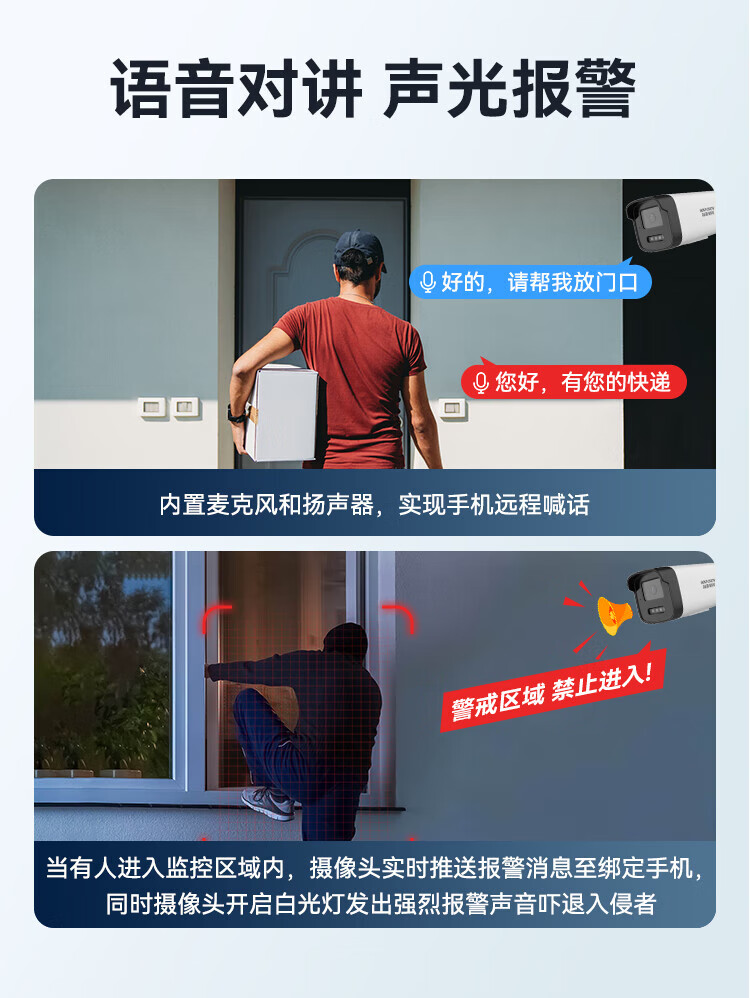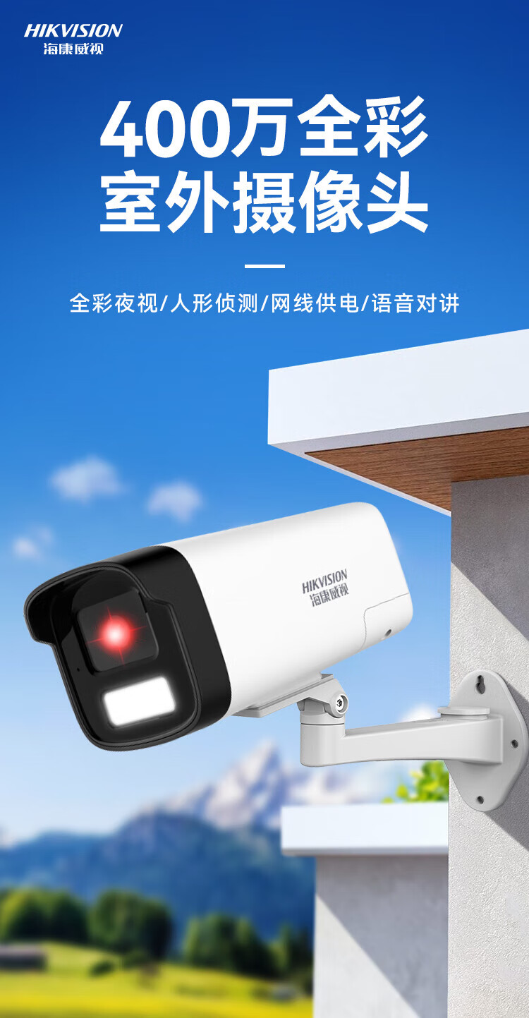 HIKVISION Hikvision surveillance camera 4 million 2K HD full color night vision AI humanoid detection voice intercom POE network cable outdoor waterproof monitor K24H-LT 4MM