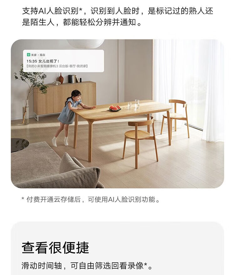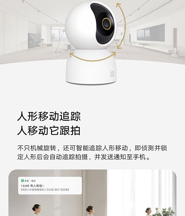 Xiaomi Smart Camera 3 PTZ version 5 million pixels 3K ultra-low light full color AI humanoid detection mobile phone viewing dual-frequency home camera baby nurse monitoring