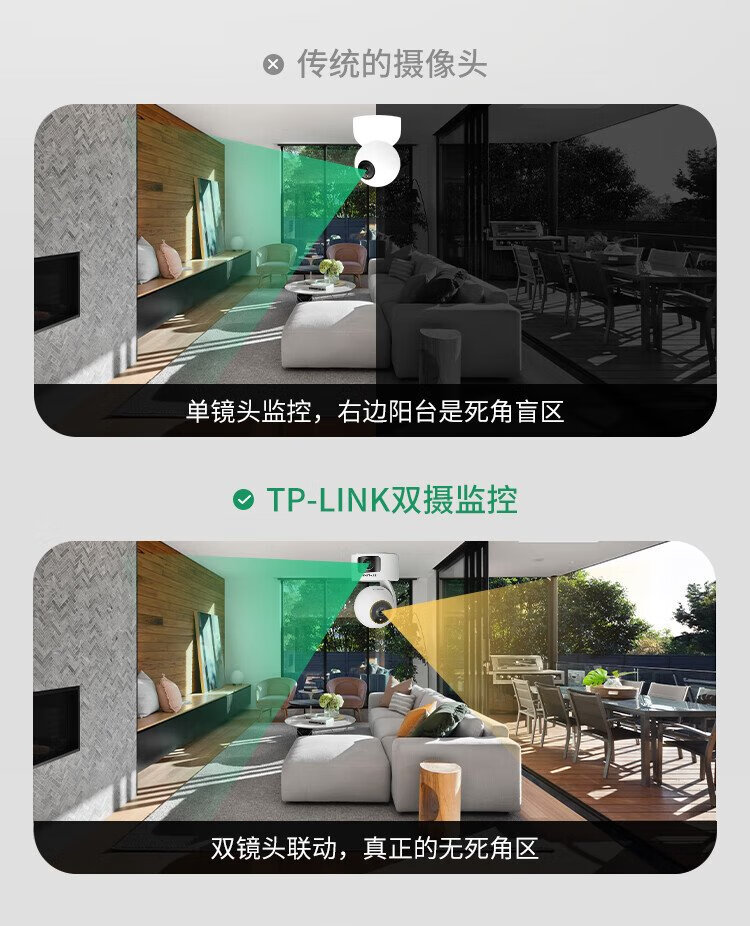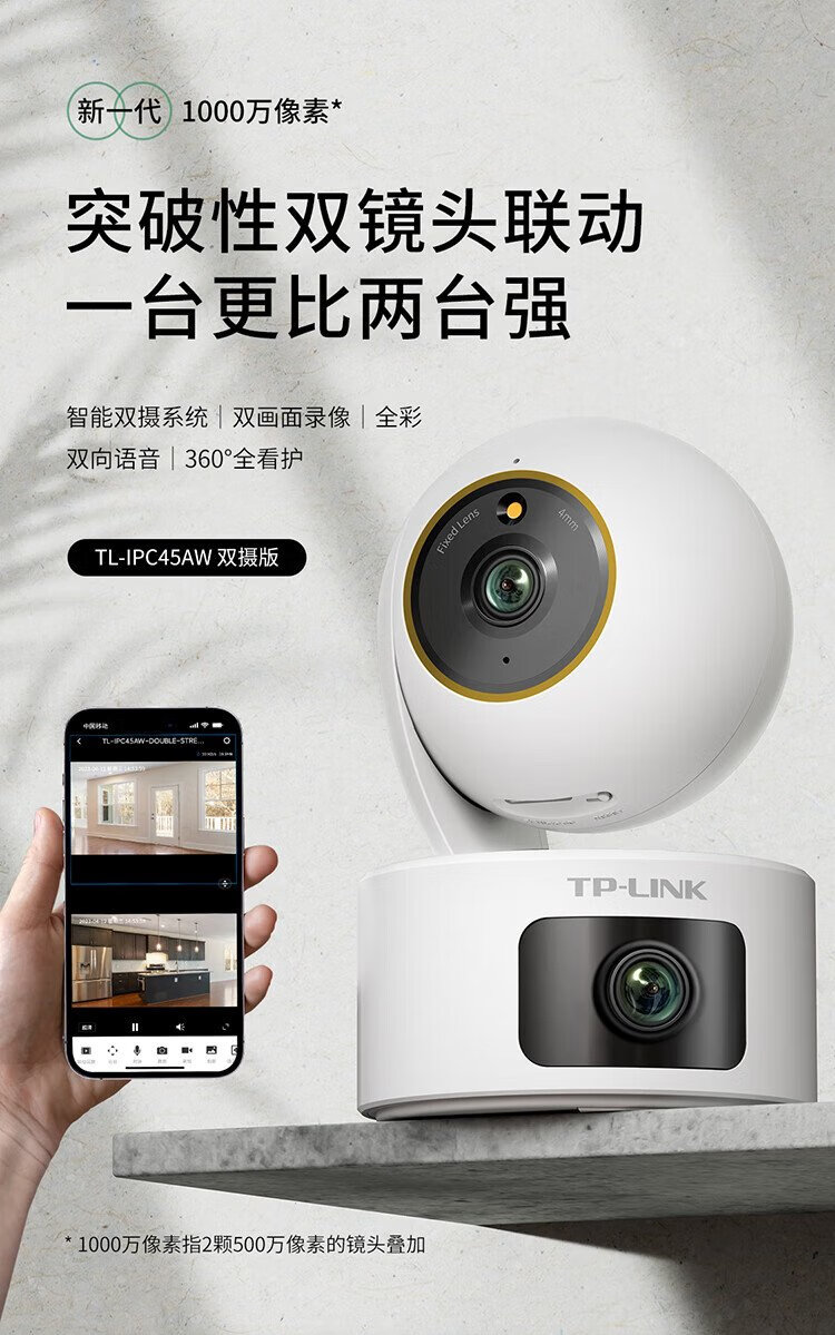 TP-LINK dual camera 10 million smart camera home monitor 360 degree night vision panoramic wireless mobile phone remote baby pet indoor security IPC45AW dual camera version