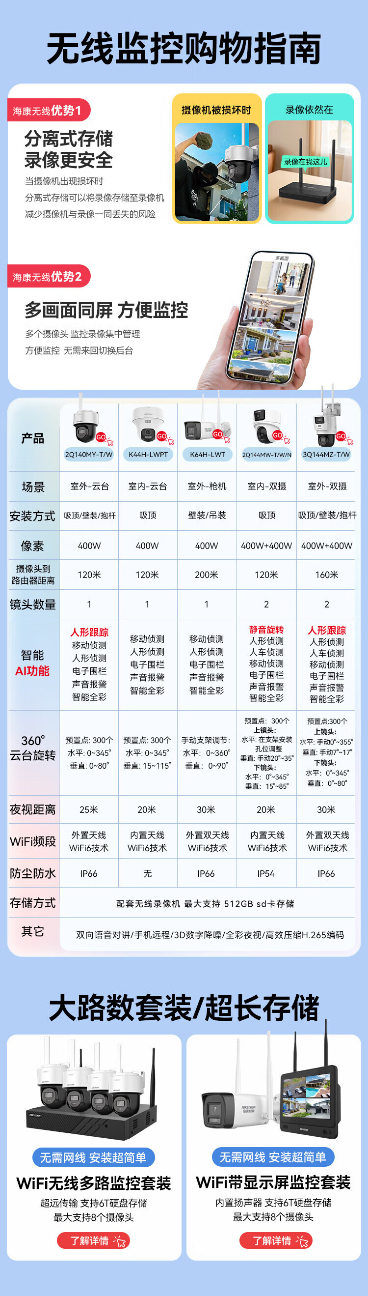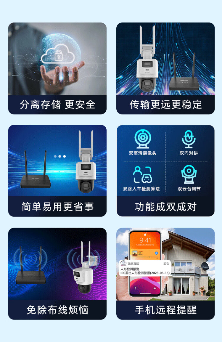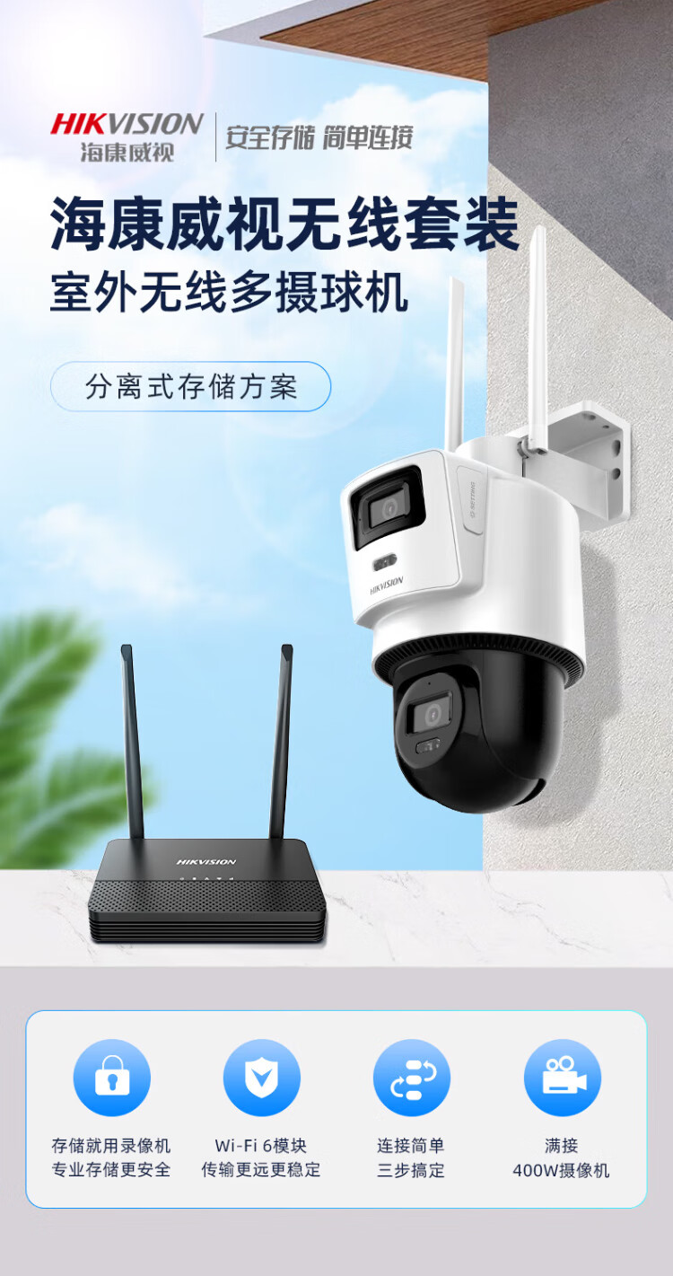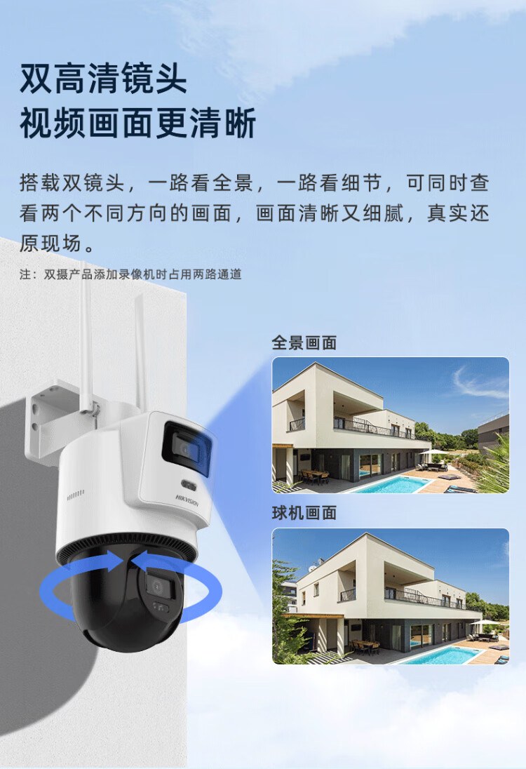 HIKVISION Hikvision wireless dual camera outdoor WiFi pan/tilt 360-degree no blind angle full color night vision 8 million AI mobile phone remote waterproof two-way voice dome machine 3Q144