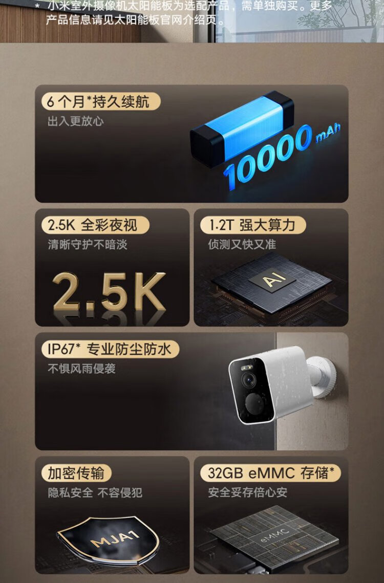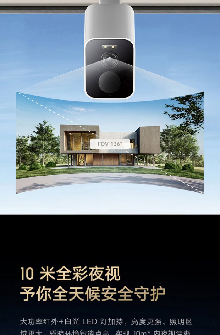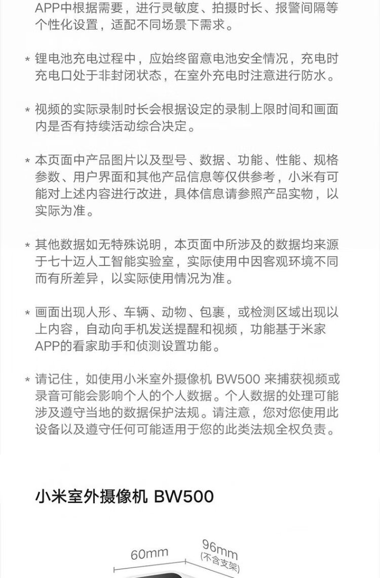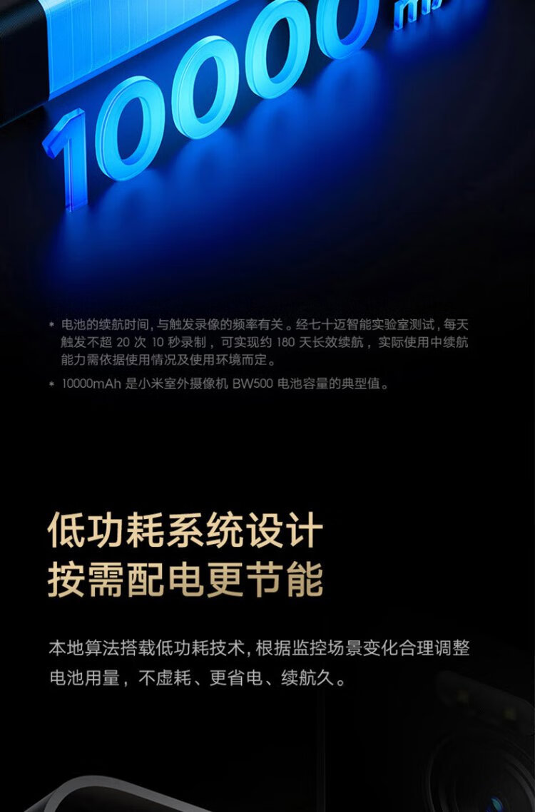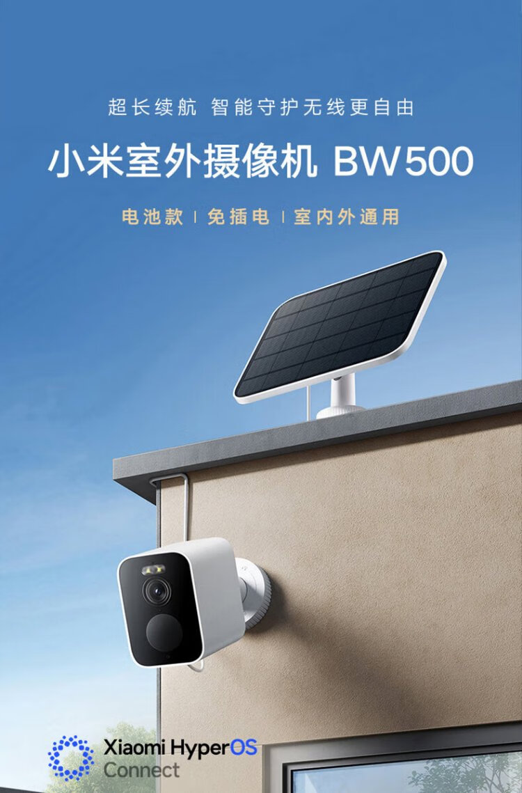 Xiaomi outdoor camera BW500 battery model home surveillance camera 4 million high-definition mobile phone remote 2.5K full color night vision surveillance wireless camera wifi free plug-in