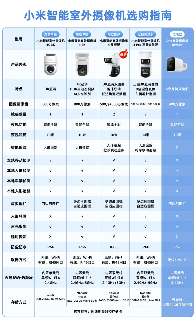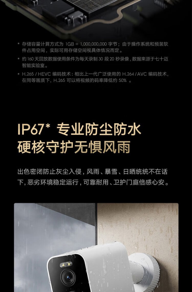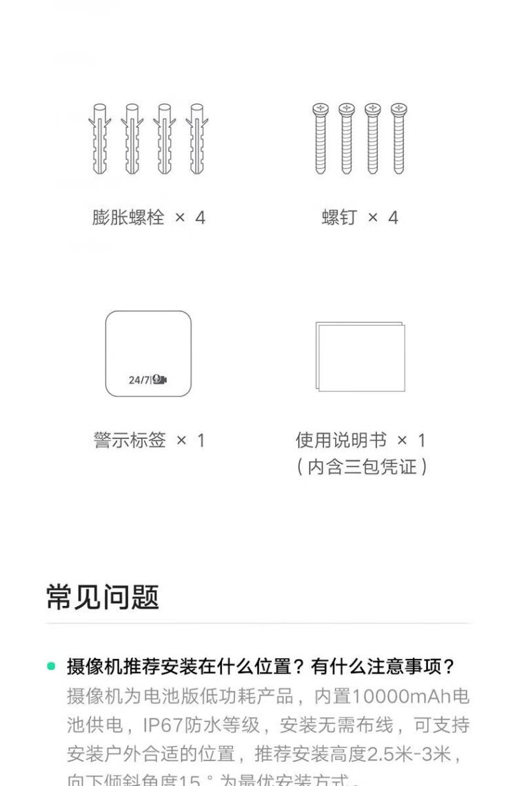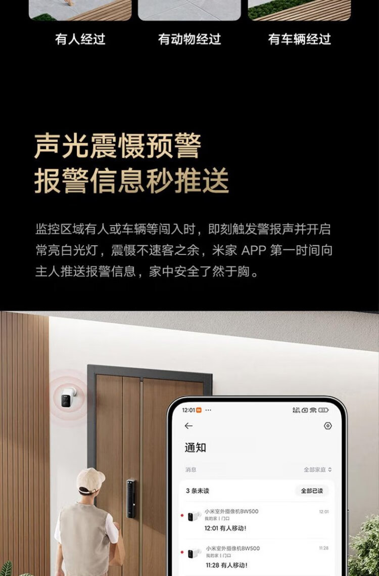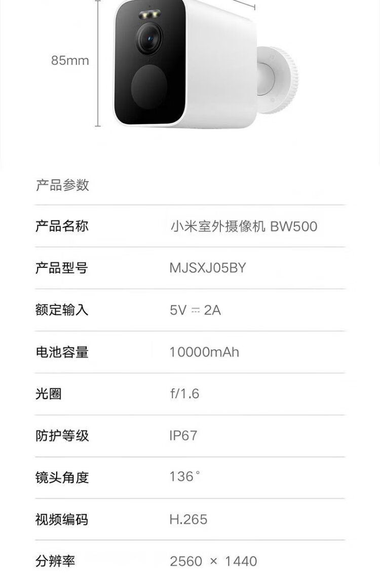 Xiaomi outdoor camera BW500 battery model home surveillance camera 4 million high-definition mobile phone remote 2.5K full color night vision surveillance wireless camera wifi free plug-in