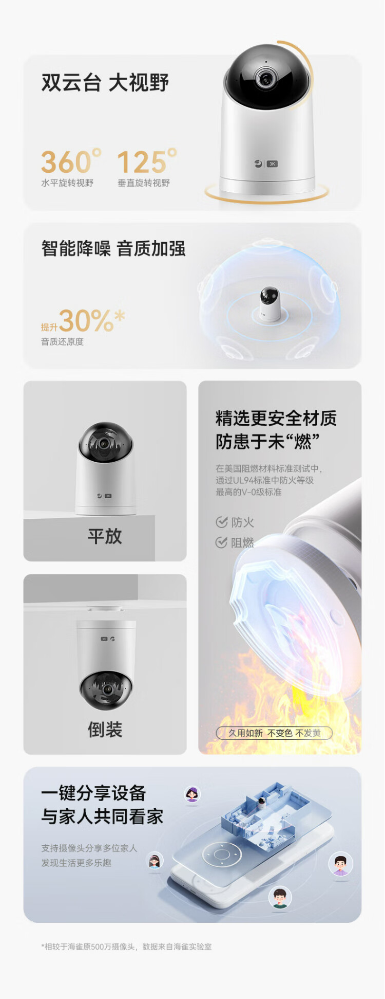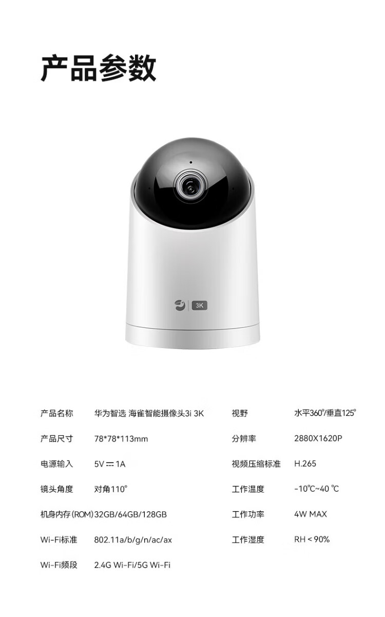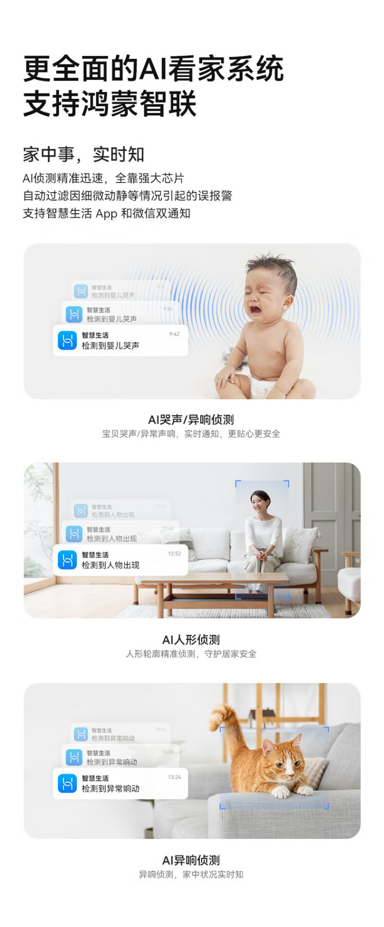 Huawei Smart Selection Hongmeng Smart Selection Camera 5 million monitoring home mobile phone remote 360-degree no blind angle with night vision panoramic call home indoor care Puffin 3i3K
