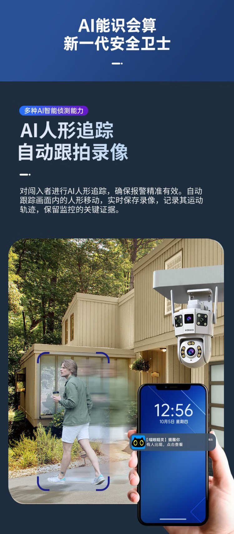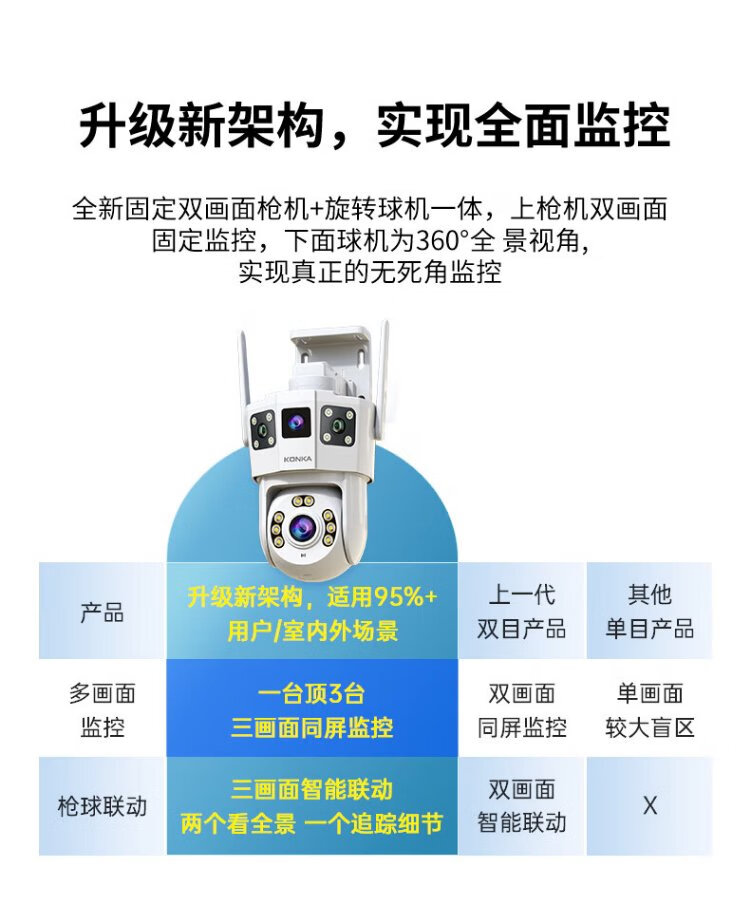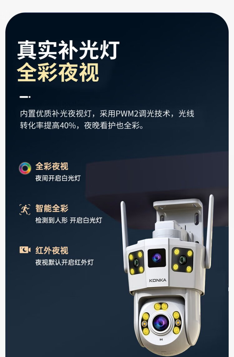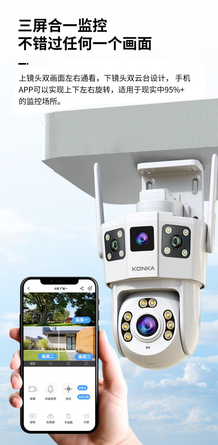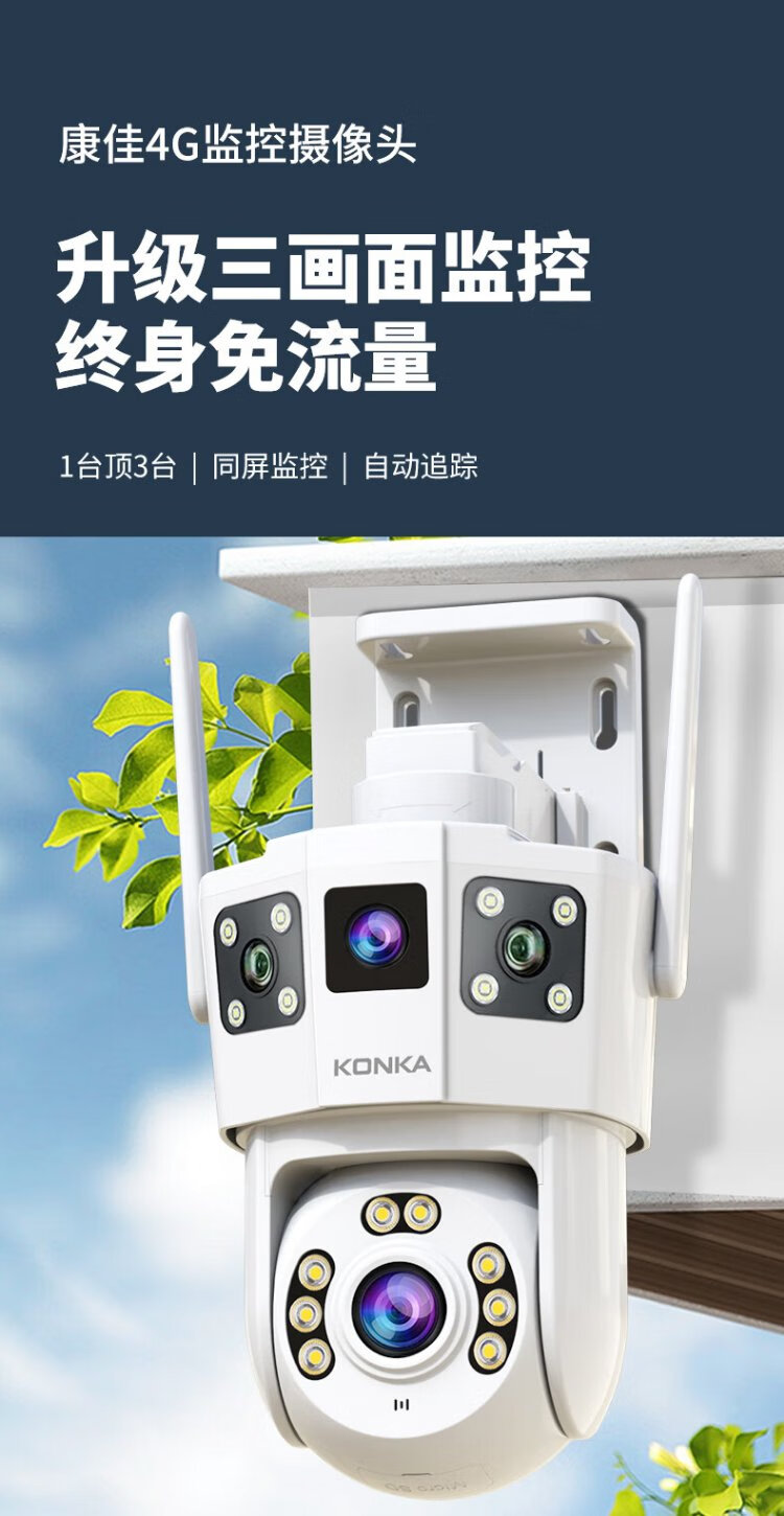 Konka 4g surveillance wireless camera no need to connect to wifi lifelong traffic-free monitor 360 degrees no blind spots with night vision panoramic mobile phone remote home high-definition room outdoor plug-in