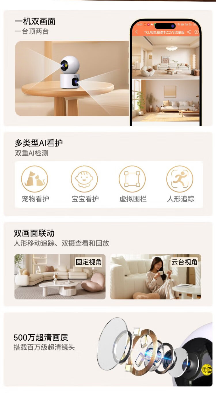 TCL4g surveillance wireless camera indoor, no need to connect to wifi, lifetime free traffic, mobile phone remote monitor 360 degrees, no blind spots, night vision, home plug-in, no network required