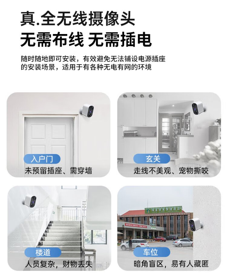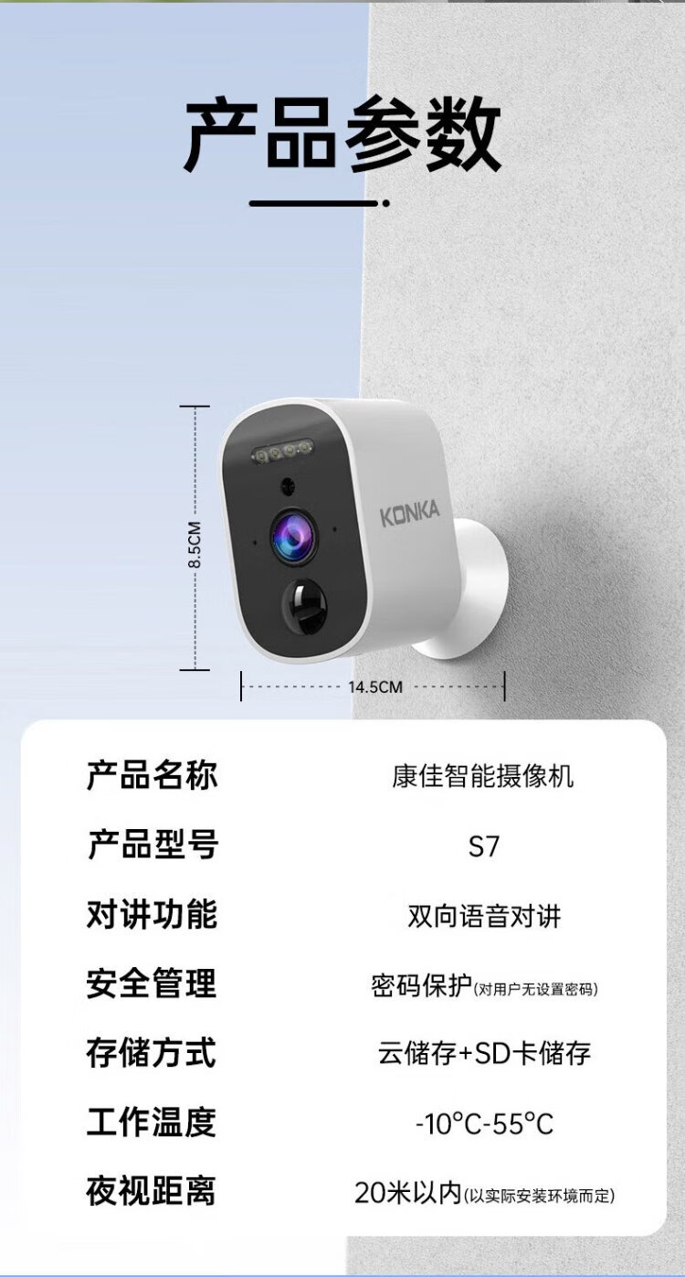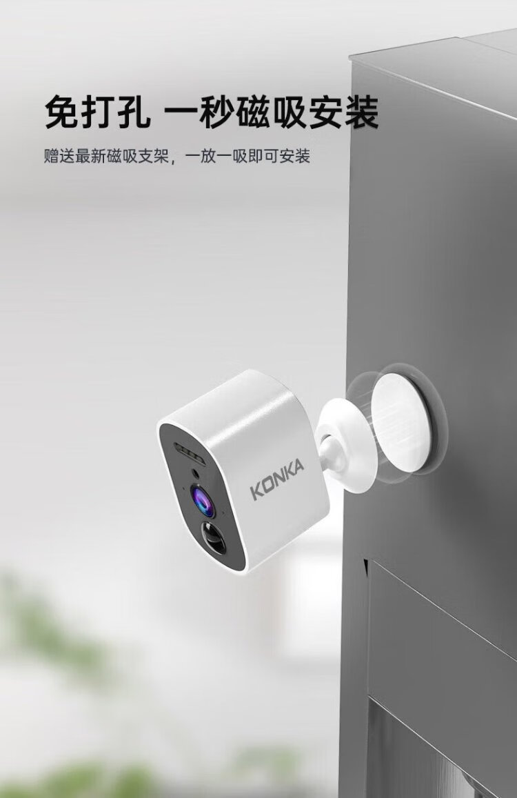 Konka corridor door wireless battery charging home camera needs to be connected to wifi network mobile phone remote monitor 360 no blind spots with night vision panoramic view without plug-in power indoor and outdoor