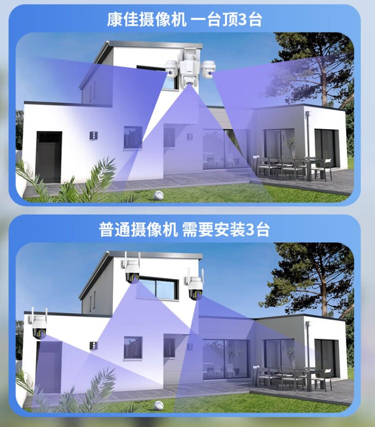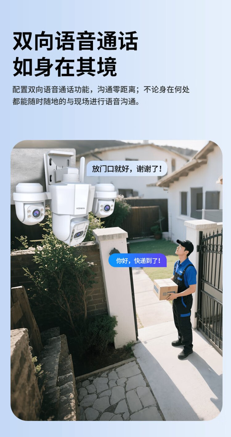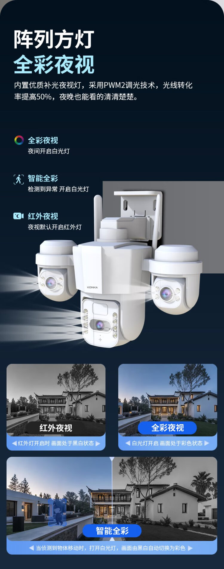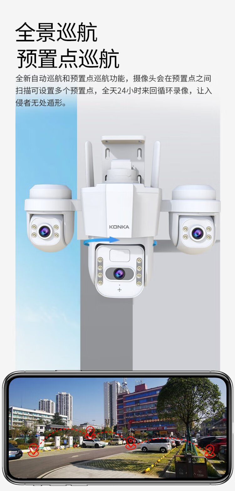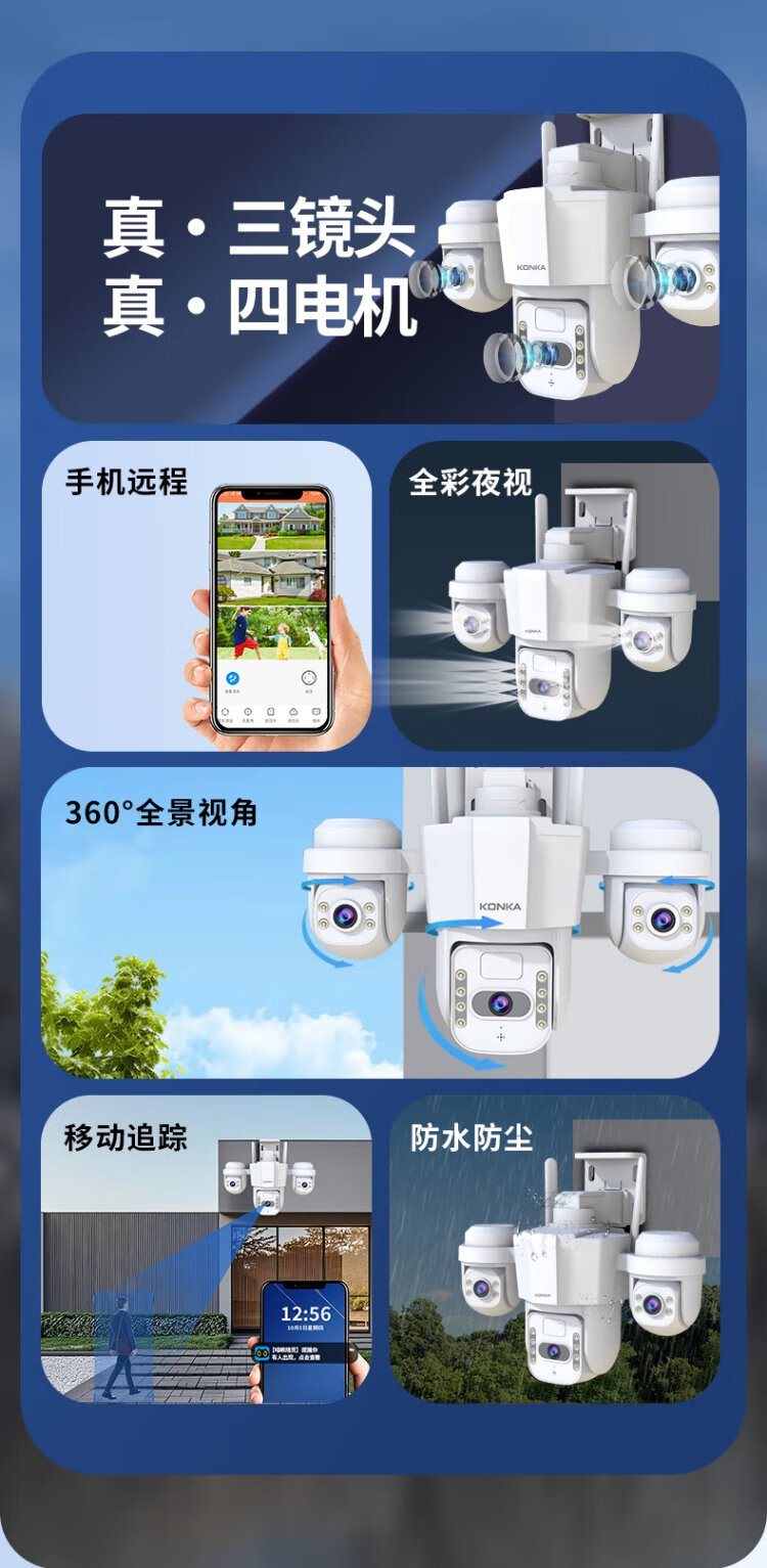Konka three-camera 15 million surveillance camera room outdoor home mobile phone remote high-definition wireless needs to be connected to wifi plug-in monitor 360 degrees no blind spots with night vision panoramic rural
