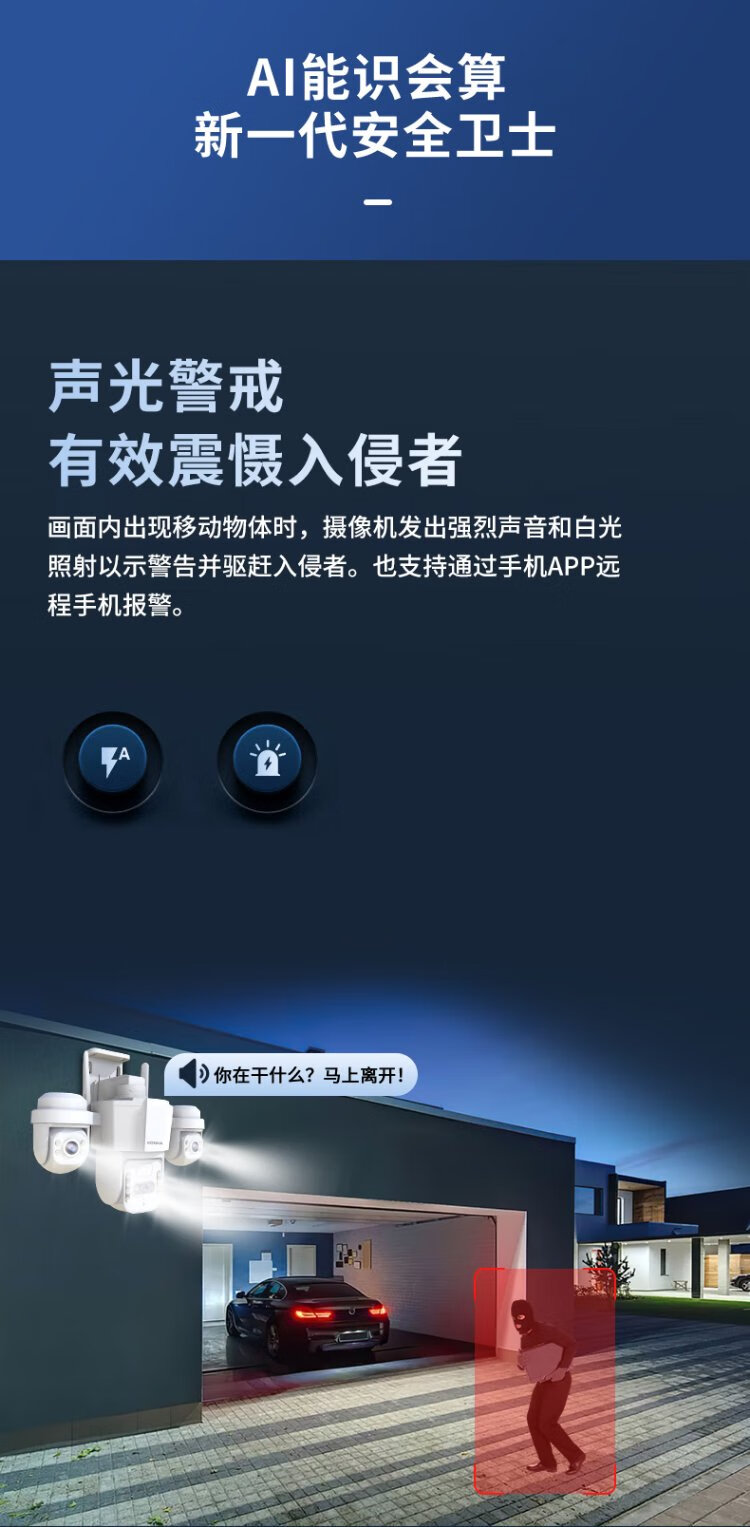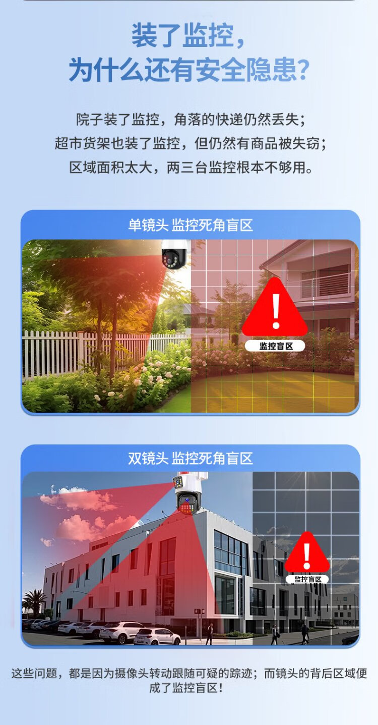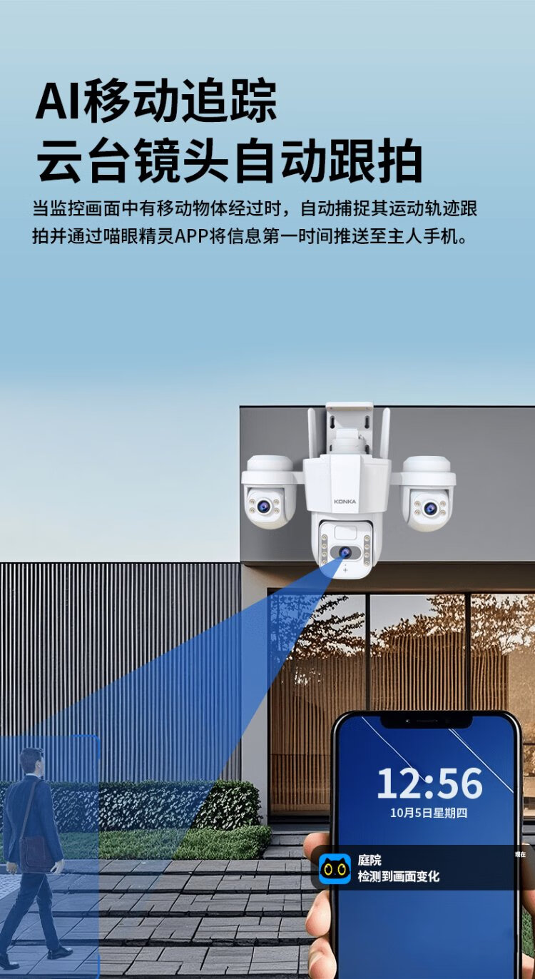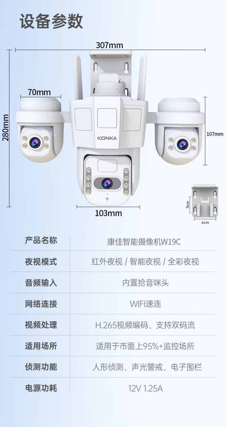 Konka three-camera 15 million surveillance camera room outdoor home mobile phone remote high-definition wireless needs to be connected to wifi plug-in monitor 360 degrees no blind spots with night vision panoramic rural