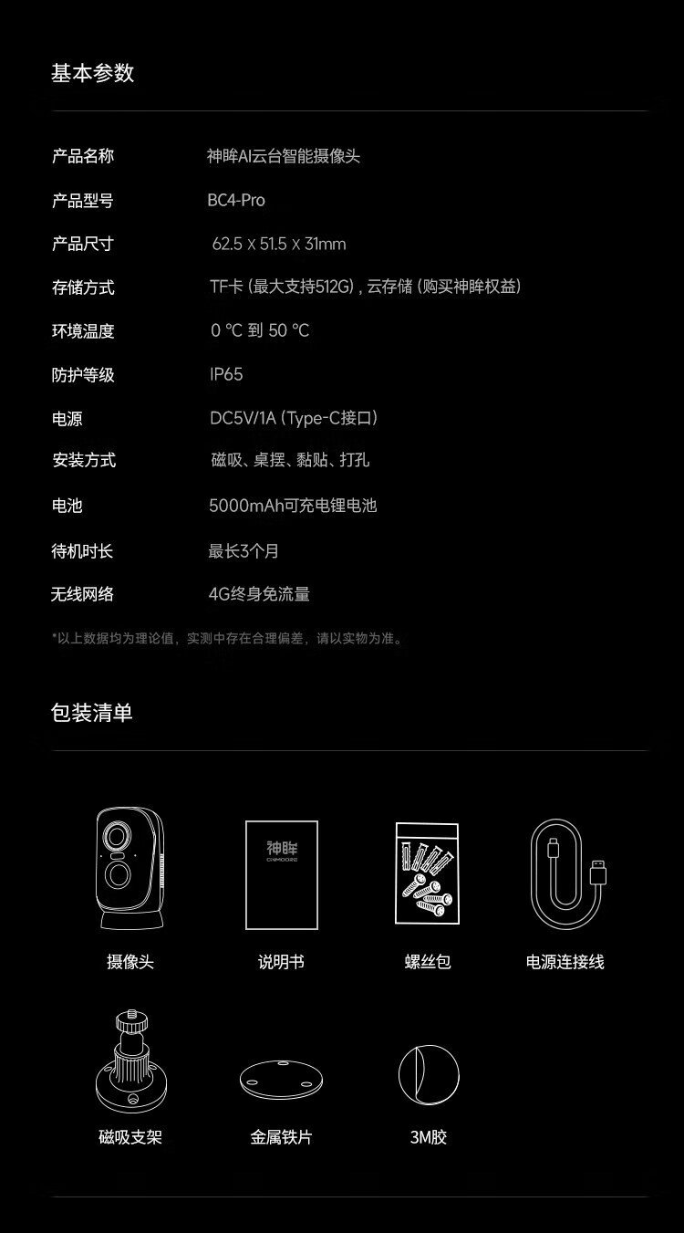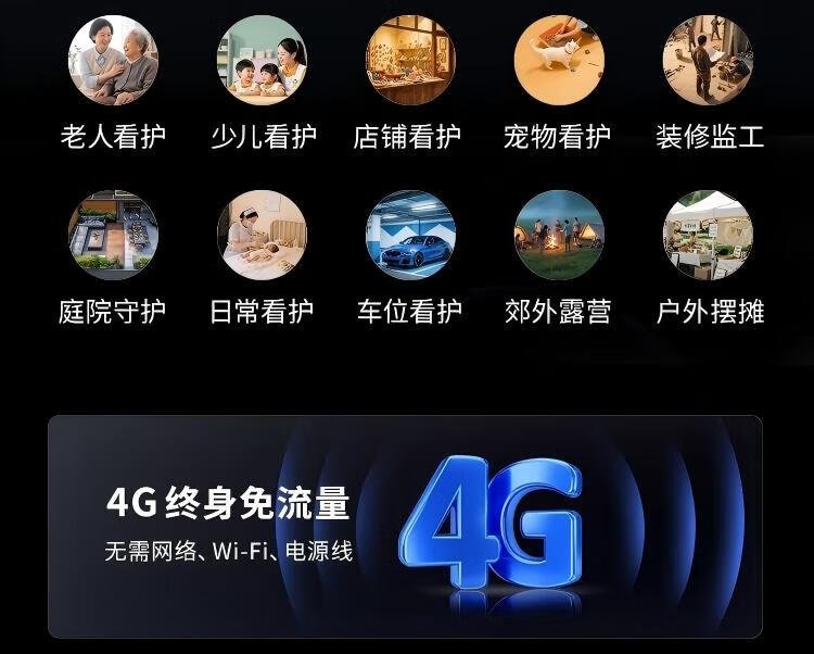 Shenmo 4g lifetime traffic-free camera monitor 360-degree no blind spots with night vision plug-in-free large field of view rotating pan/tilt high-definition mobile phone remote smart care without wifi
