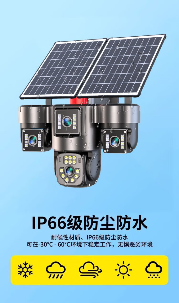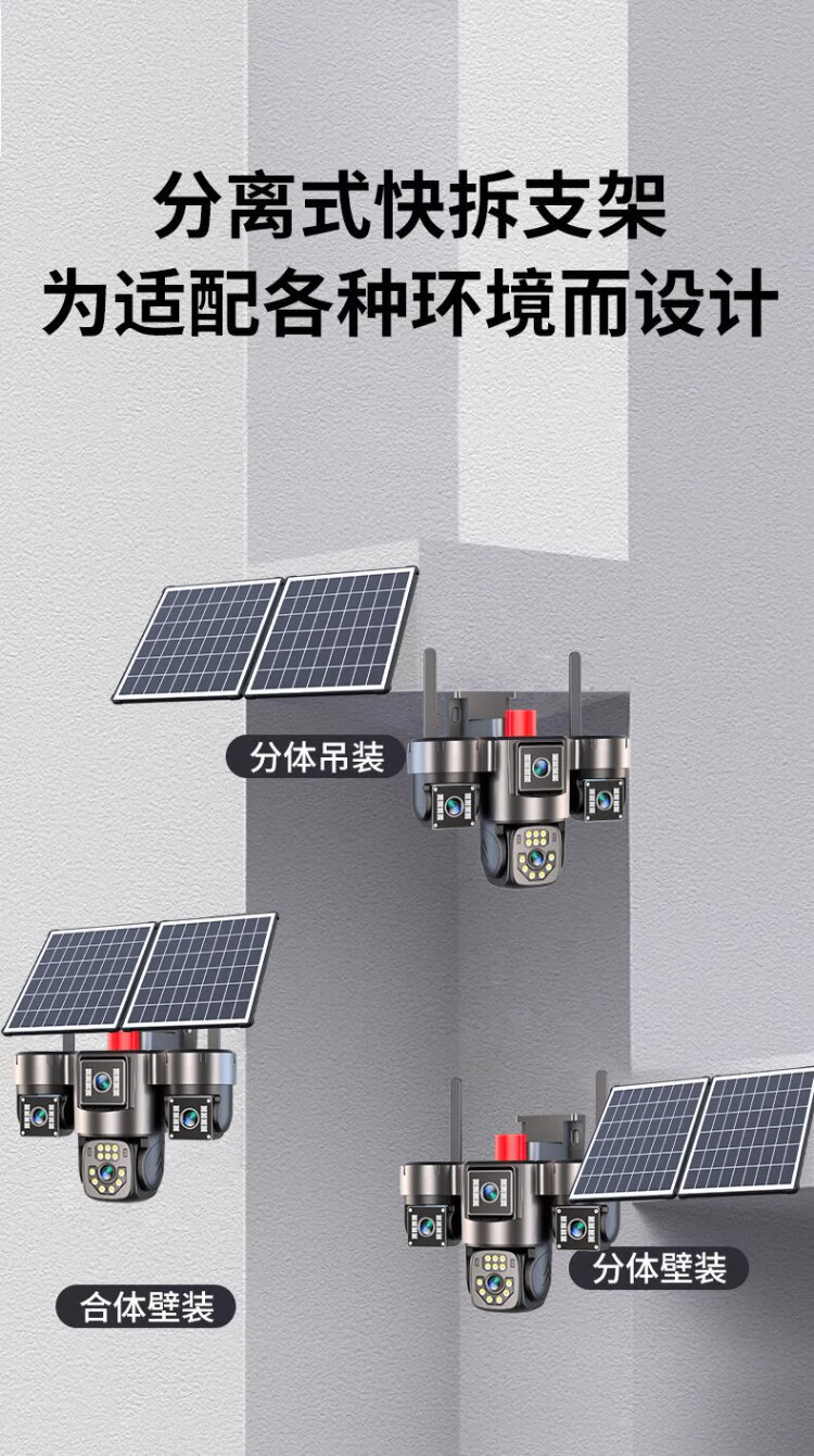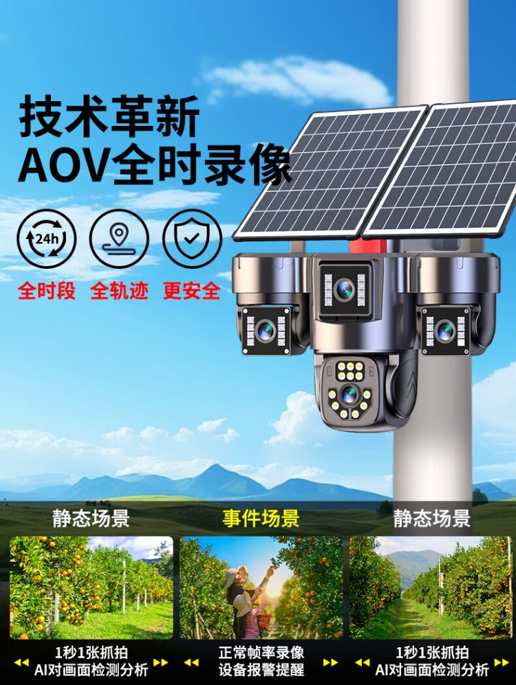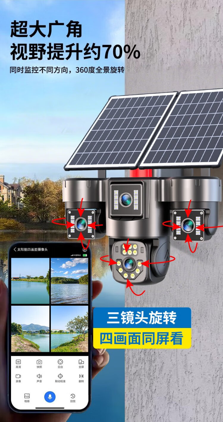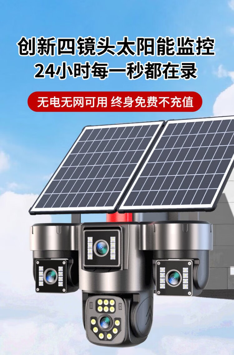 Guangchun four-lens solar camera rural field 4g lifetime traffic-free outdoor care remote monitor home 360-degree full color high-definition night vision outdoor plug-in-free