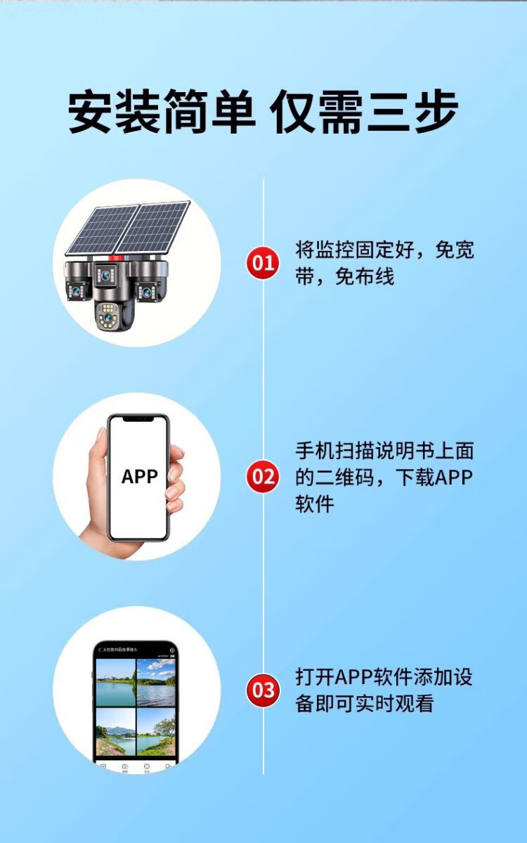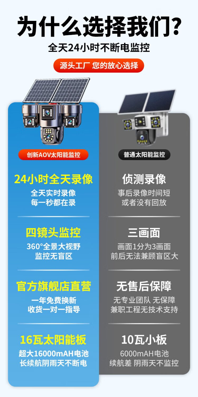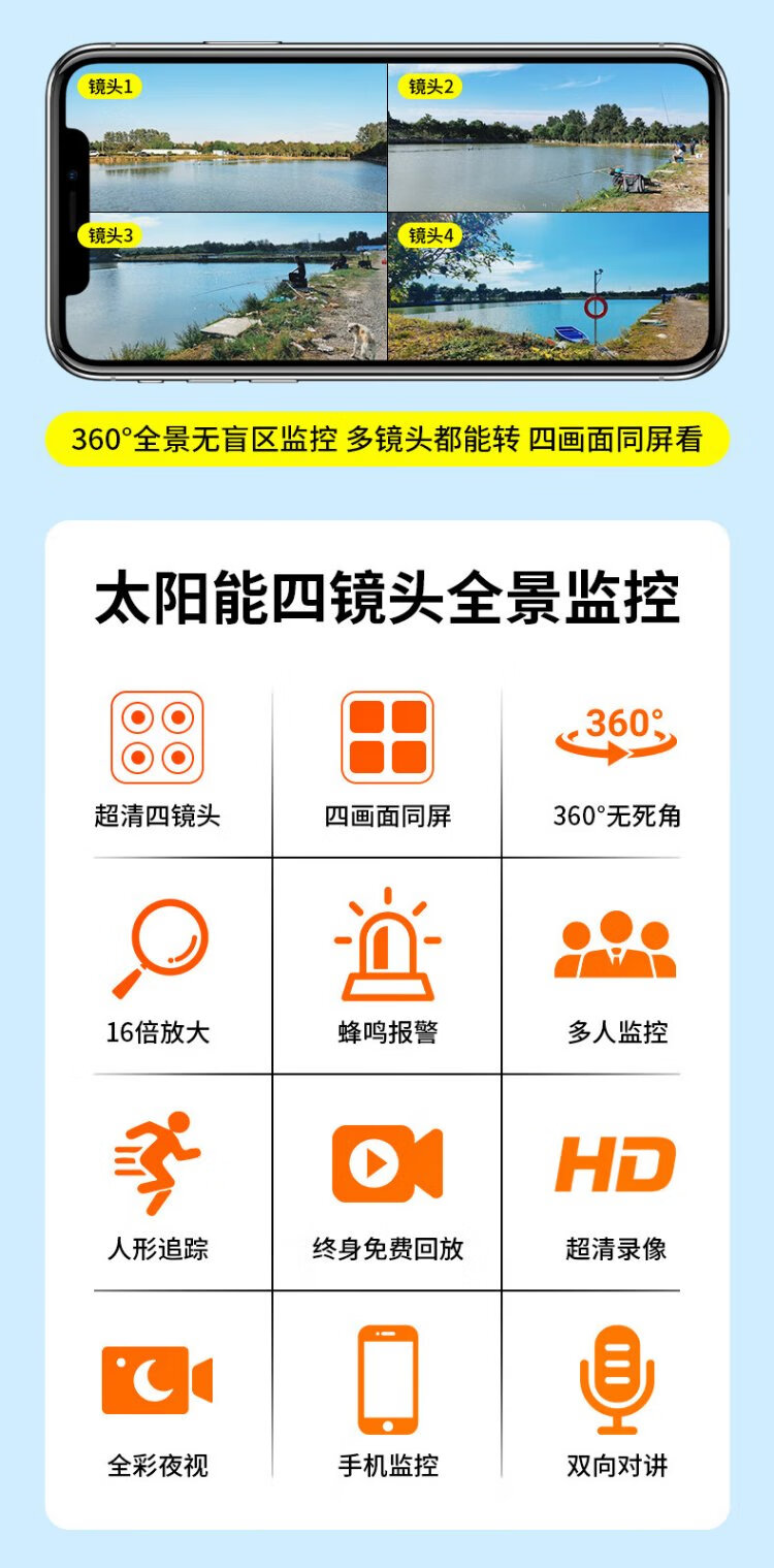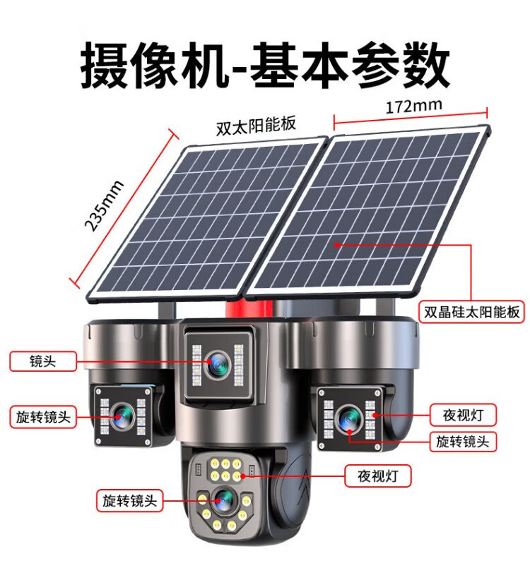 Guangchun four-lens solar camera rural field 4g lifetime traffic-free outdoor care remote monitor home 360-degree full color high-definition night vision outdoor plug-in-free