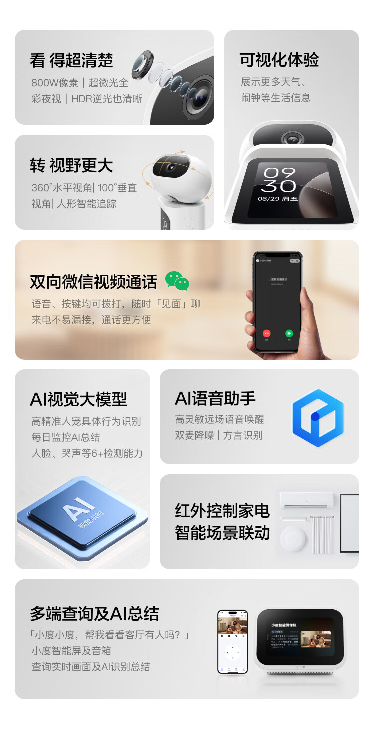 Xiaodu smart camera C800 video call version 4K ultra-clear camera 8 million pixels infrared night vision home indoor AI behavioral care WeChat video call