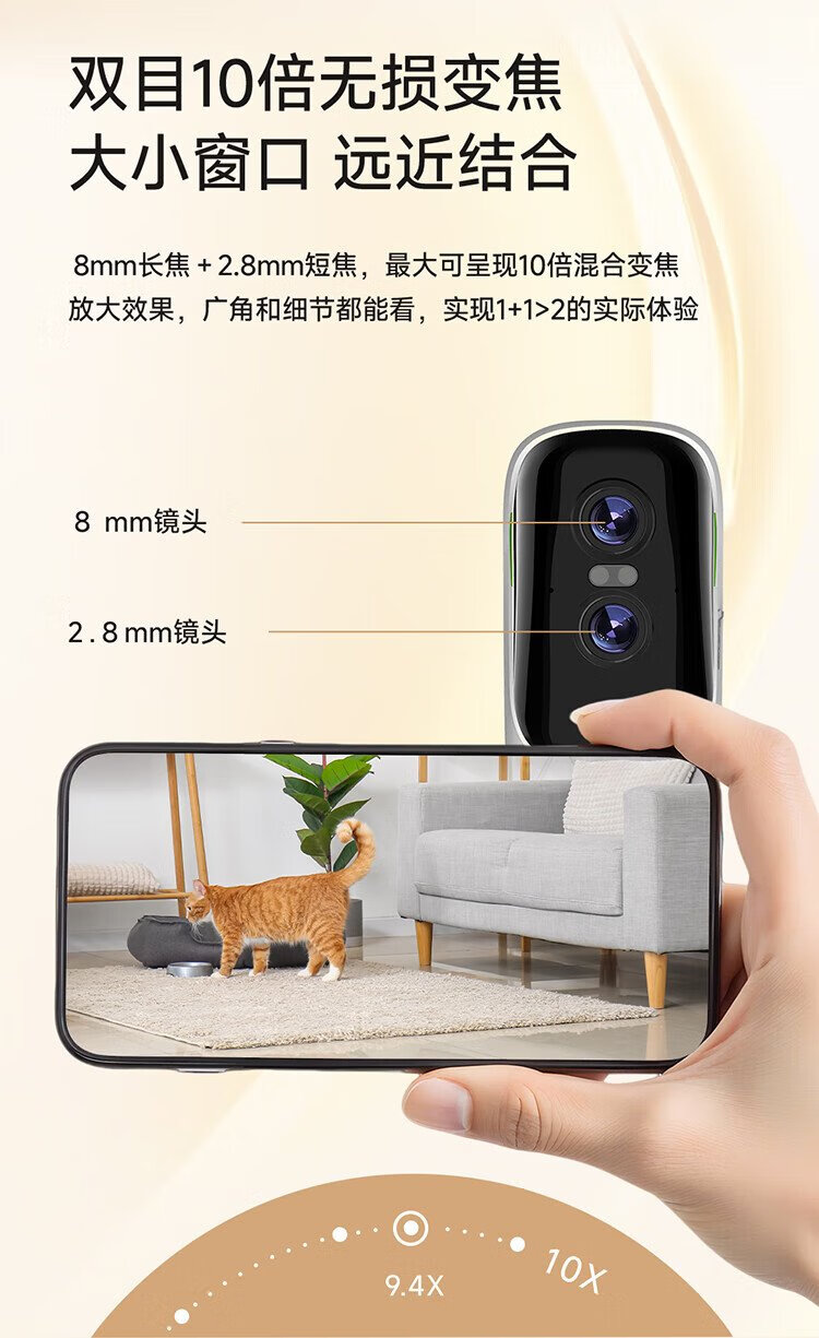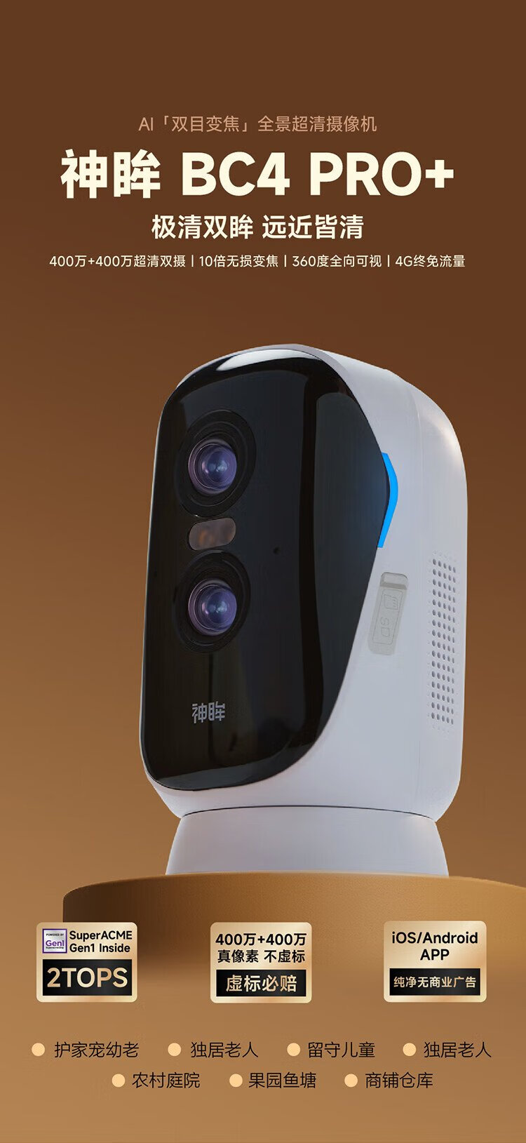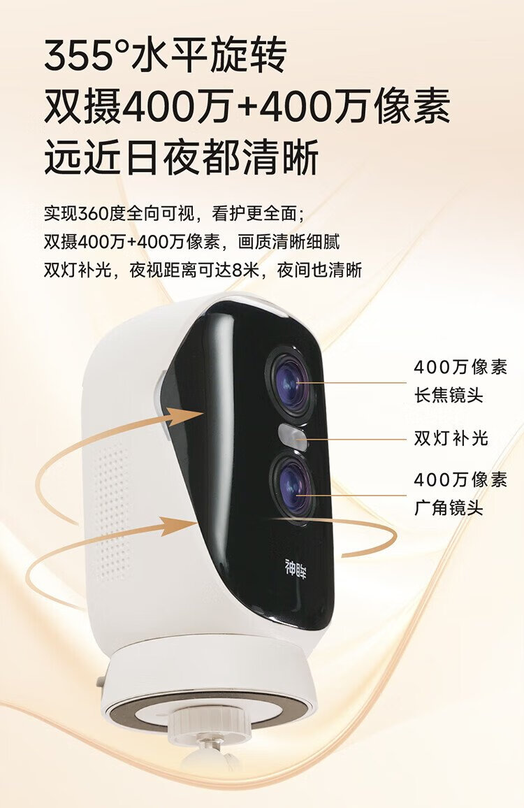 Shenmo 4G permanent streaming-free 8-megapixel dual-camera 360 PTZ rotating camera 10x lossless zoom magnetic suction punch-free home monitoring without plug-in can be equipped with solar panels