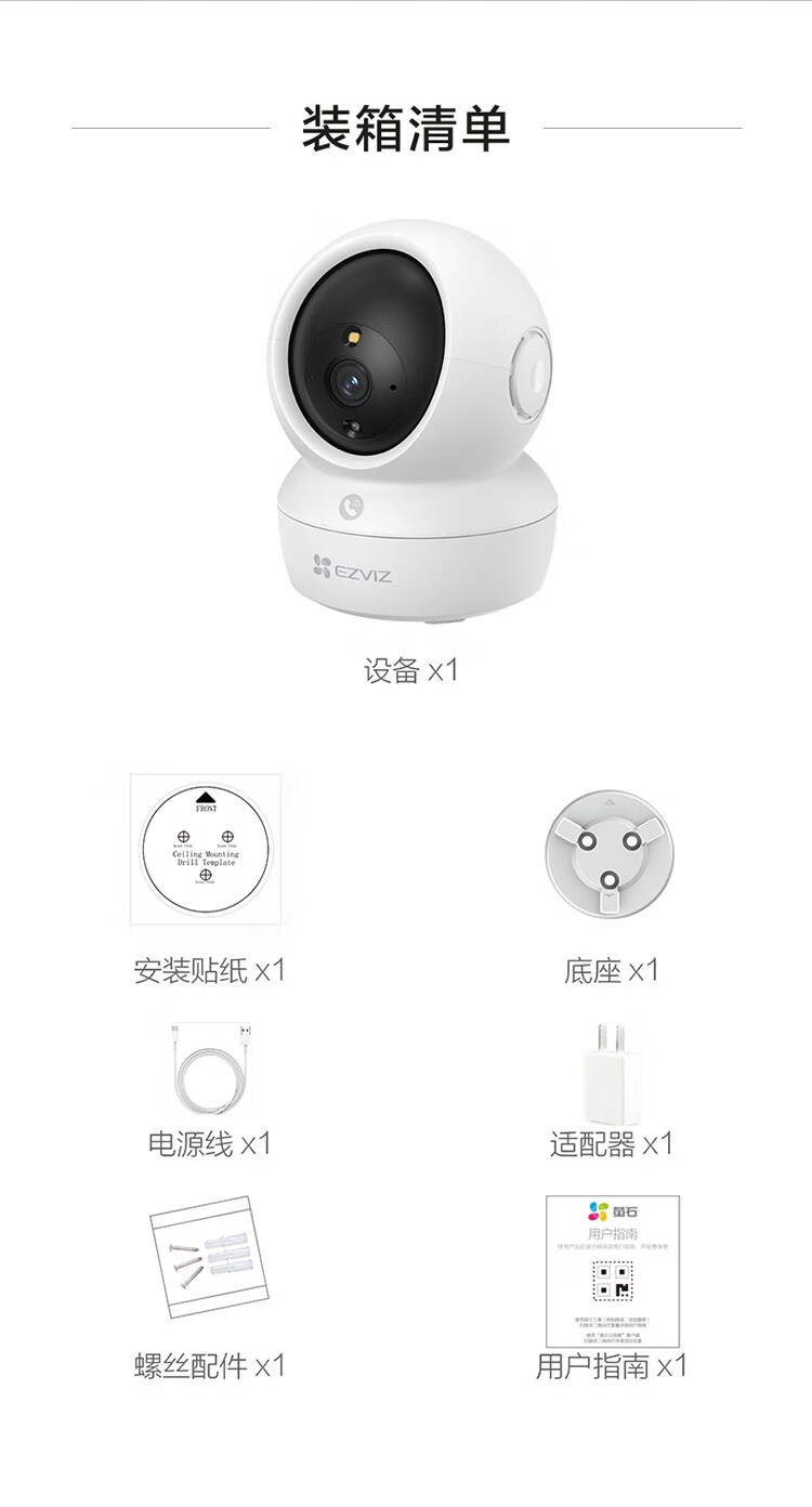 EZVIZ H6c-3MP Pro flagship indoor camera 3 million pixel dual pan-tilt security surveillance camera smart home wireless wifi networking with network port