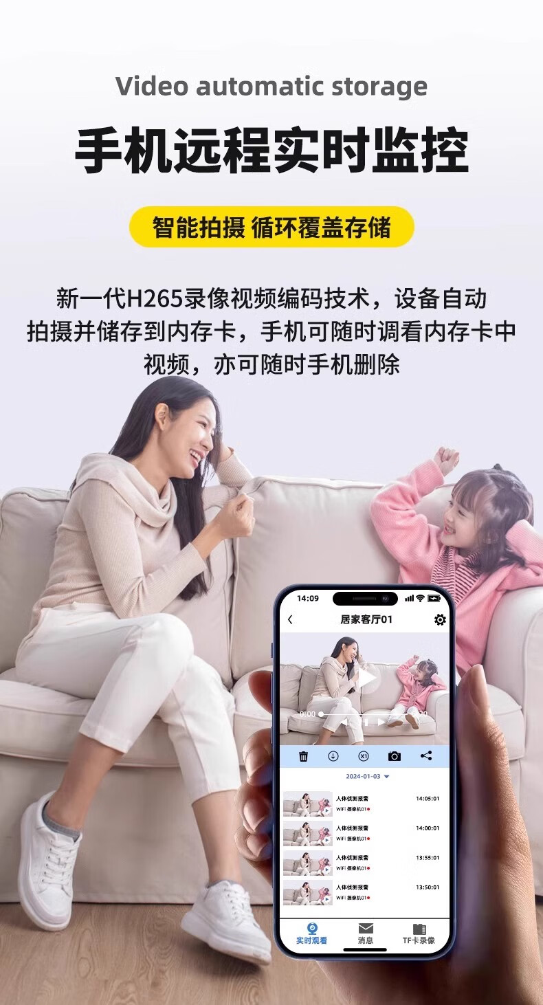 Geco's new camera wireless high-definition monitor home Wifi remote connection mobile phone night vision camera network camera plug-in-free security video recorder small portable WiFi smart version without plug-in and punch-free + full-featured night vision mobile monitoring card-free version
