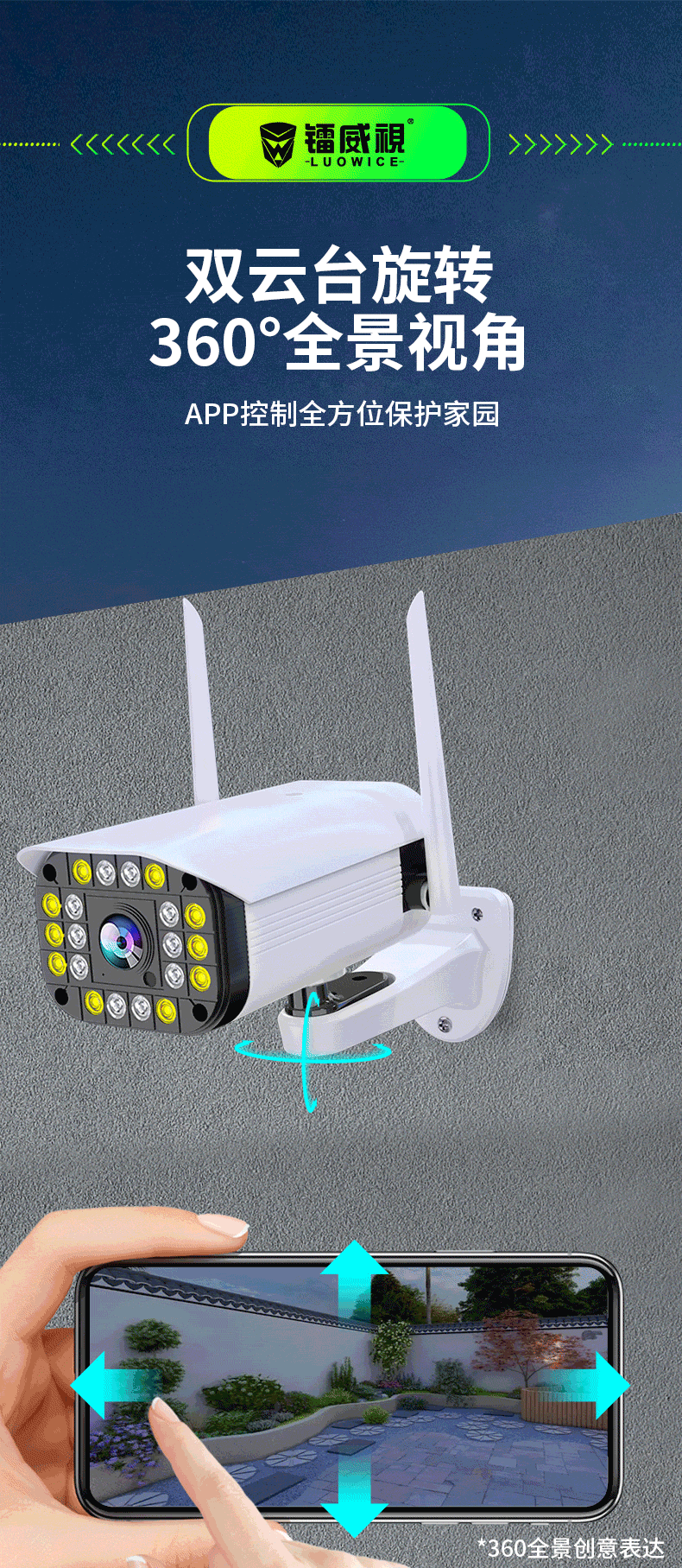 Leiweishi camera monitor set 360-degree panoramic view without blind spots conversational rotation wireless wifi high-definition night vision room outdoor waterproof 4g mobile phone remote rural home tracking WIFI upgraded version PTZ rotation + 5 million recommended for home use Contains 64G memory card