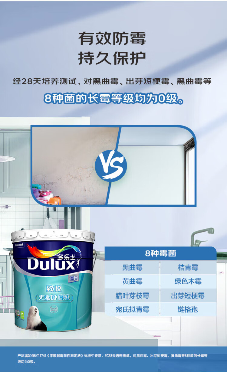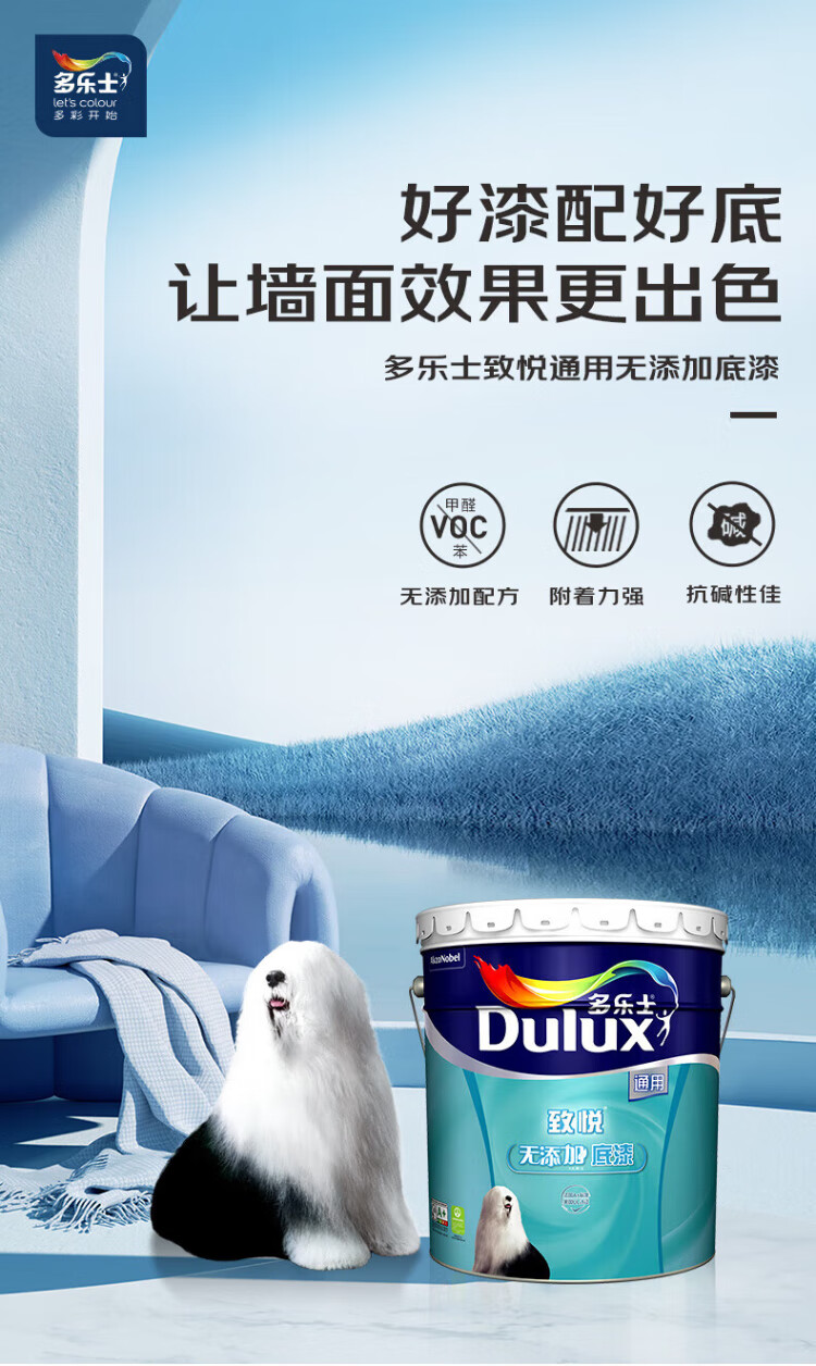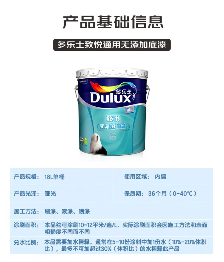Dulux latex paint primer Zhiyue universal additive-free anti-mildew and alkali-resistant environmentally friendly interior wall paint A914-65749 white 18L