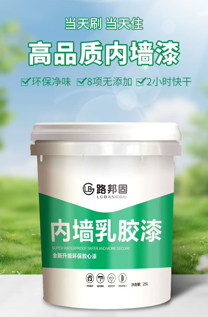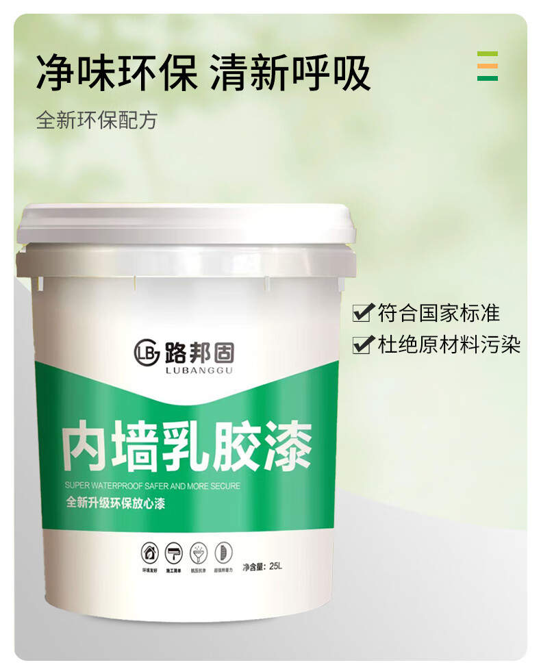 Lubanggu latex paint indoor self-brushing paint interior wall household environmentally friendly odor-free color paint white wall paint wall renovation white 20Jin Jin equals 0.5 kg, odor-free and does not shed dust, can paint 30-40 square meters, free roller brush