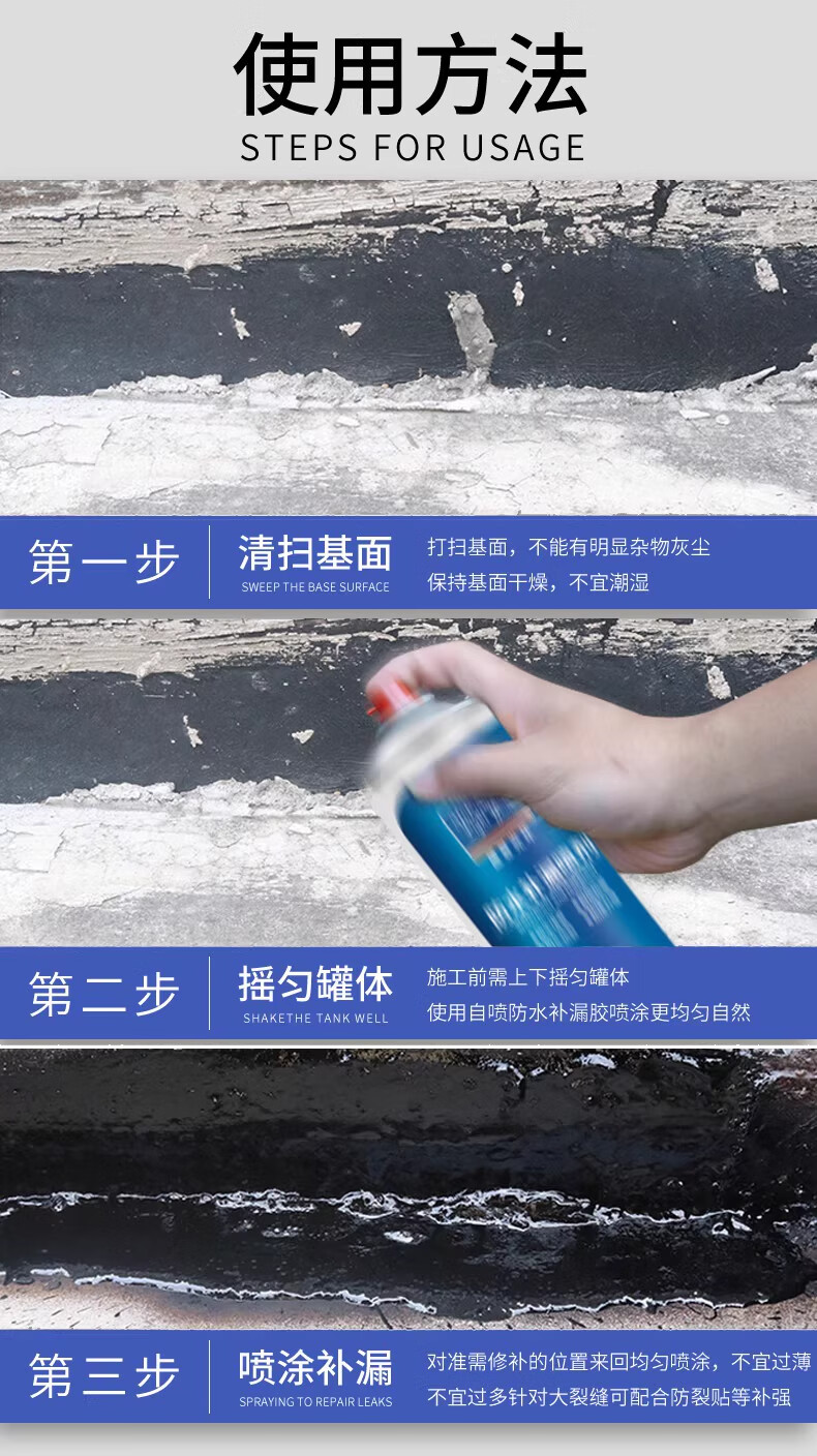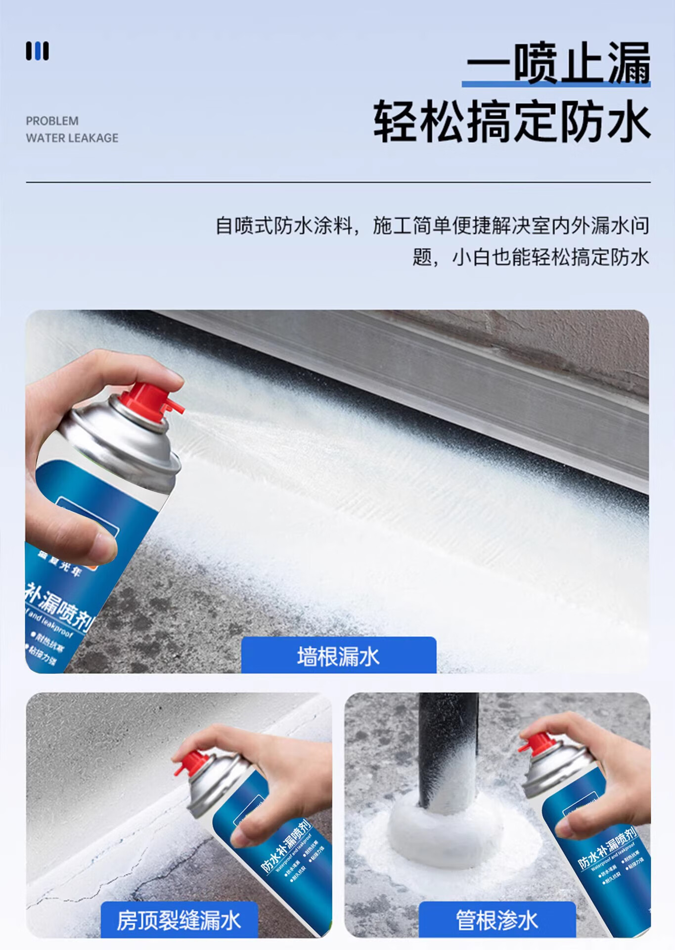 Waterproof leak-repairing spray Household exterior wall roof house crack sealing leak-proof convenient spray paint Waterproof leak-repairing spray-white 700ml-1 bottle (no tools)