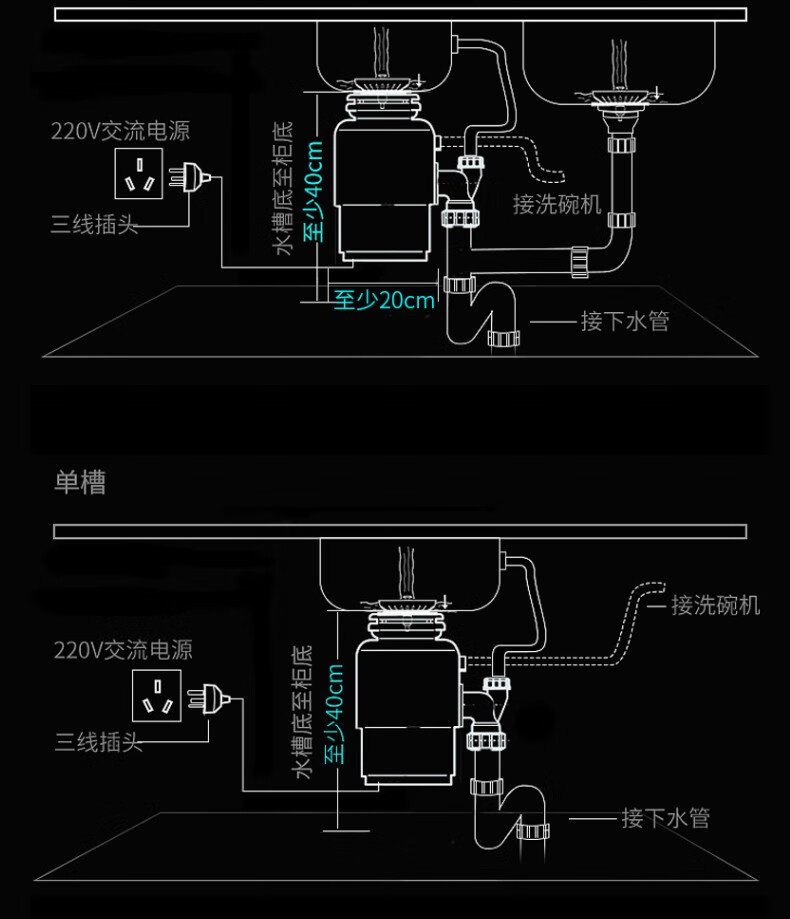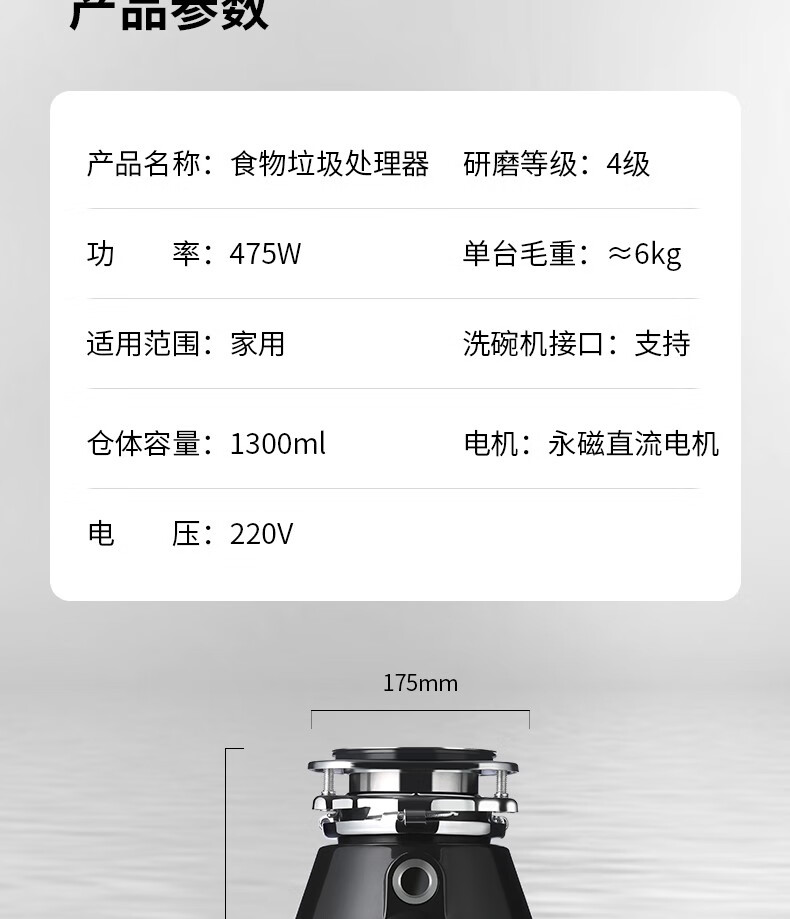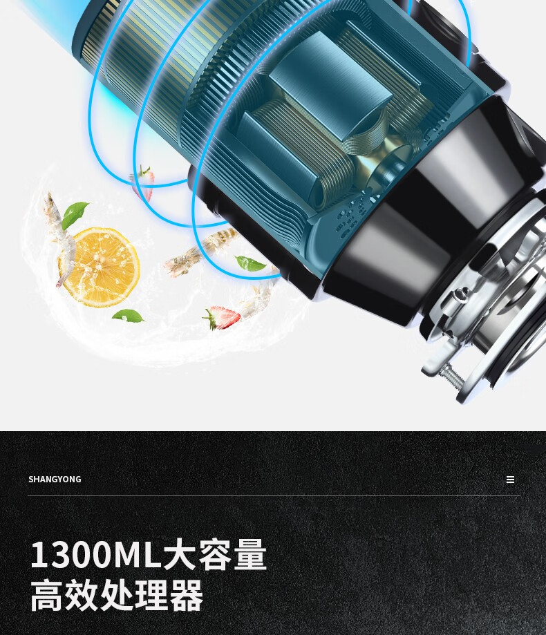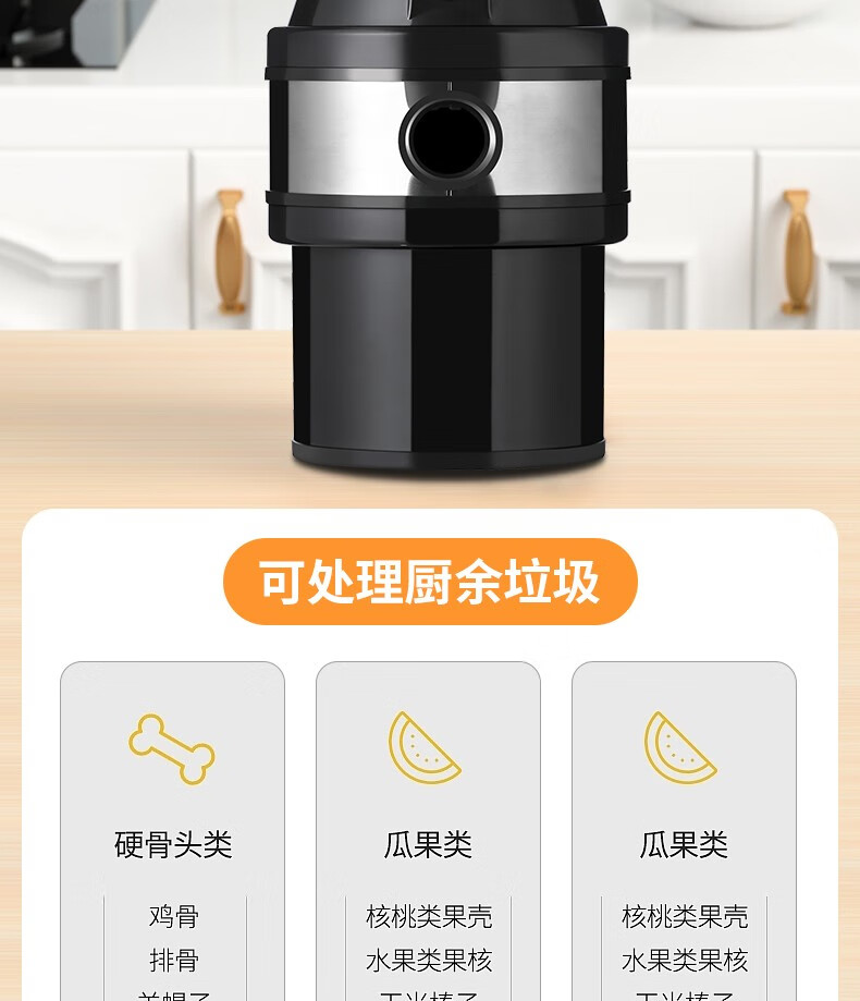 Kitchen garbage disposer, kitchen sink, food waste grinder, high-power fully automatic desktop, family selection (random color)