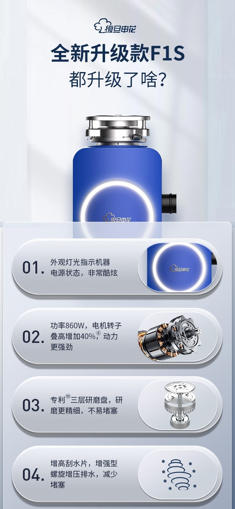 Fudan Shenhua F1S garbage disposer automatic water inlet food waste crusher household kitchen food waste treatment Truffle White