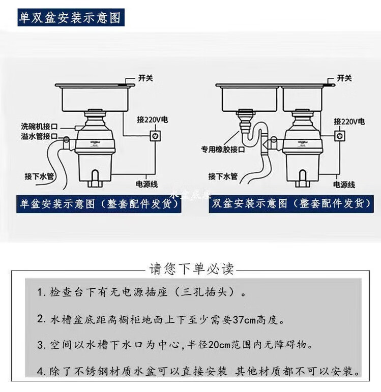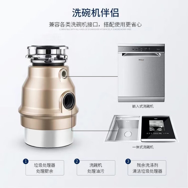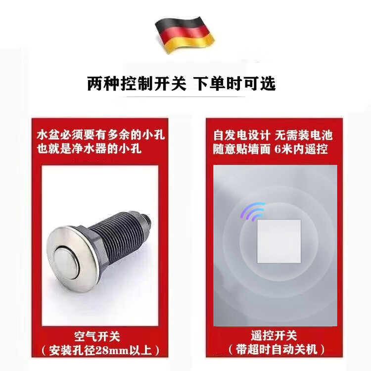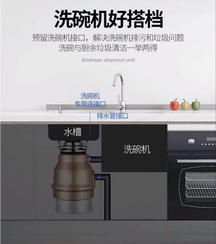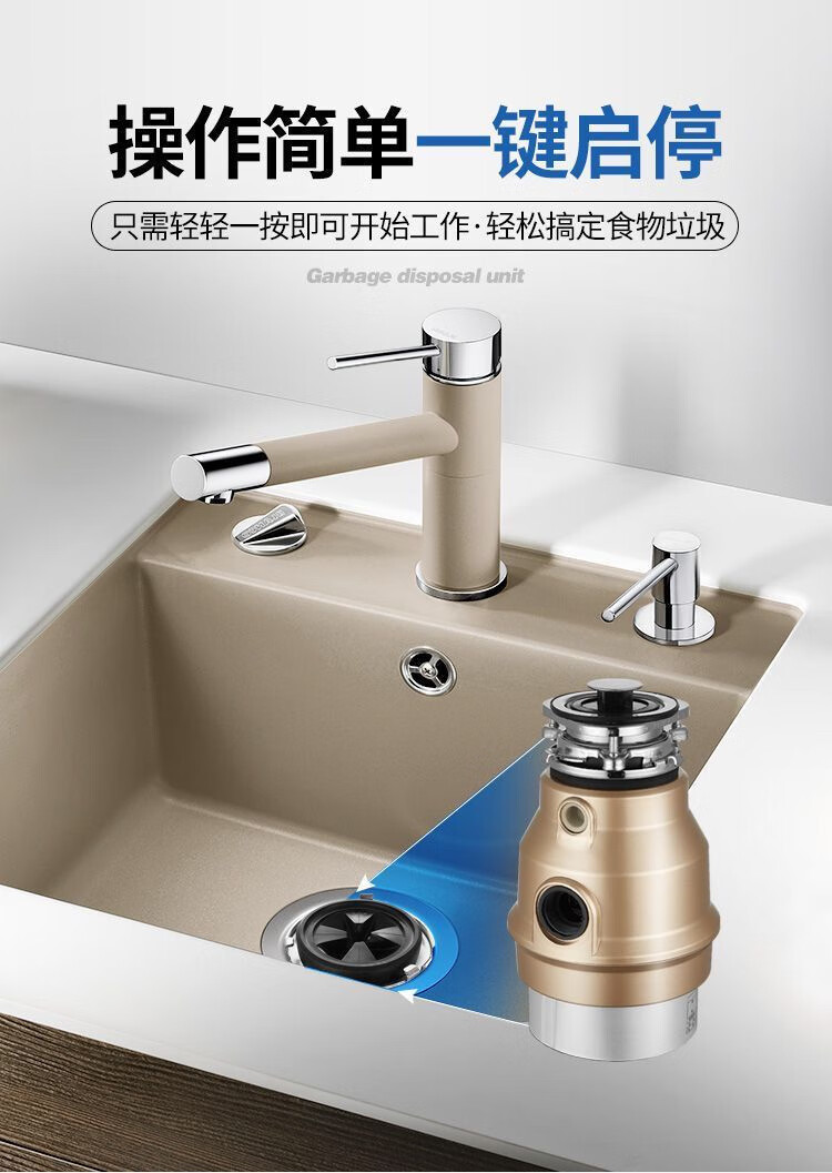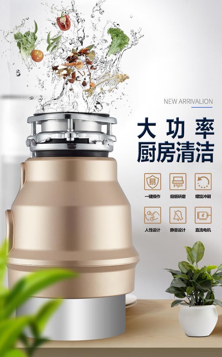 German kitchen food waste disposer kitchen waste crusher 800W high power high horsepower bone crushing into slag silent fully automatic water inlet model + remote control switch + package installation