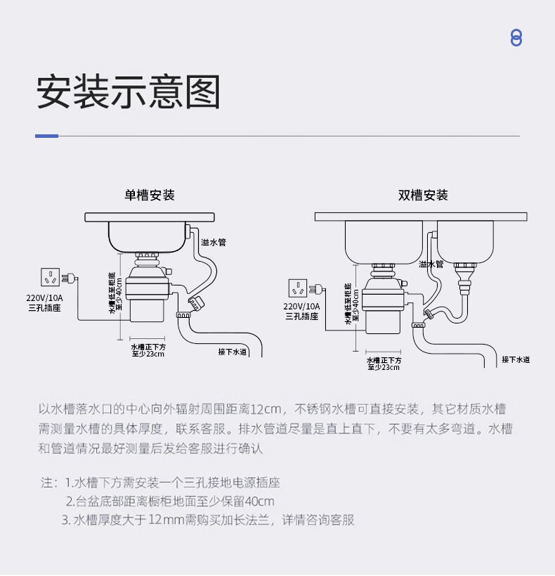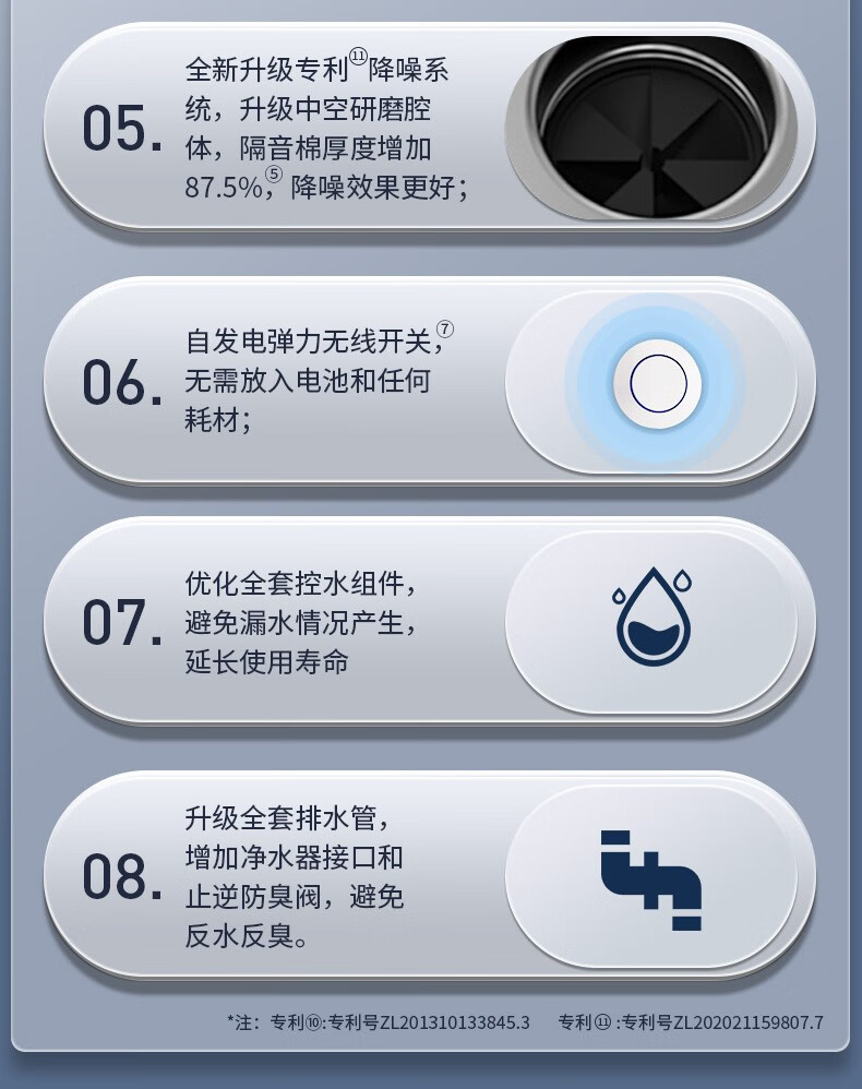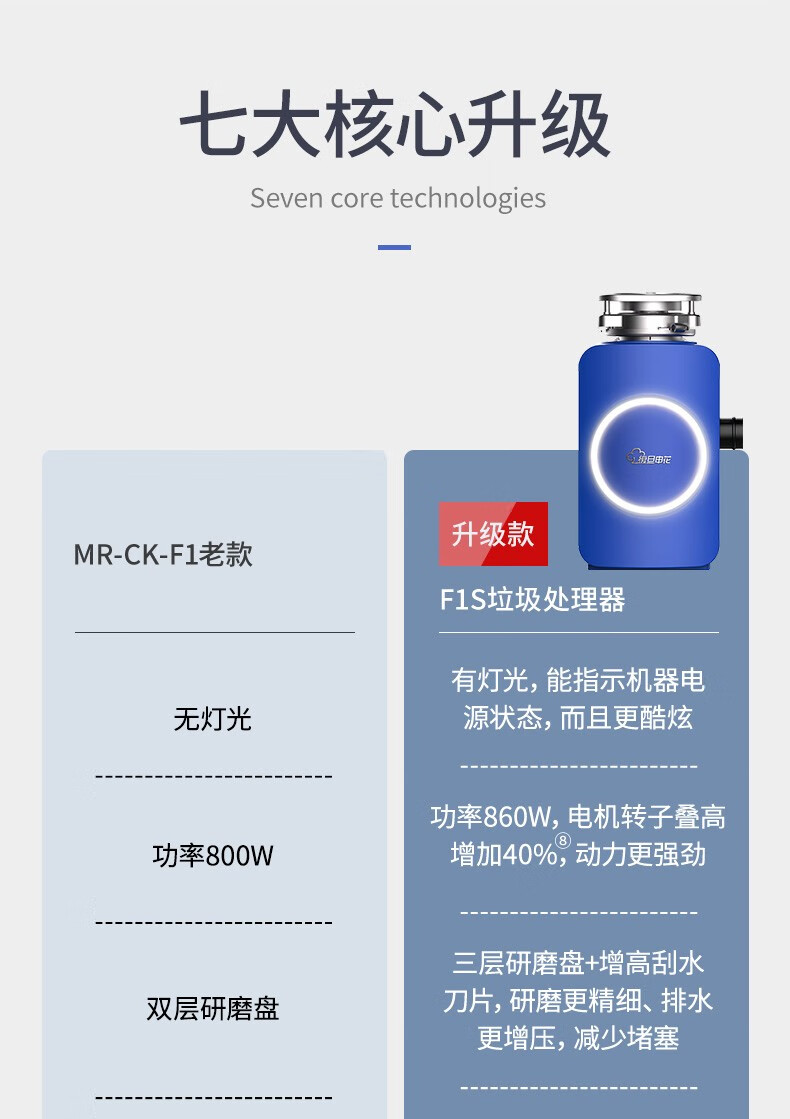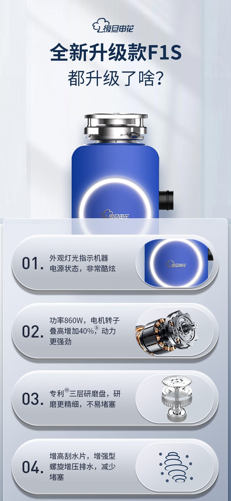 Fudan Shenhua, F1S garbage disposer automatic water inlet food waste grinder home kitchen food processing Klein Blue