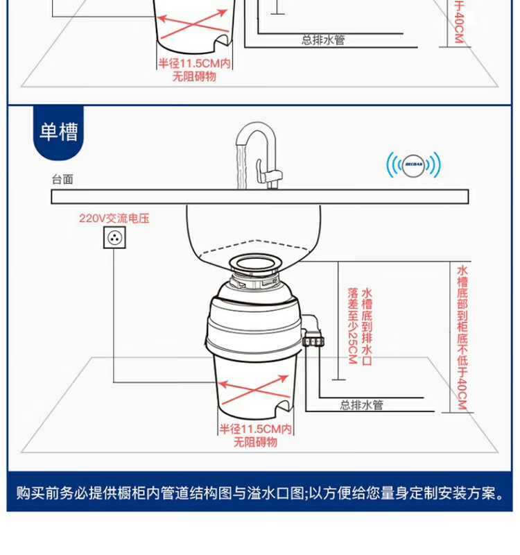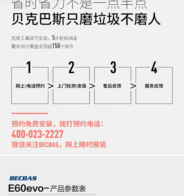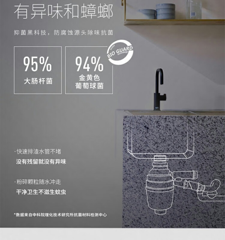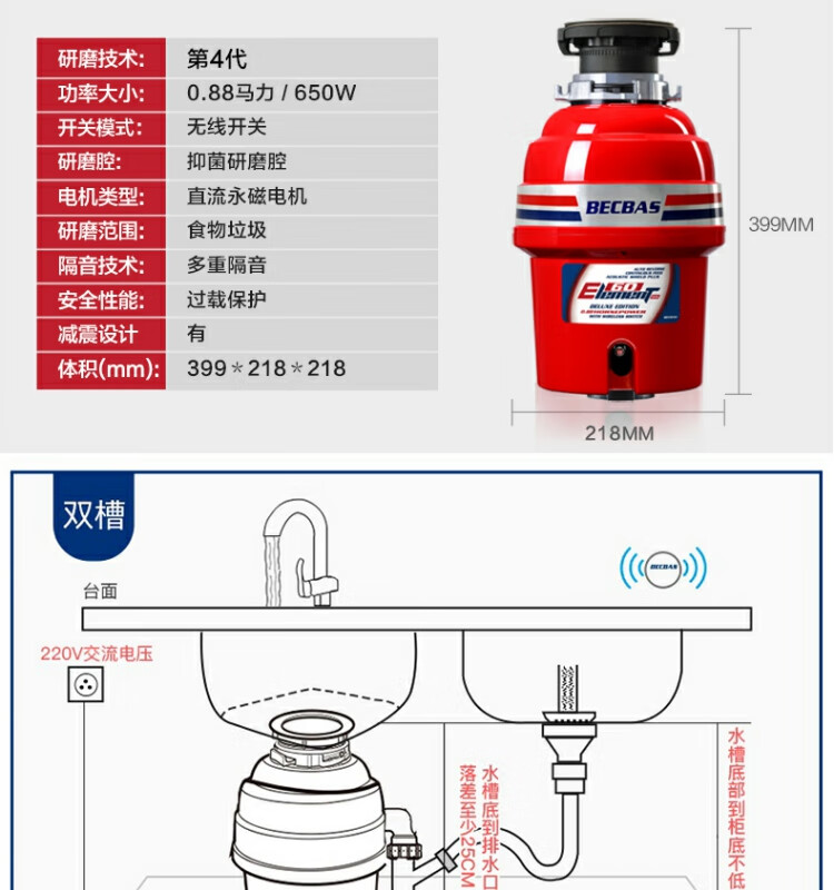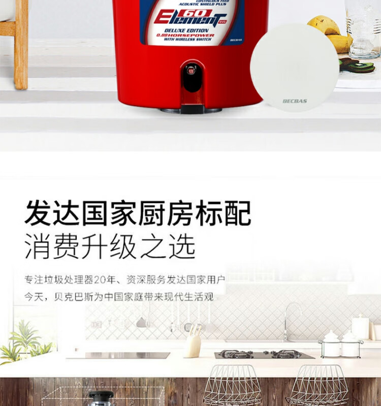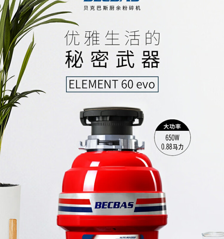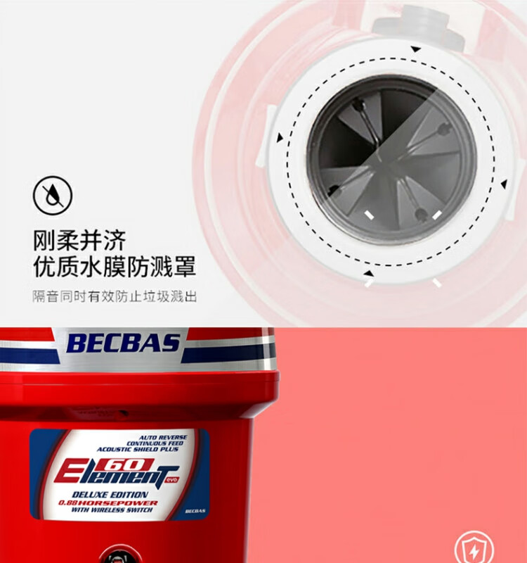 BECBAS garbage disposer kitchen food waste grinder can be connected to the dishwasher Element60evo (E60evo)