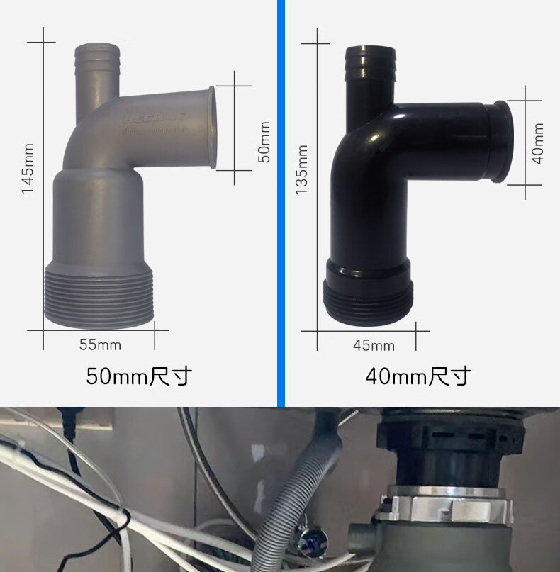 BECBAS garbage disposal food waste crusher special three-way drain elbow other brands universal 4050 black 40m 40mm+50mm