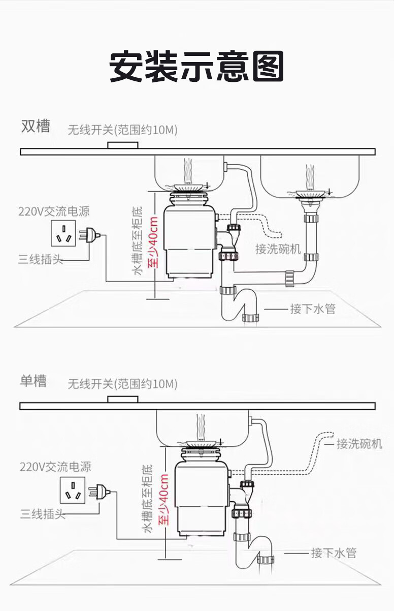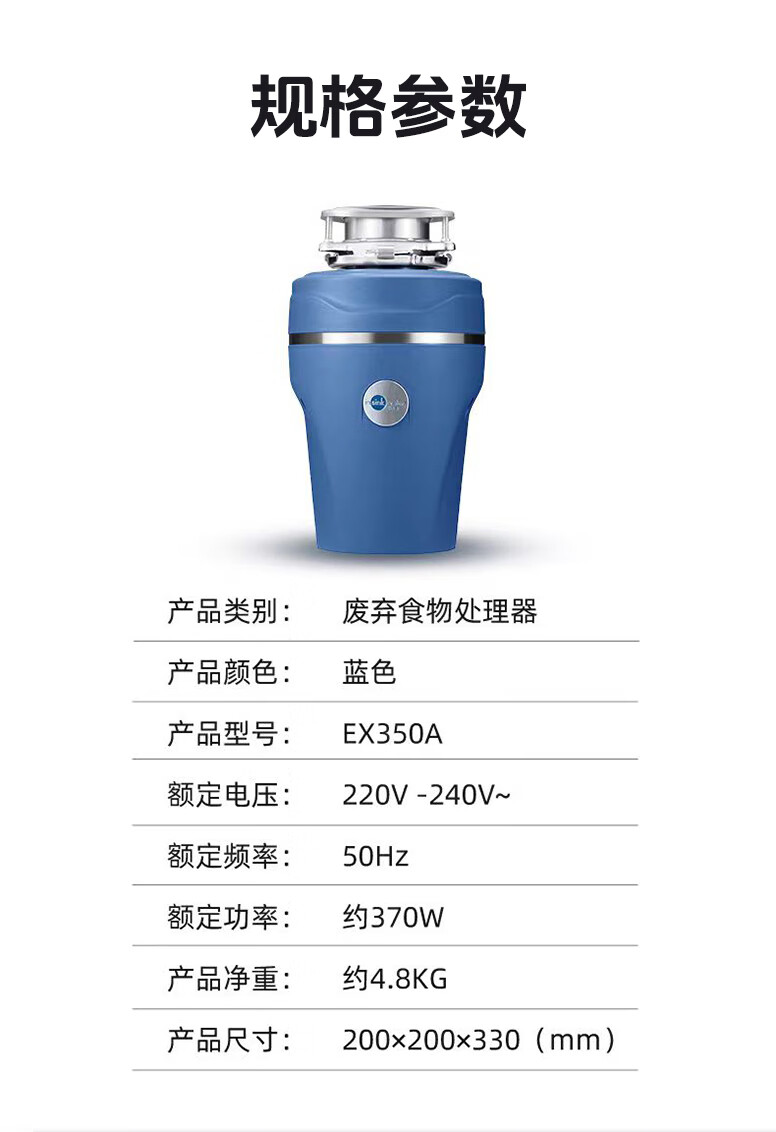 InSinkEasy EX350A kitchen food waste disposer household kitchen waste sink crusher original blue