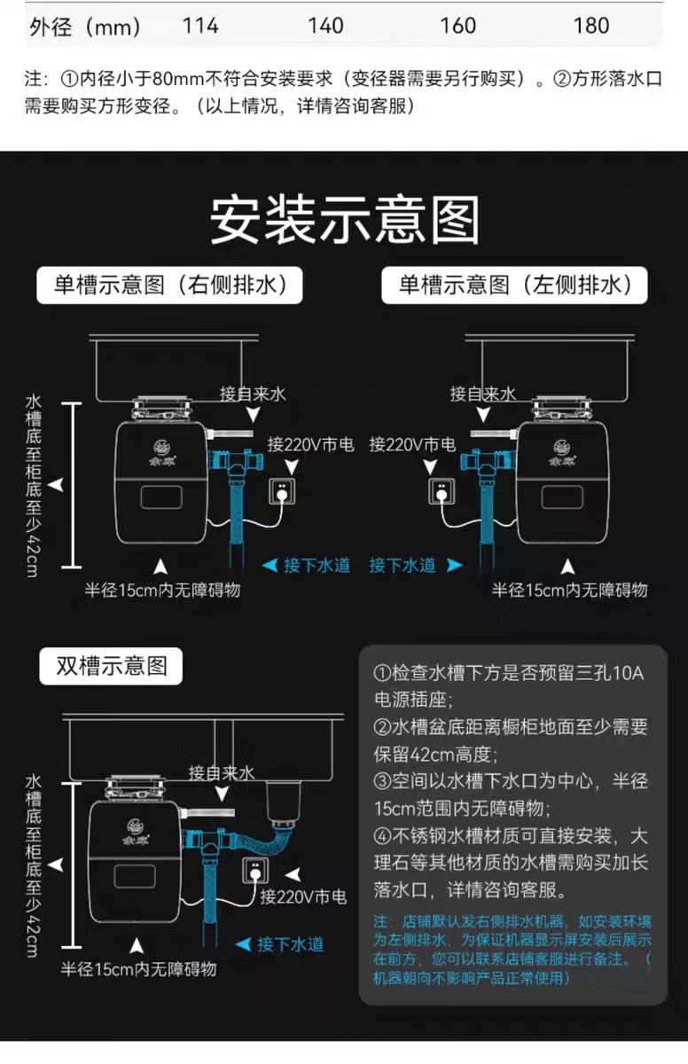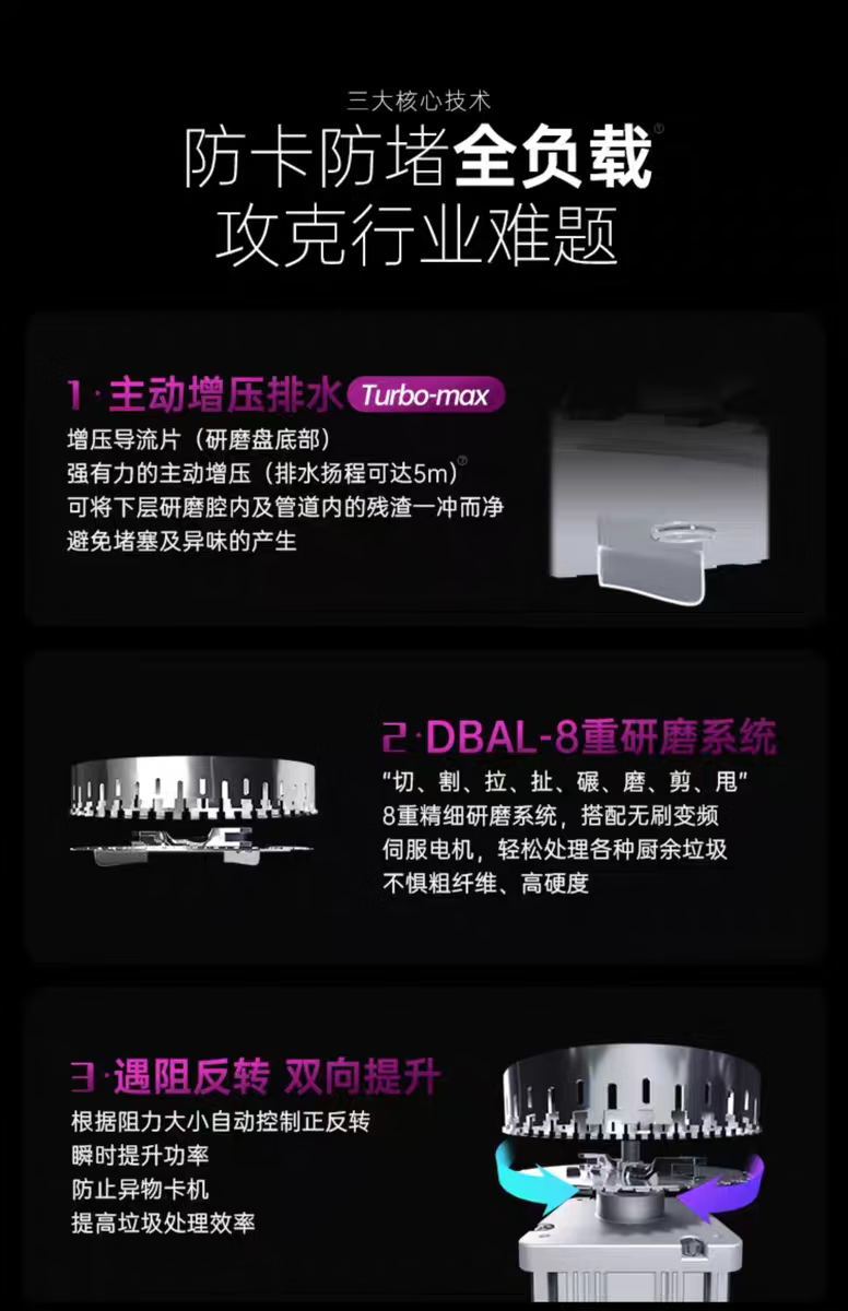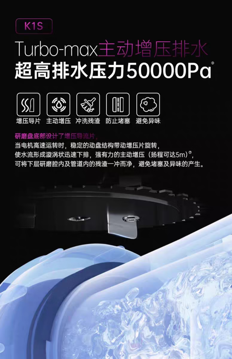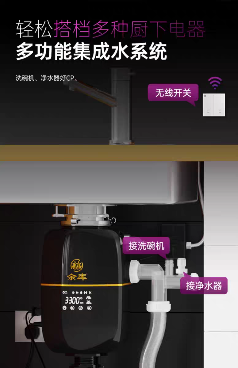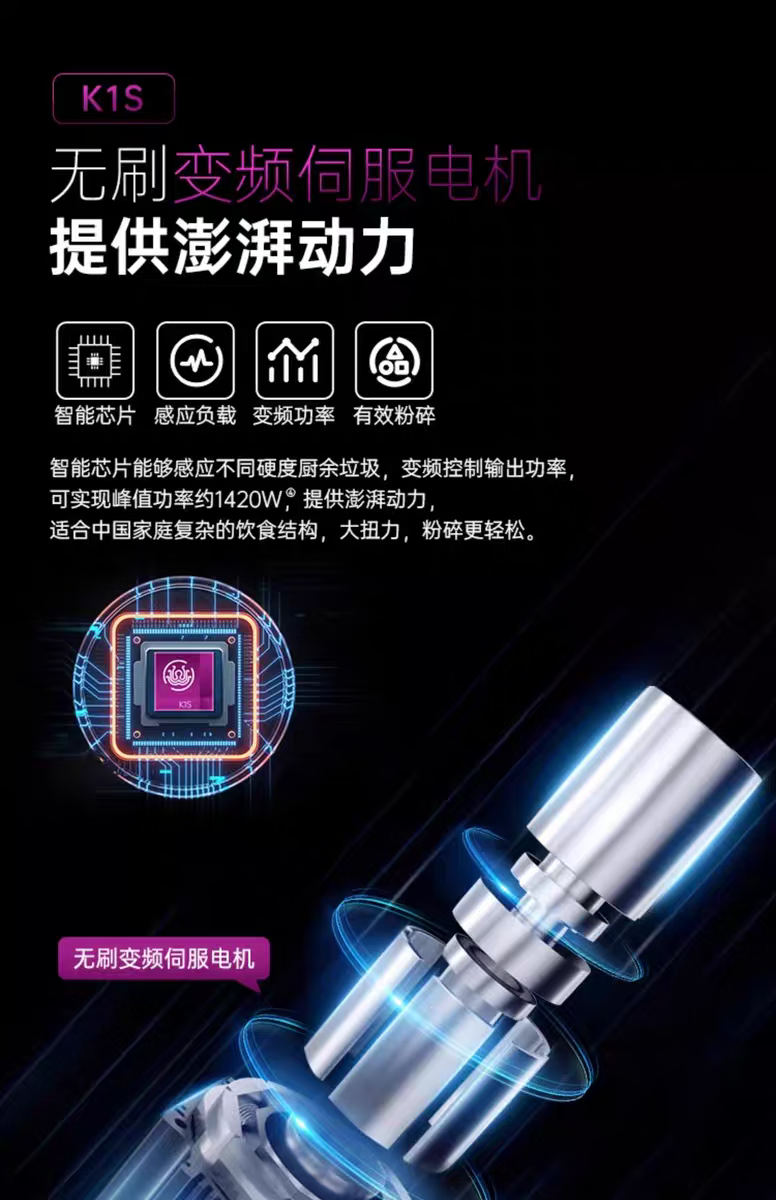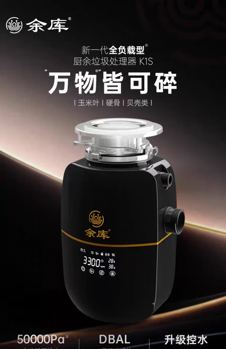 Yuku K1S fully loaded household food waste disposer fully automatic kitchen sink garbage crusher K1S Xuankong Black