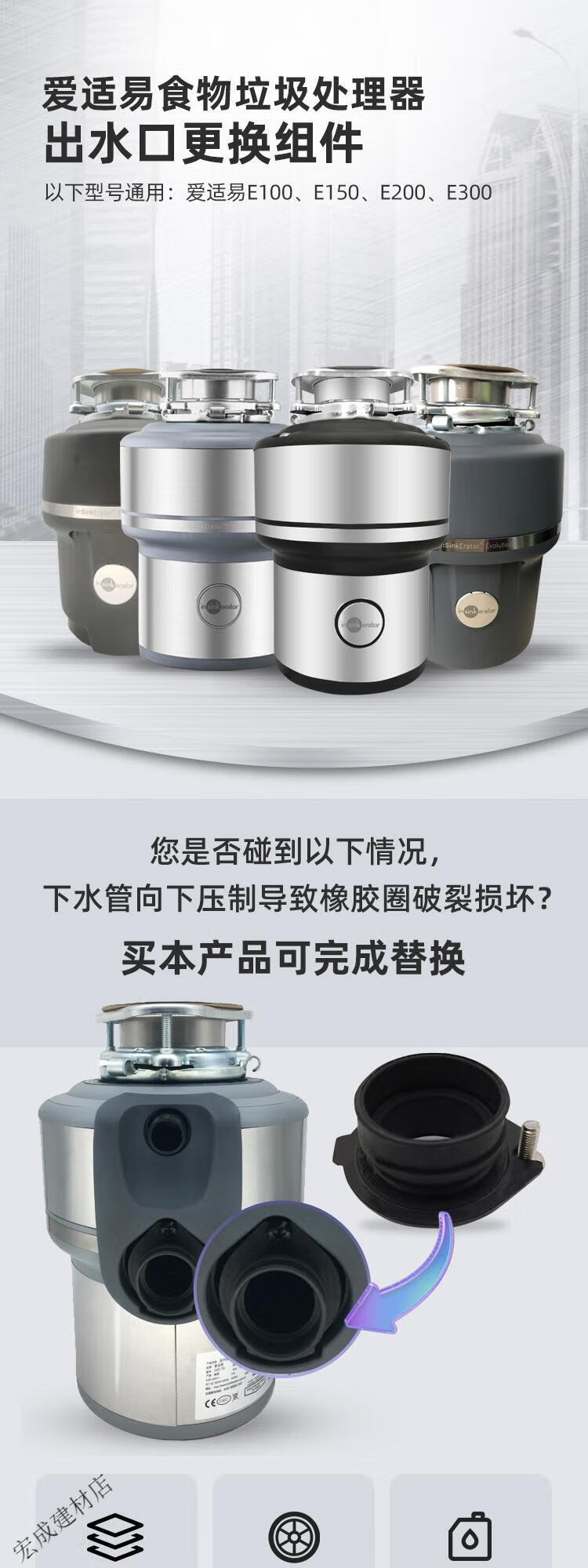 Insinkerator InSinkEratorE100/200/300/150 garbage disposal special outlet connection piece outlet flange (screws and washers)