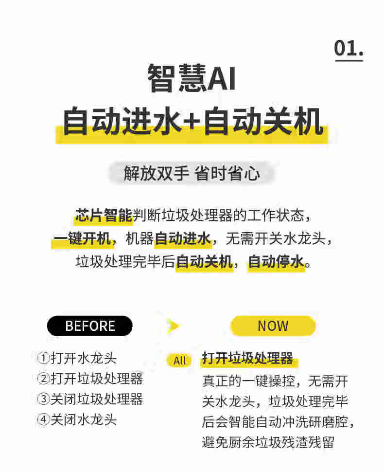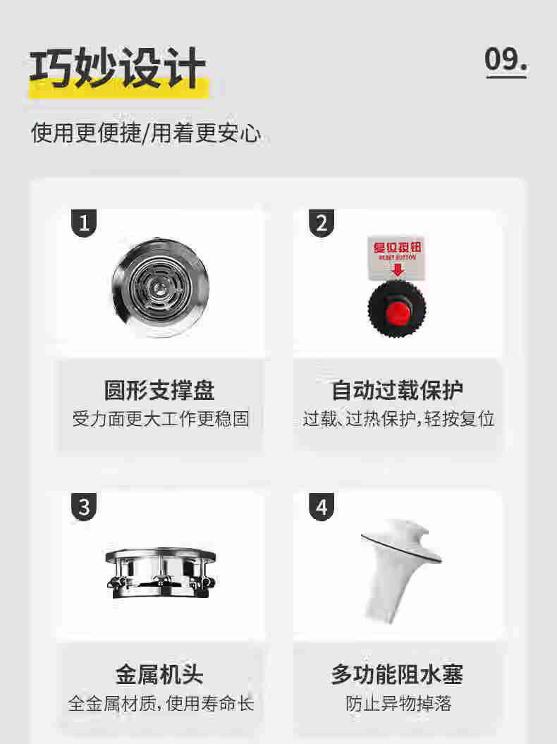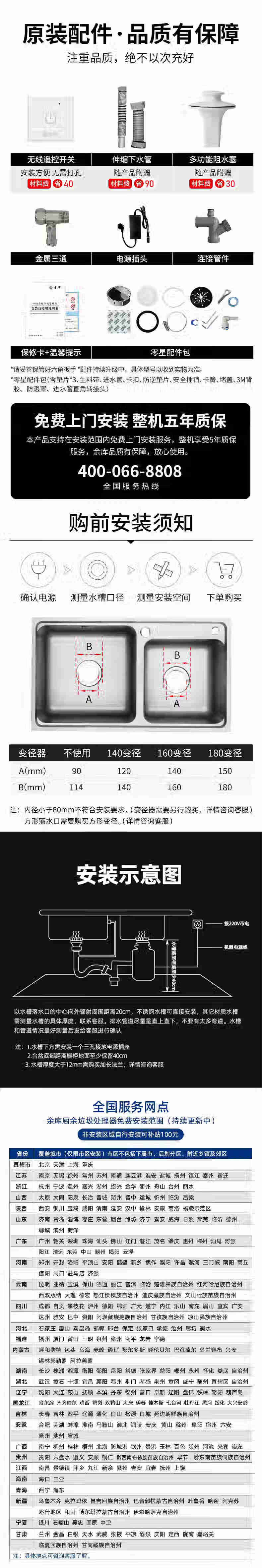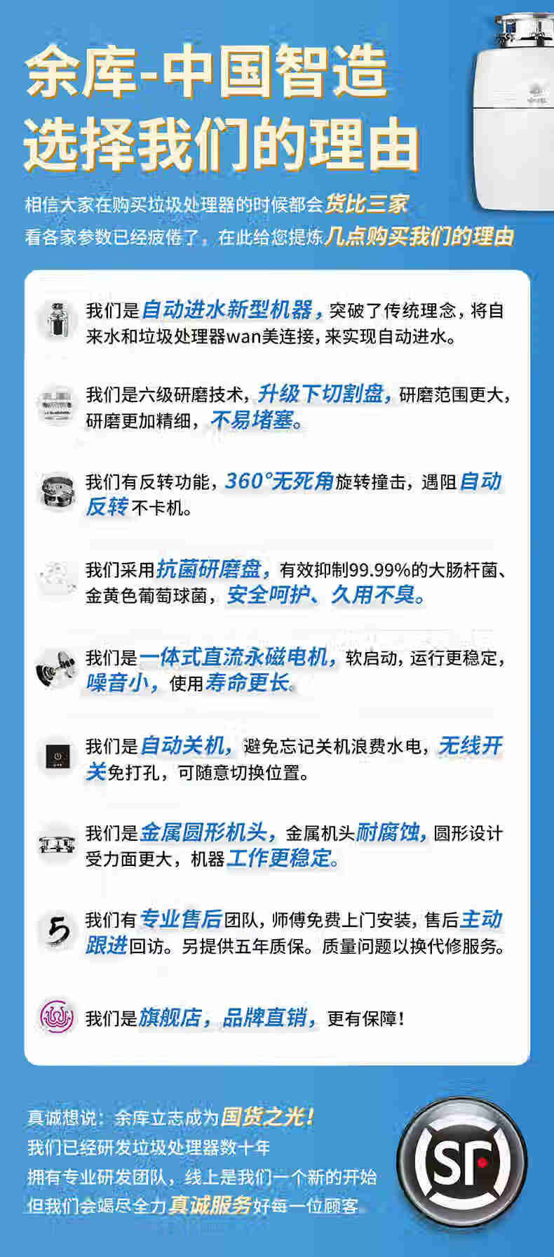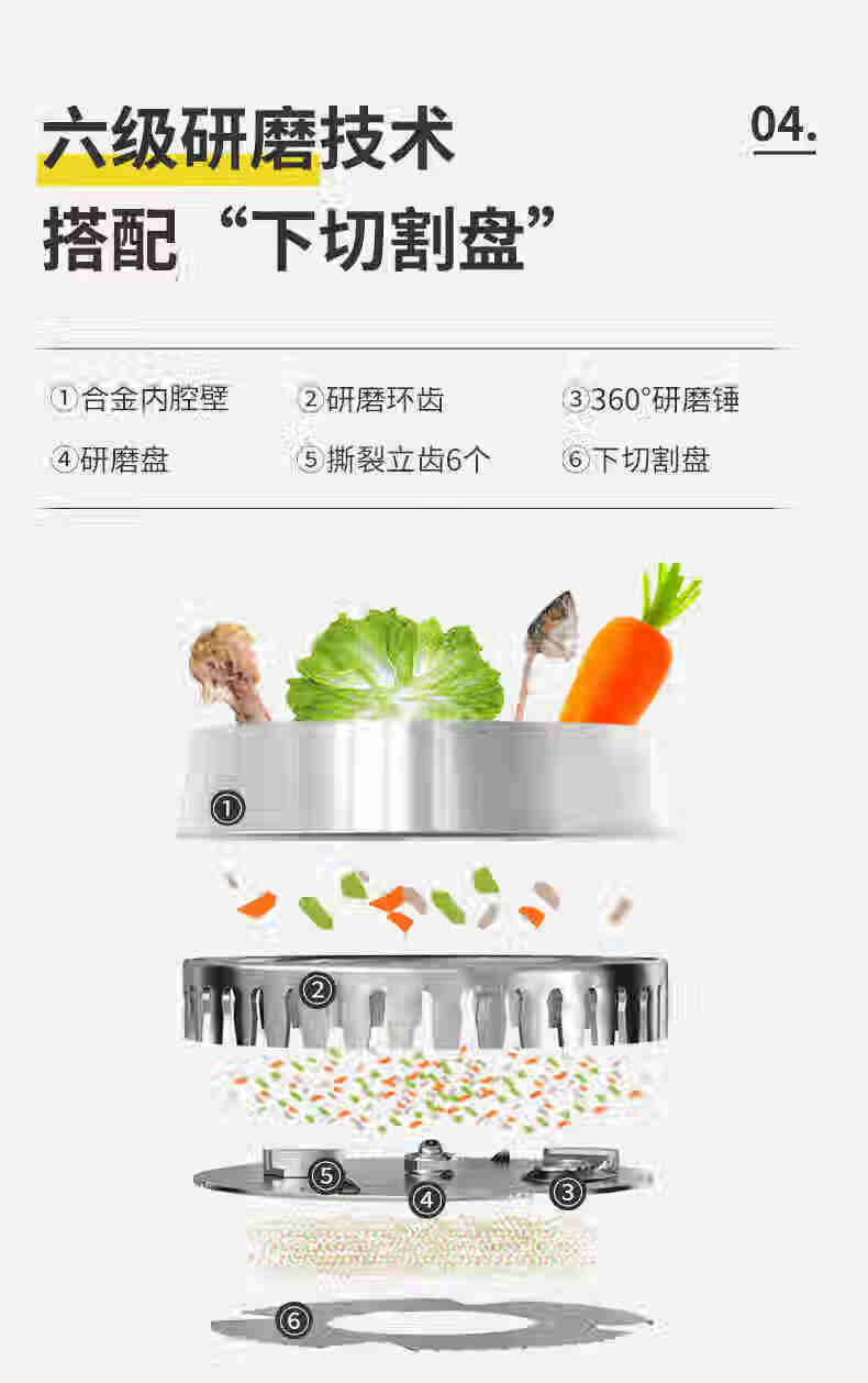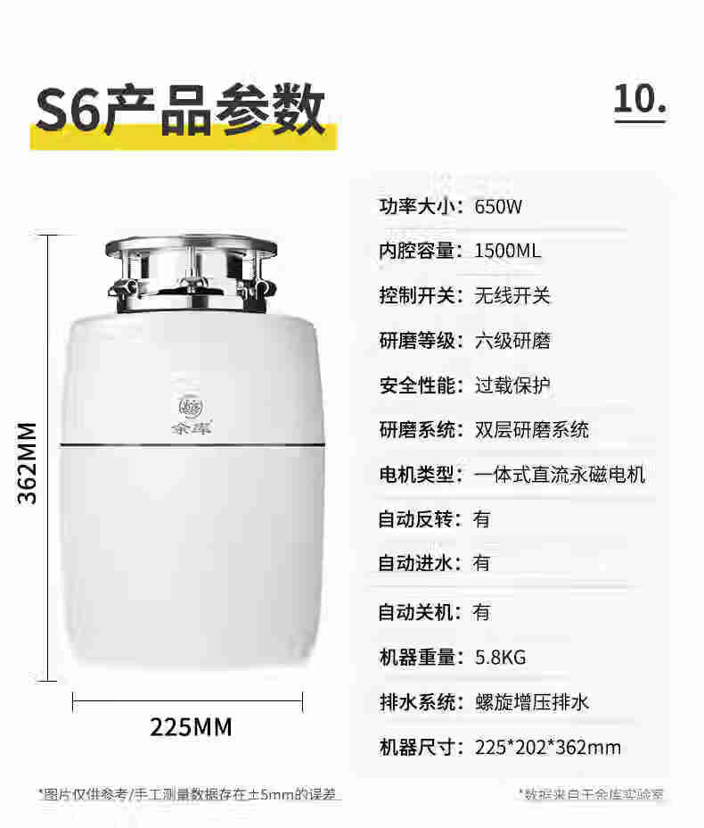 Yuku kitchen waste disposer S6 kitchen food waste crusher 650w high power automatic water inlet 1S6 S6