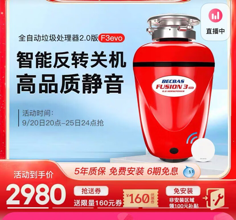BECBAS F3evo food waste shredder fully automatic wireless switch food waste disposer