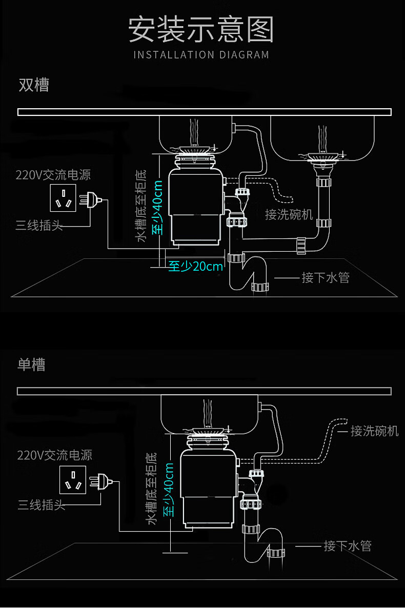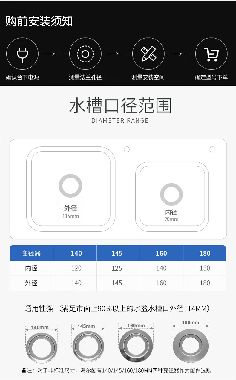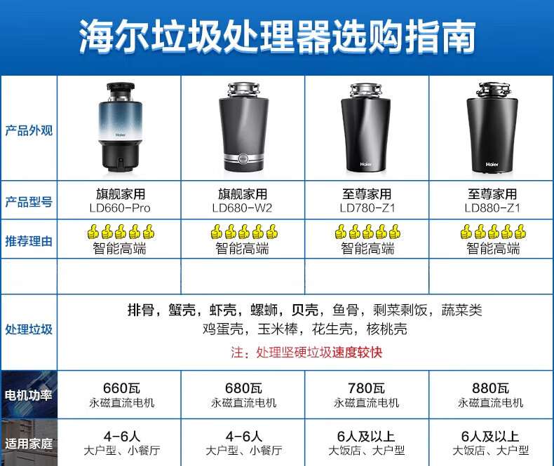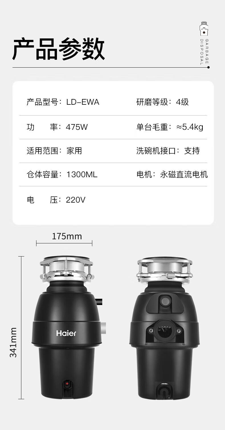 Haier kitchen food waste disposer household automatic soundproof sink water filter food waste crusher LD620 (620 watt high power)