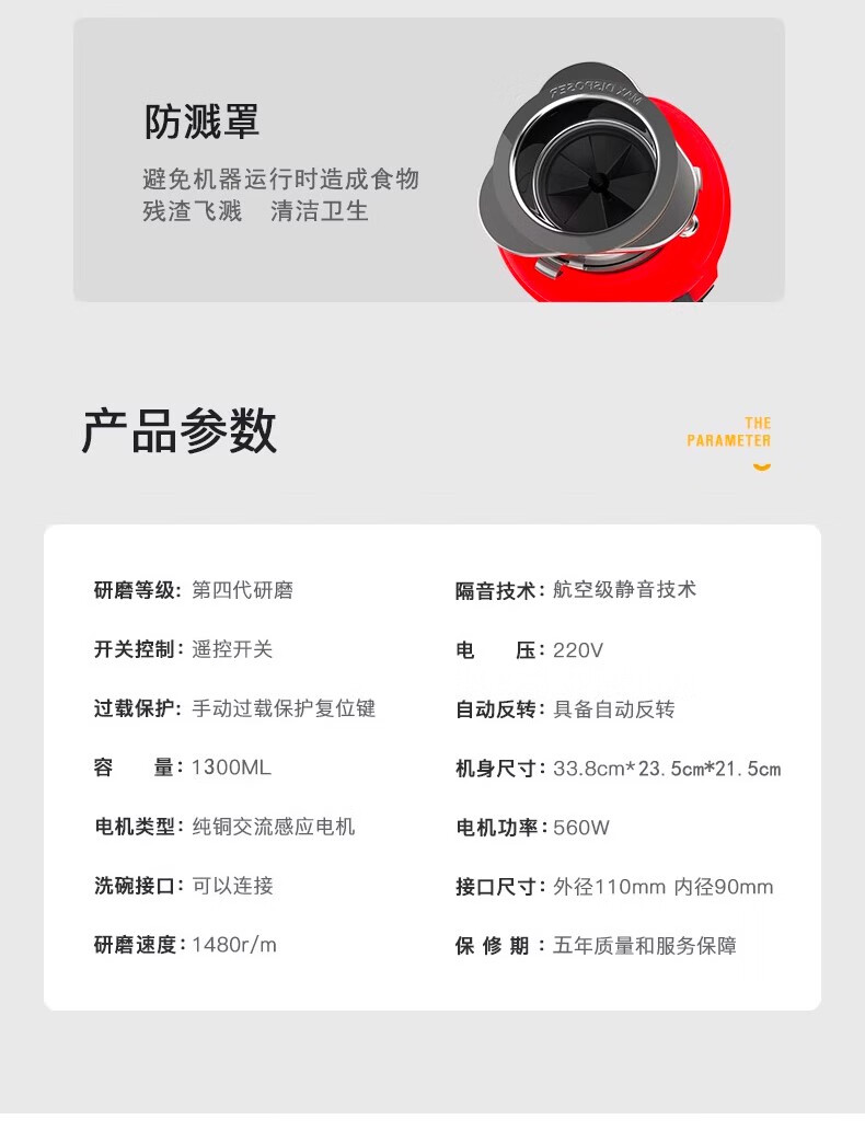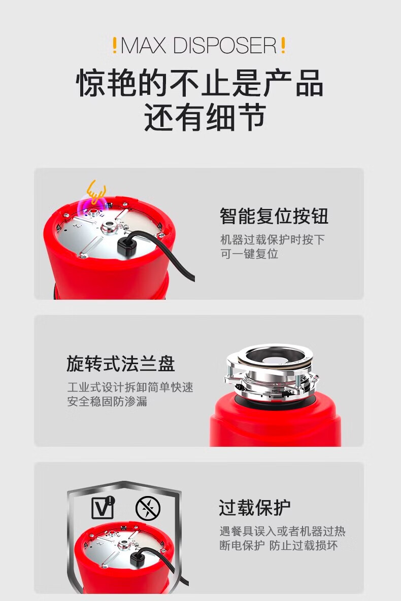 MAXDISPOSER MAXDISPOSER T560 kitchen household fully automatic food waste disposer water pipe crusher wireless switch red