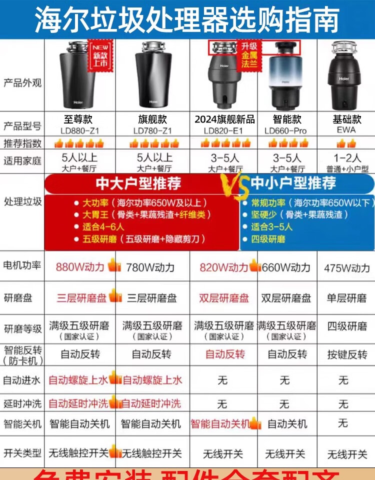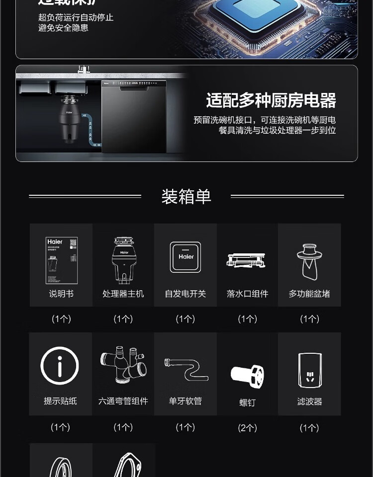 Haier Haier kitchen waste disposer household kitchen sewer crusher automatic food waste machine sewer crusher smart model LD660-Pro