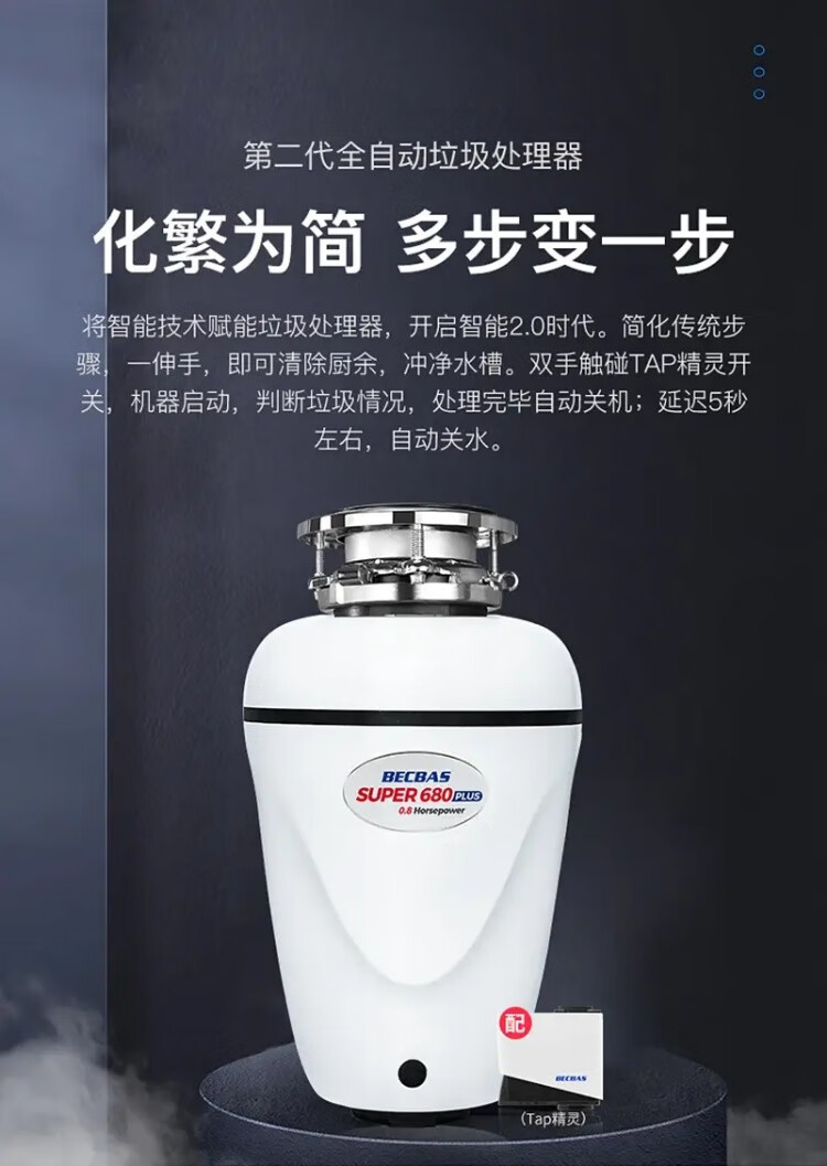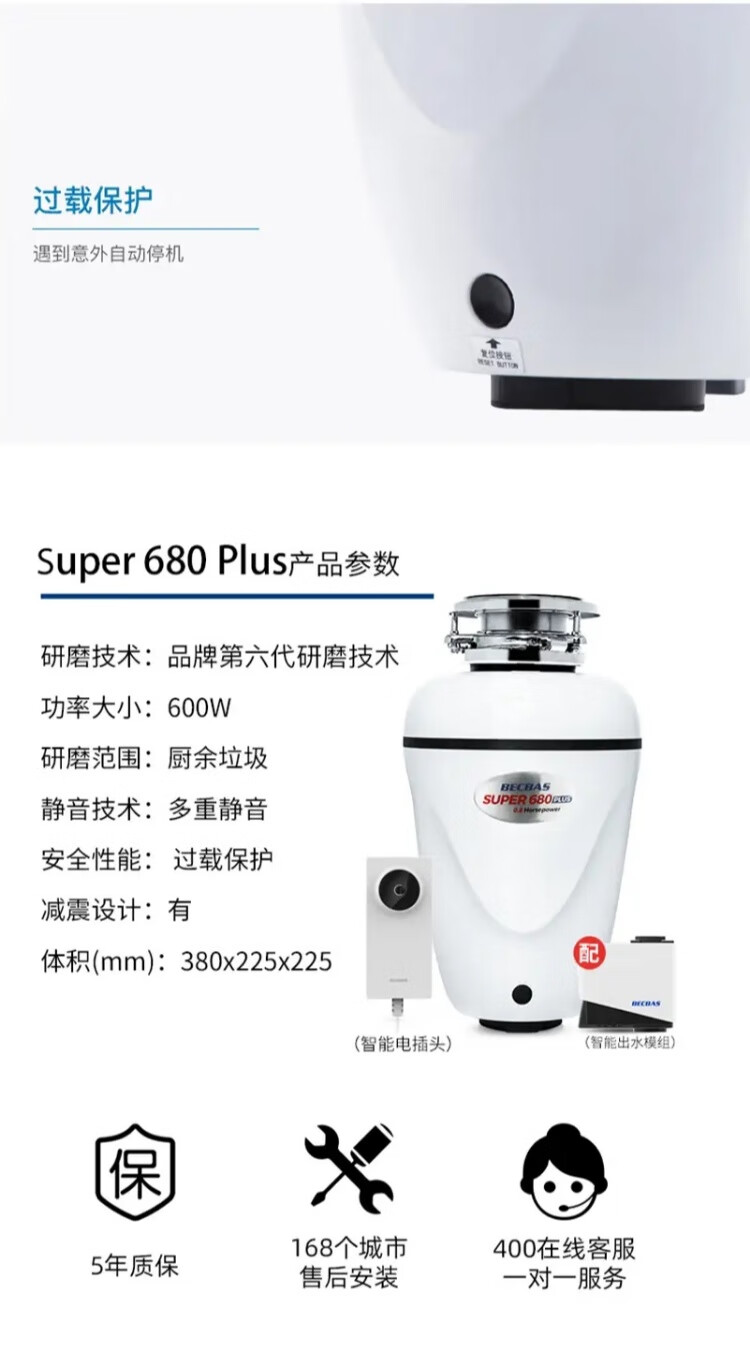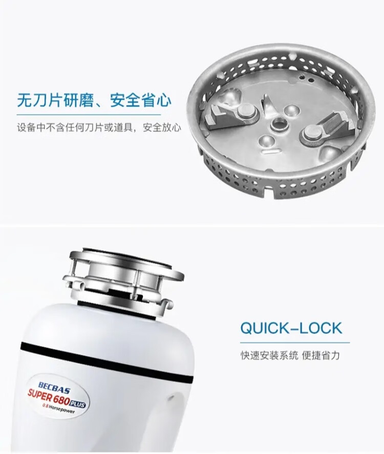 Baker Bass S680PLUS food waste disposer kitchen household sink grinder smart S680PLUS nationwide warranty includes installation